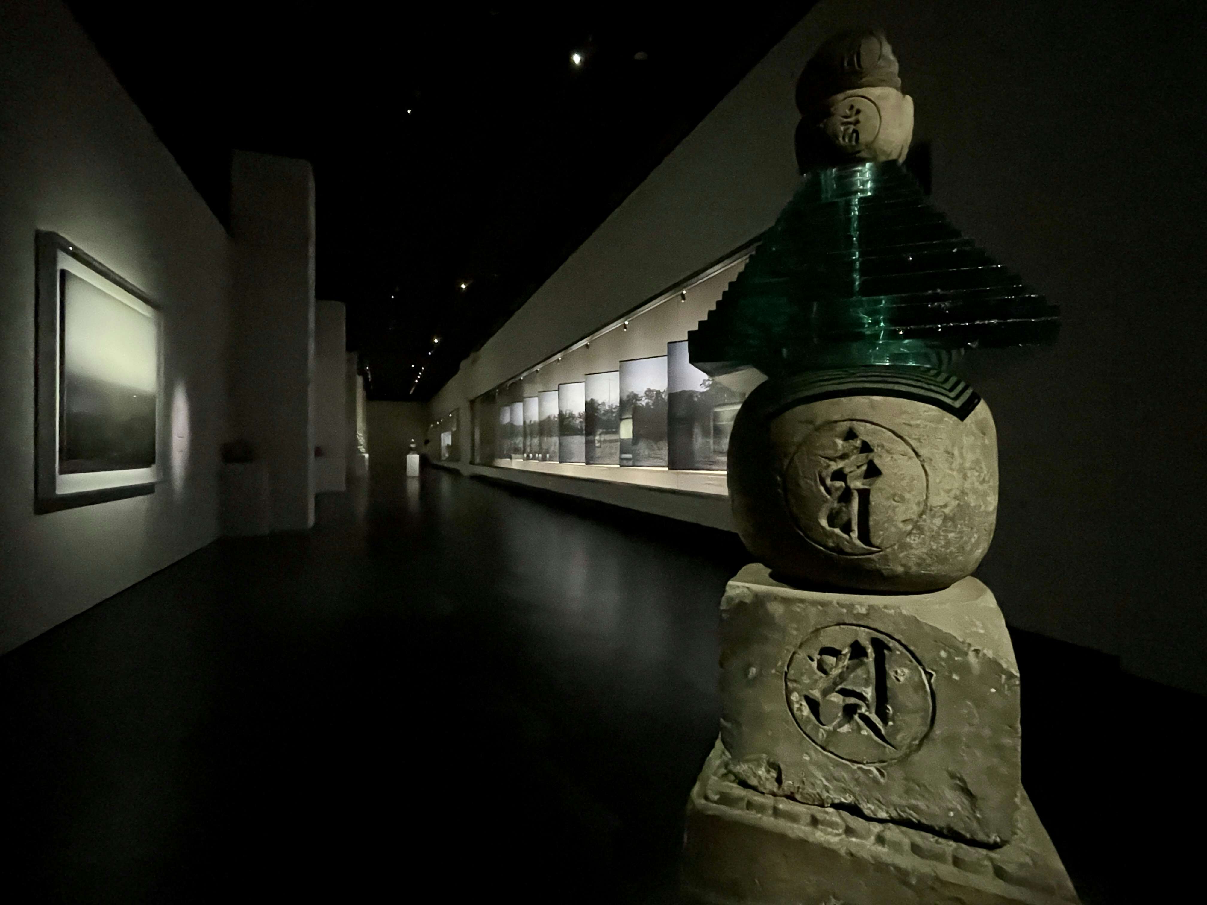 展示風景より、阿弥陀如来坐像と光学硝子五輪塔