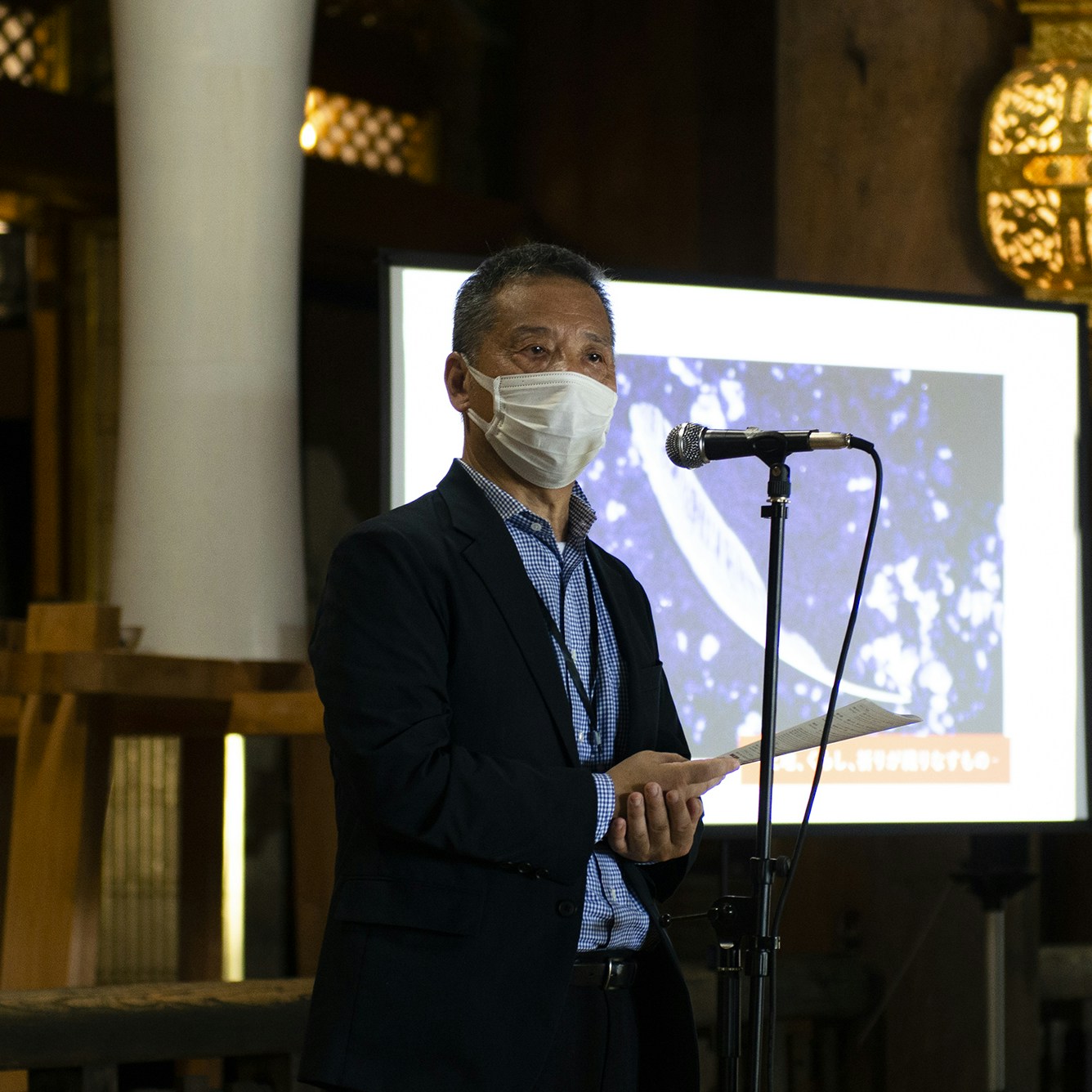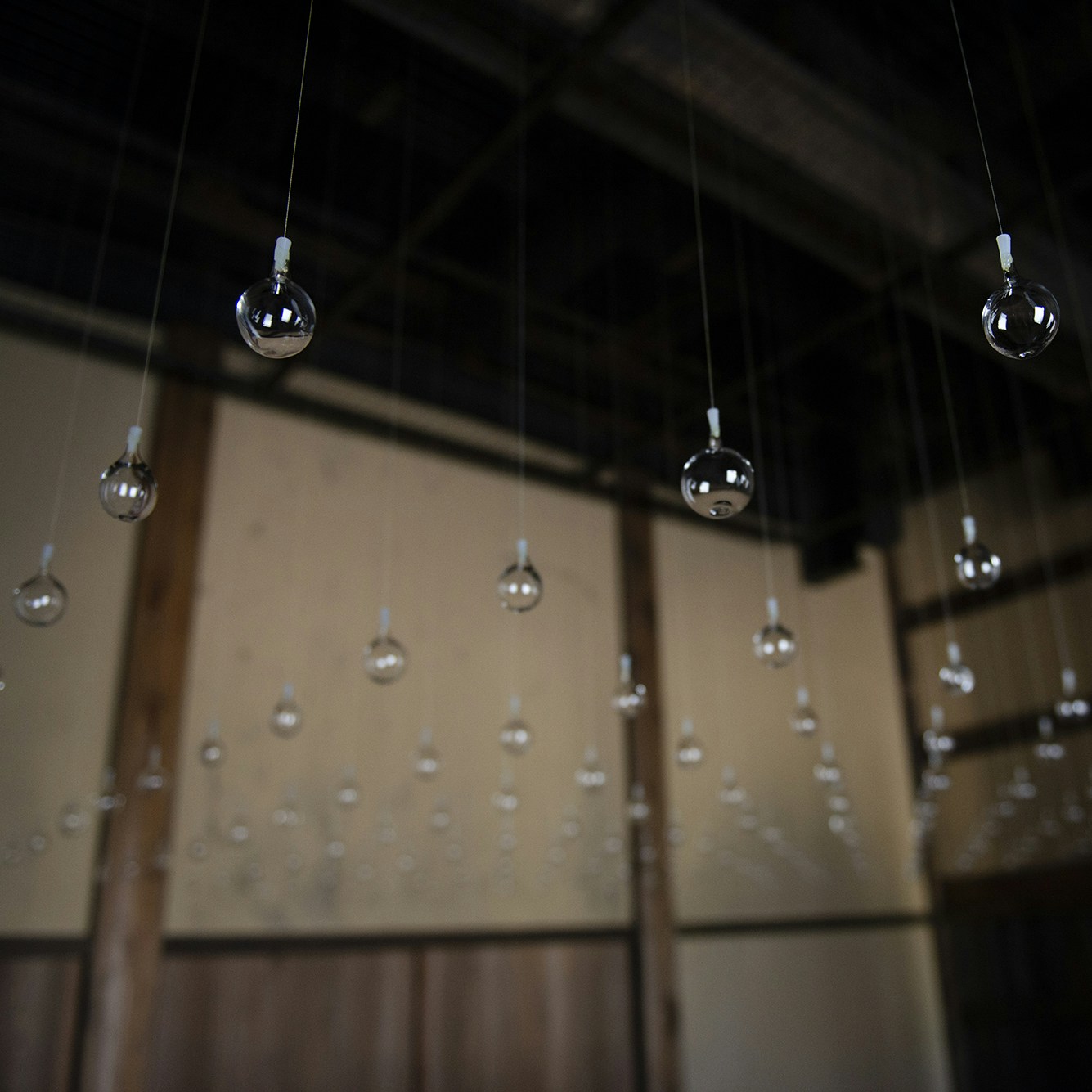 勝興寺の展示順路のクライマックスに位置するのが、小曽川瑠那のガラスを用いたインスタレーション作品《息を織る|北陸2022》。生や記憶を保管するための記録媒体ととらえてガラス作品を制作する小曽川は、北陸に在住する約200名の参加者を募り、それぞれが吹きガラスに息を吹き込むことでガラスの内側に生を記録。吹きガラスという工芸技術を駆使し、死生観を表現する静謐なインスタレーション作品が完成した。