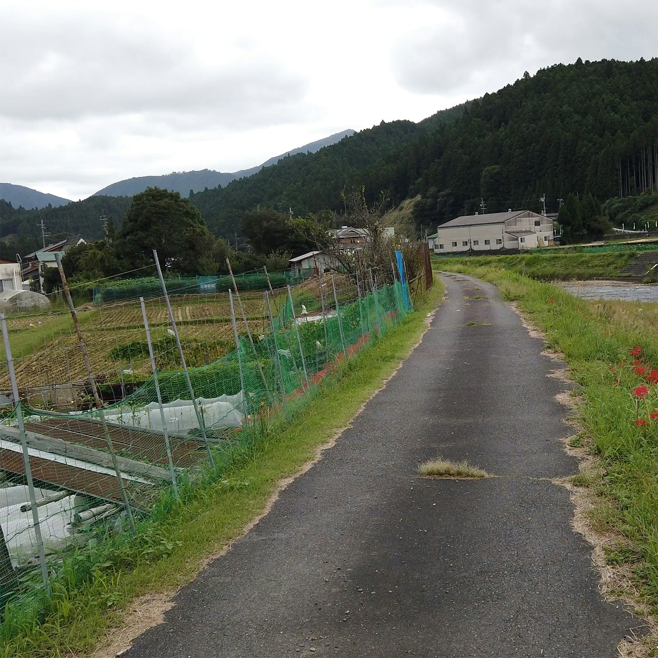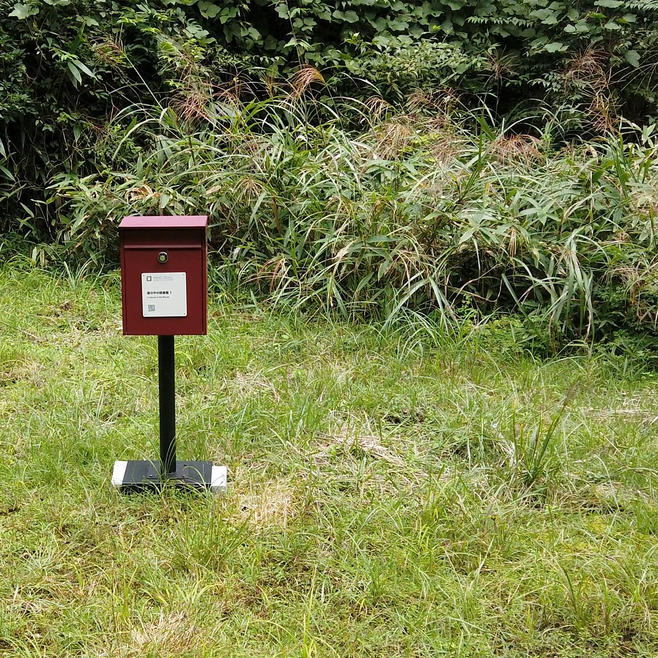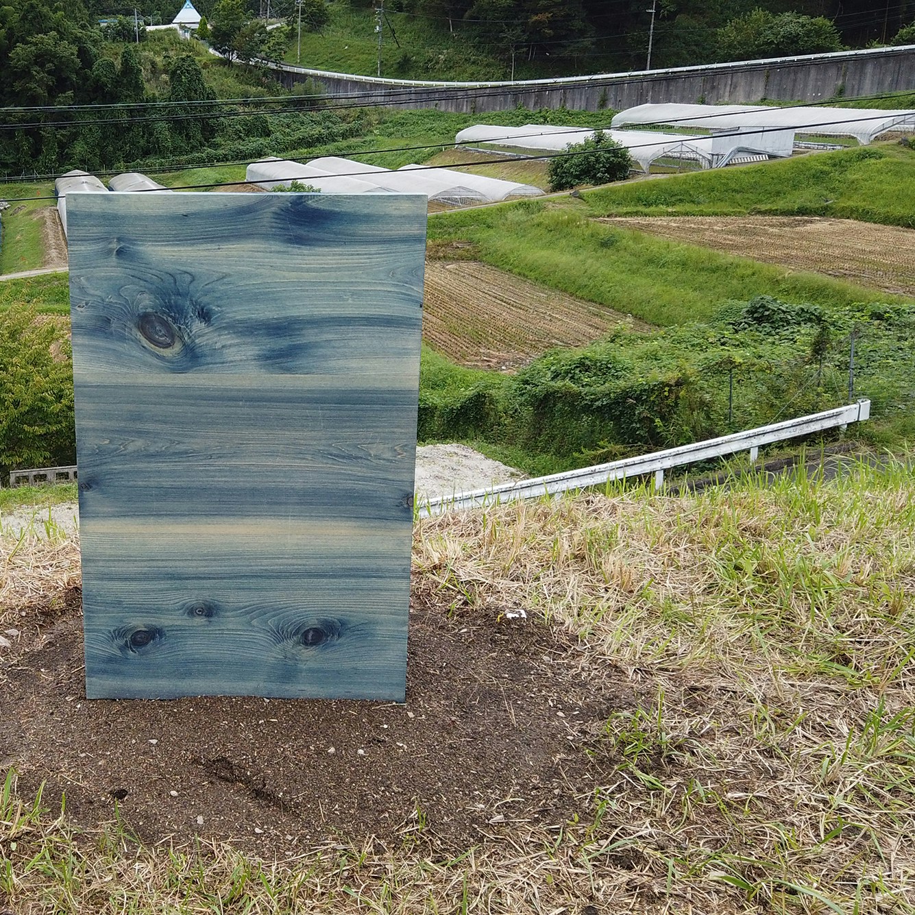 屏風岩公苑からは下りが続く。尾柳佳枝《外に囲まれている絵》、岩谷雪子《私に気づいて》、三瓶祐治《クシティ・ガルバ》が何点かずつコース沿いに設置されており、山道から集落を抜け、ゴールに近づいたところで村田美沙《水脈のピース》と出会う。奥大和の3つの地域をつなぐ水脈に着目し、水の流れを追いながら地域を横断した村田。来場者が作品を見て、手で触れることによって、水を手がかりとする旅路を共有できるかもしれない。そう考え、会期中も水をテーマに人々と対話しながら歩きフィールドワークを行い、その様子を動画に記録する予定だという。《水脈のピース》は、プロジェクトが進行中であることを示すモニュメントのような存在だともいえるのかもしれない。