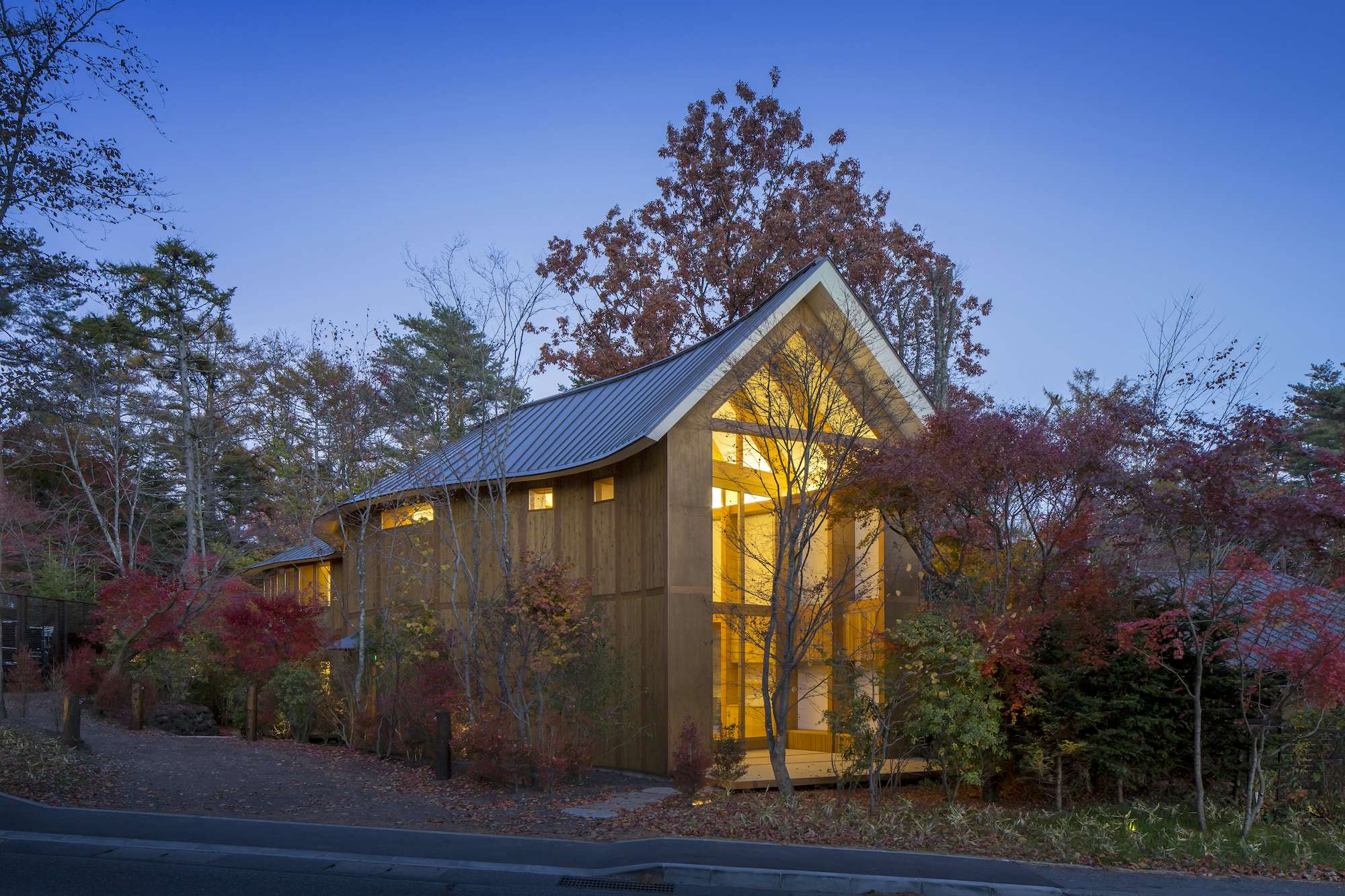ししいわハウス軽井沢No.2(SSH No.2)の外観(レセプション側)。切妻屋根が特徴的だ