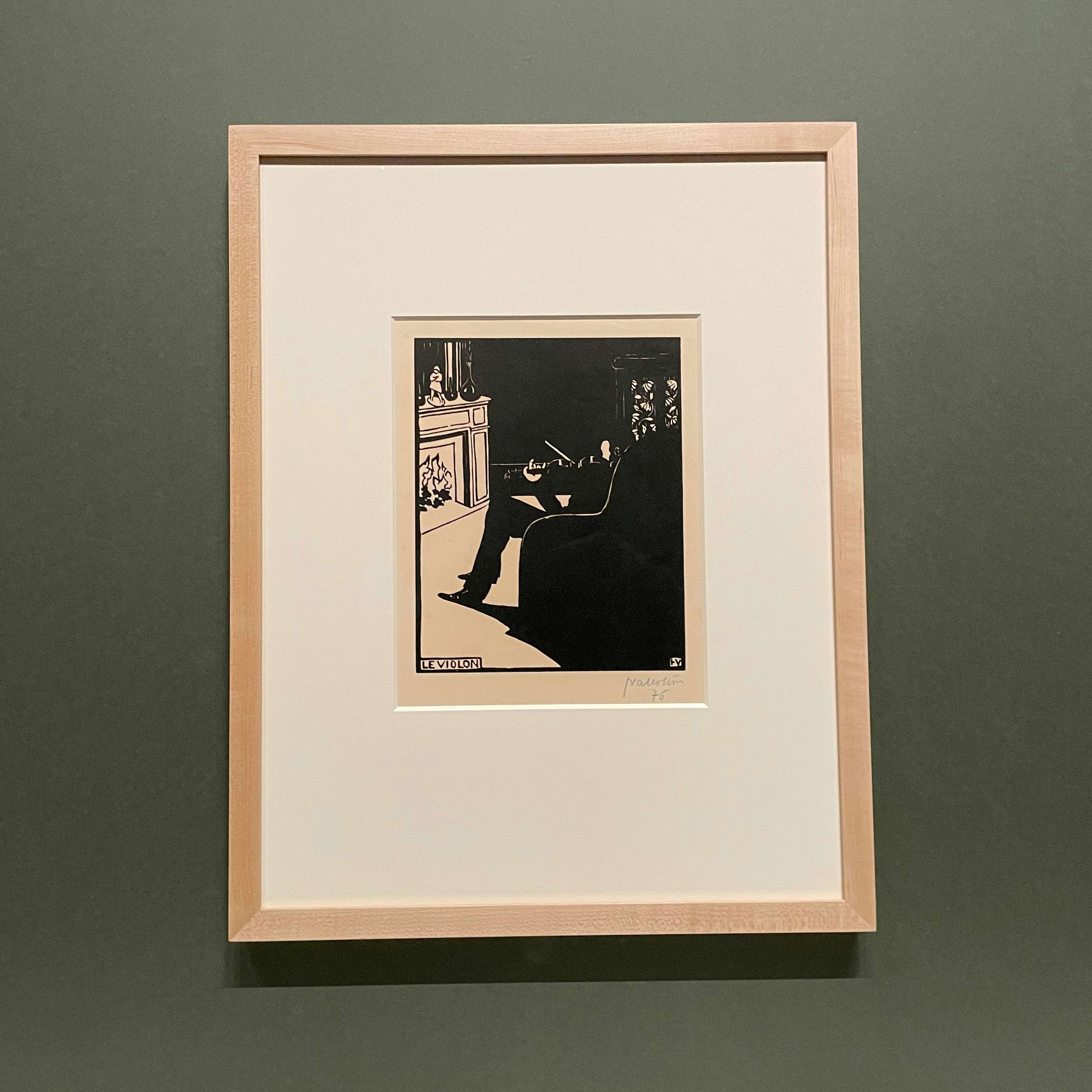 代表作「楽器」(1896〜97)シリーズでも、ヴァロットンが得意とした室内空間における黒と白の絶妙なバランス感覚が遺憾なく発揮されている。約100部限定で刊行されたこれらの作品は、ヴァロットンによる希少性を高める狙いもあり、版木は破棄されている。