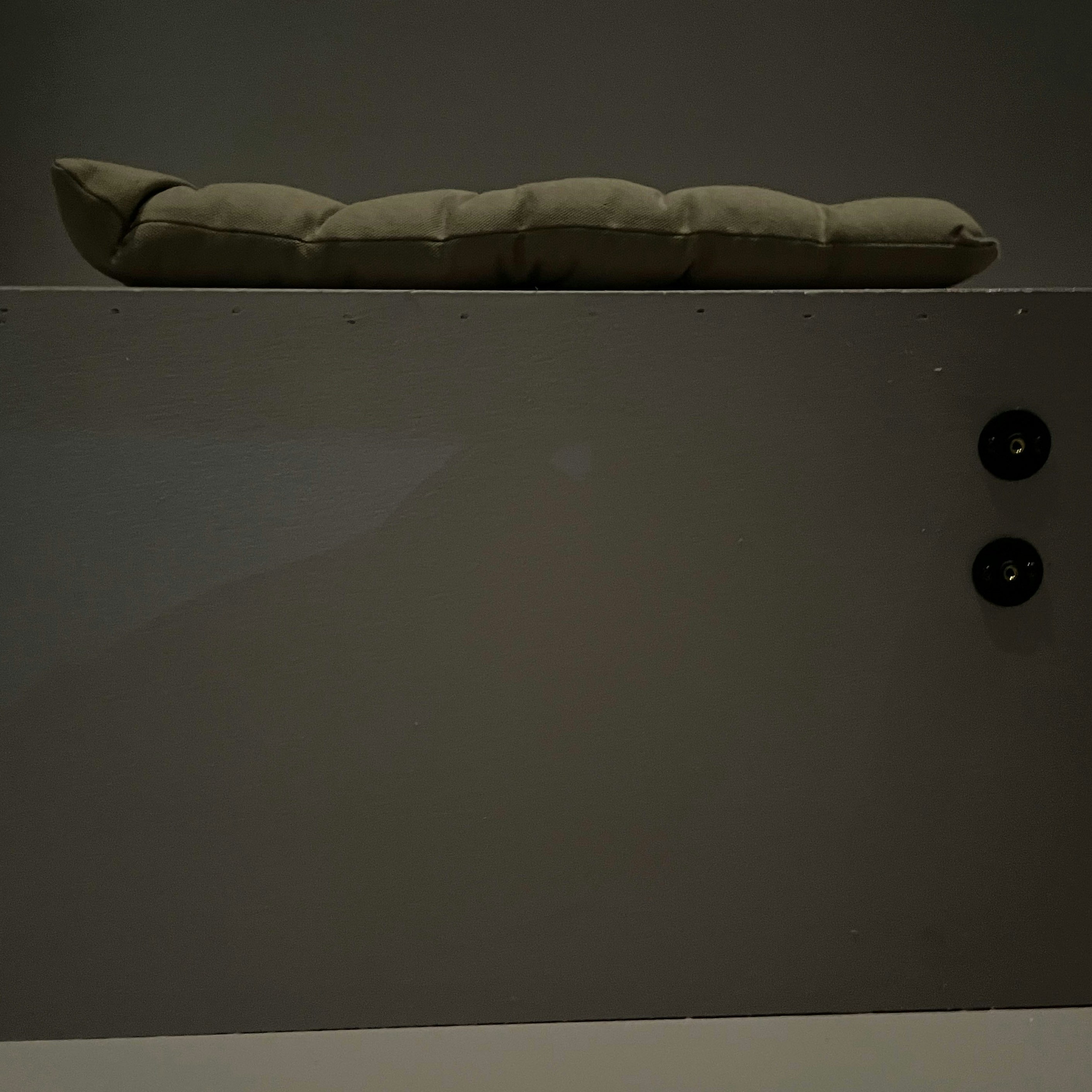 映像インスタレーション《ふたつの石》(2019)は、バウハウスで学んだドイツ人の女性建築家、ロッテ・スタム=ベーゼと、カリブ出身の文筆家・アクティビストのヘルミナ・ハウスヴァウトの理想と軌跡を追いながら、現代を生きるキャストたちの対話によってそれらを探るもの。本作が撮影されたハルキウ・トラクター工場(ウクライナ)とペンドレヒト住宅街(オランダ)は、ふたりに関する場所でもあり、その相似点をリズミカルな映像表現で提示している。また、座席に設置された2つのイヤホンジャックからは、2種類の音声が聴取可能。この映像や音声の多層的な効果が、それぞれが描いていた思想との共鳴と不協和を効果的に表している。
