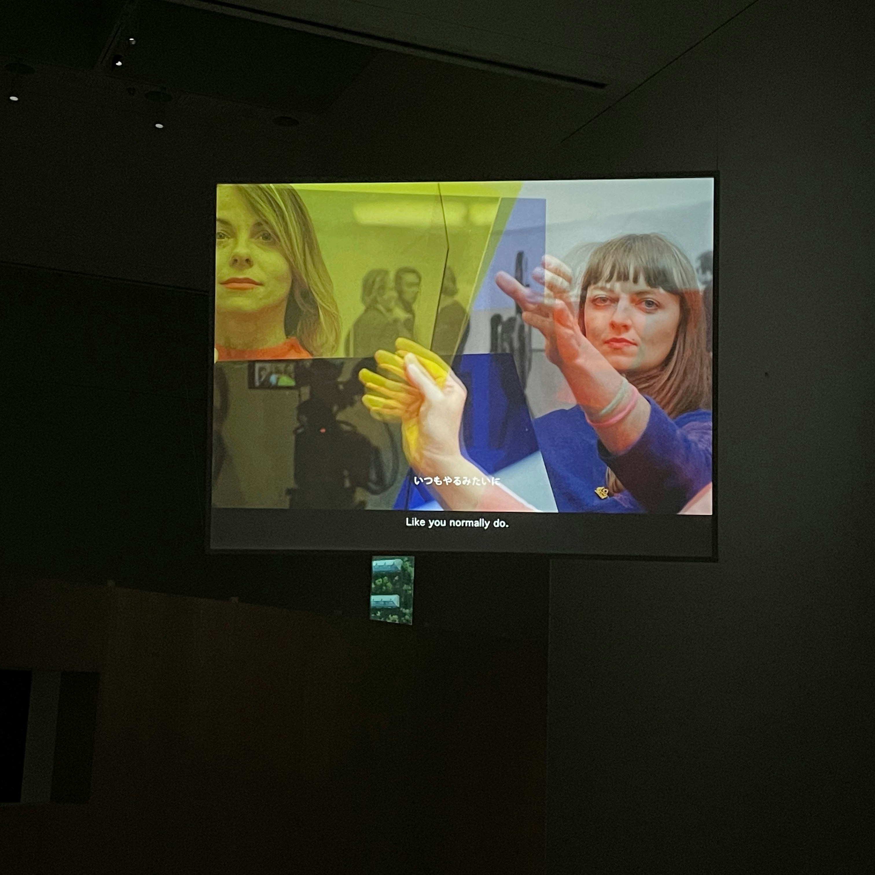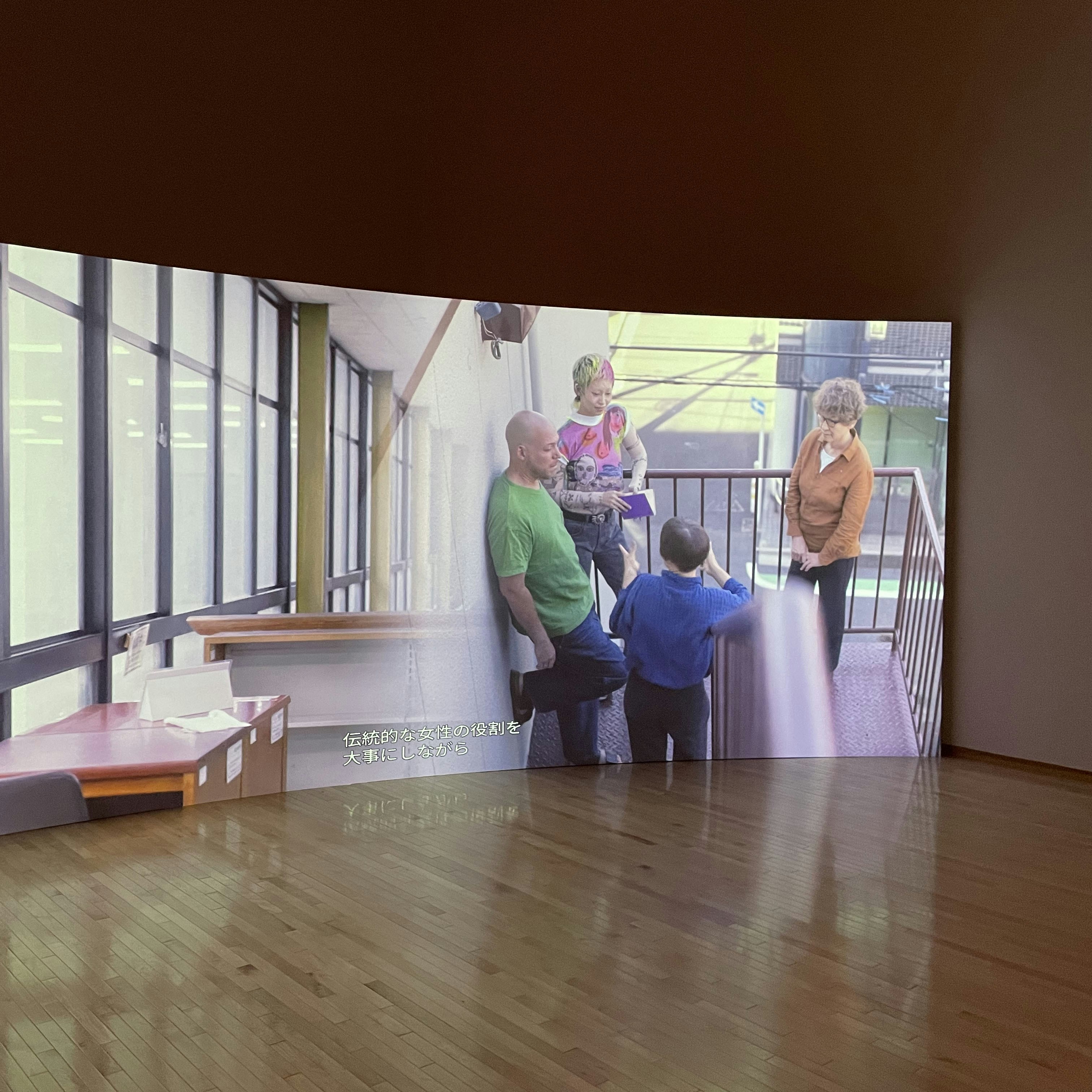 本展の軸となるのは、東京と横浜で撮影された新作《彼女たちの》(2022)だ。本作は、1920年代から人気を博し、ともに1951年に夭逝した小説家・林芙美子(1903〜1951)と宮本百合子(1899〜1951)を取り上げ、ふたりの著書に記された生き方と理想を、現代を生きるキャストが読み解くもの。政治と文学の歴史に名を刻む日本人女性ふたりと、現代を生きる人々による朗読や対話が共鳴し、今日におけるジェンダーや政治、情愛をめぐる葛藤が作品に反映されている。