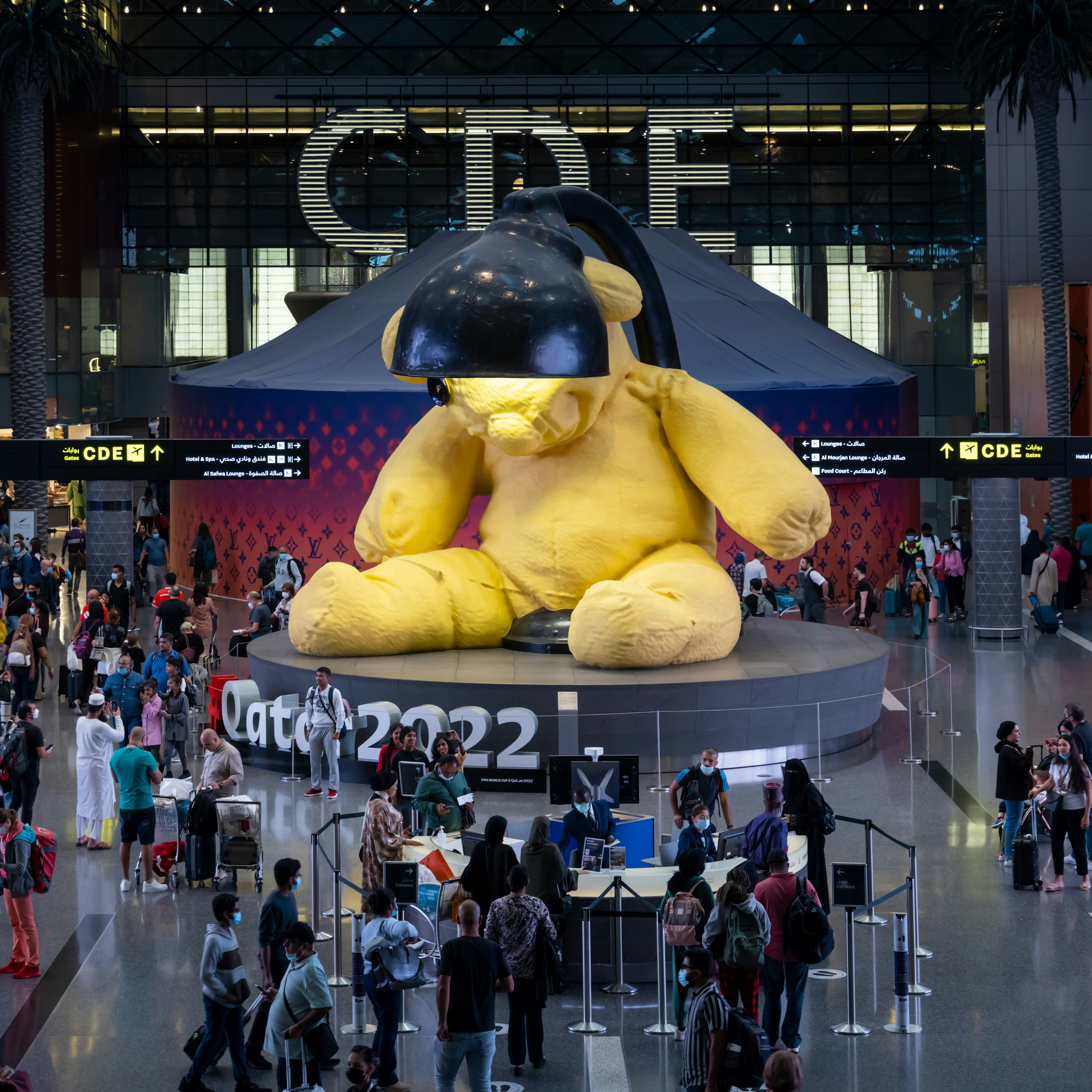 ドーハのハマド国際空港では、スイス人アーティストであるウルス・フィッシャーによる高さ約7メートルにおよぶ黄色いクマの彫刻《Untitled (Lamp/Bear)》(2005-06)が、世界中からカタールを訪れる観光客を迎える。カタール国立博物館では、ジャン=ミシェル・オトニエルによる噴水彫刻のインスタレーション《ALFA》(2019)、エデュケーション・シティにある医療施設「シドラ・メディカルセンター」の前では、受胎から出産までの過程を記録したダミアン・ハーストによる14体のブロンズ像の作品《The Miraculous Journey》(2005-13)などが大きな存在感を放つ。