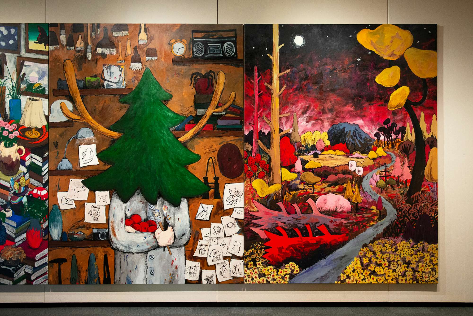 展示風景より、平子雄一《inheritance, metamorphosis, rebirth》(2022)の左半分