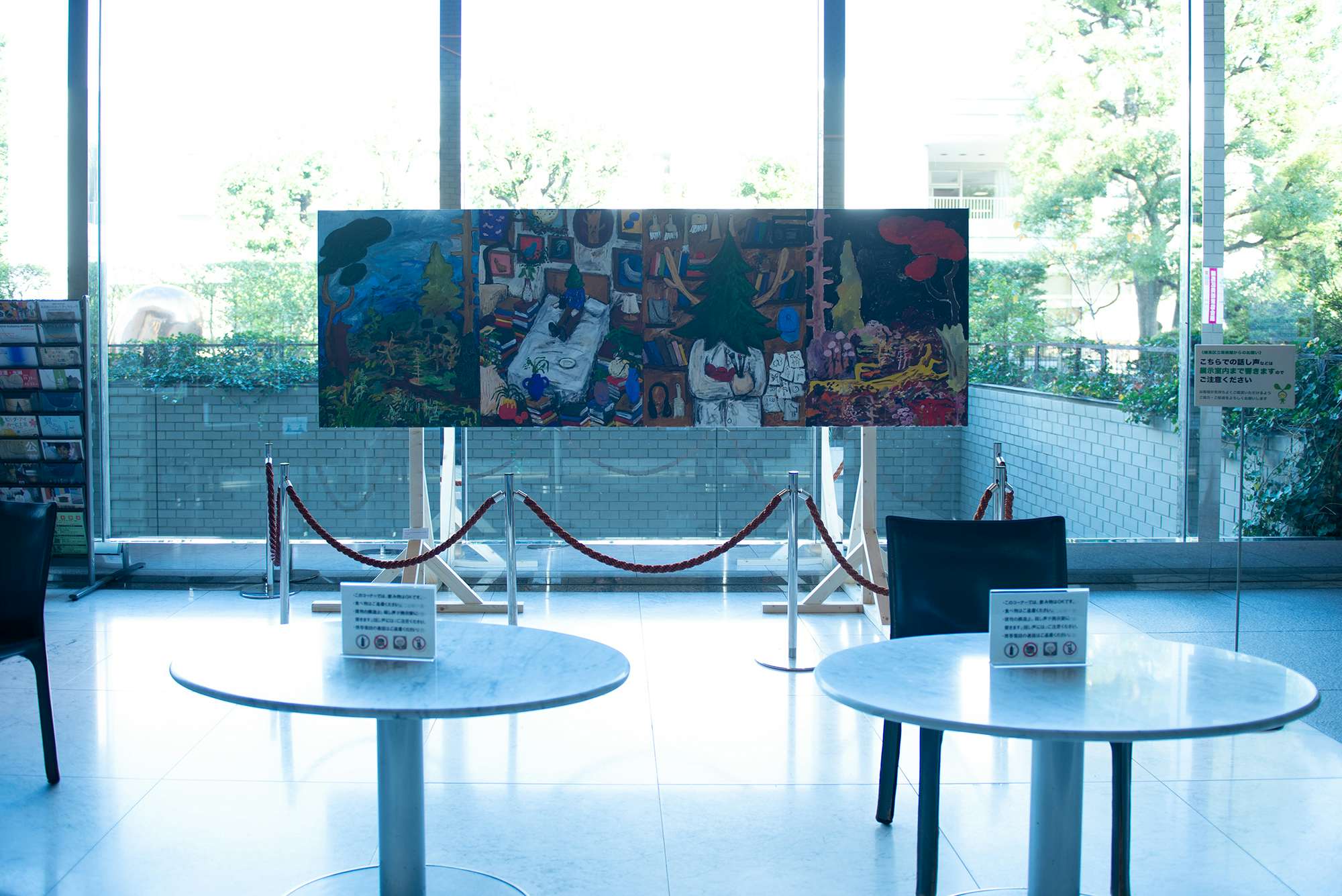 ロビー展示風景より、平子雄一《inheritance, metamorphosis, rebirthへの習作》(2022)