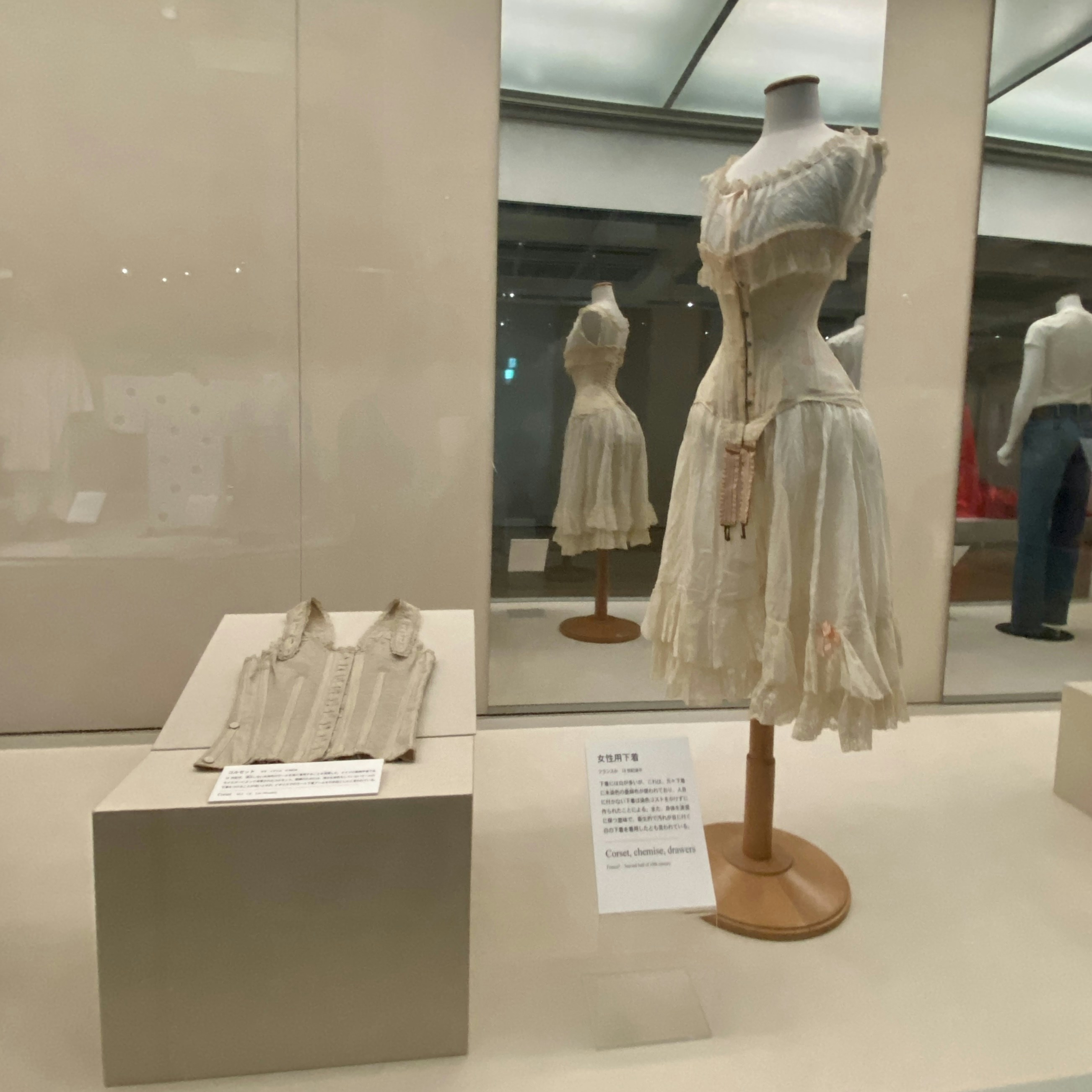 また、染料の紅花が血行を良くすると信じられていたことから赤く染められた日本の長襦袢や下着と、汚れが目立つという理由から衛生的な指標になるとして白色が採用された下着の対照性からは、場所や時代によって変わるもの・変わらないものがあることに気付かされる。