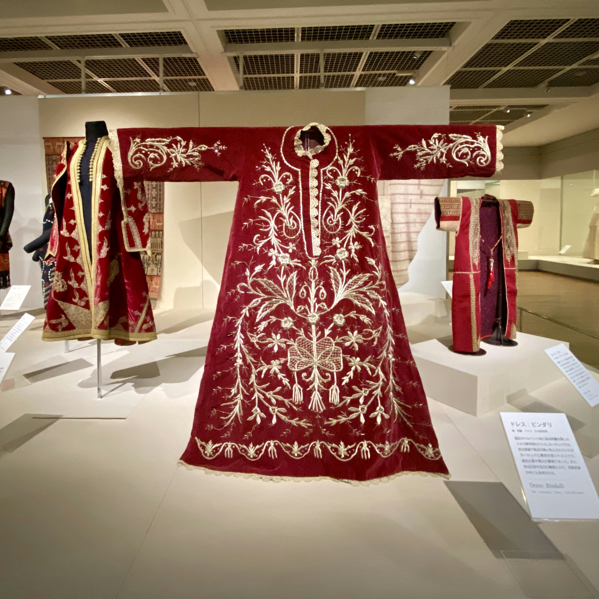 本展では、日本の着物、アジアやアフリカの民族衣装、ヨーロッパのドレスなど世界中の多種多様な衣服を通して、赤と白という色の持つ意味の共通点や相違点などを探ることができる。