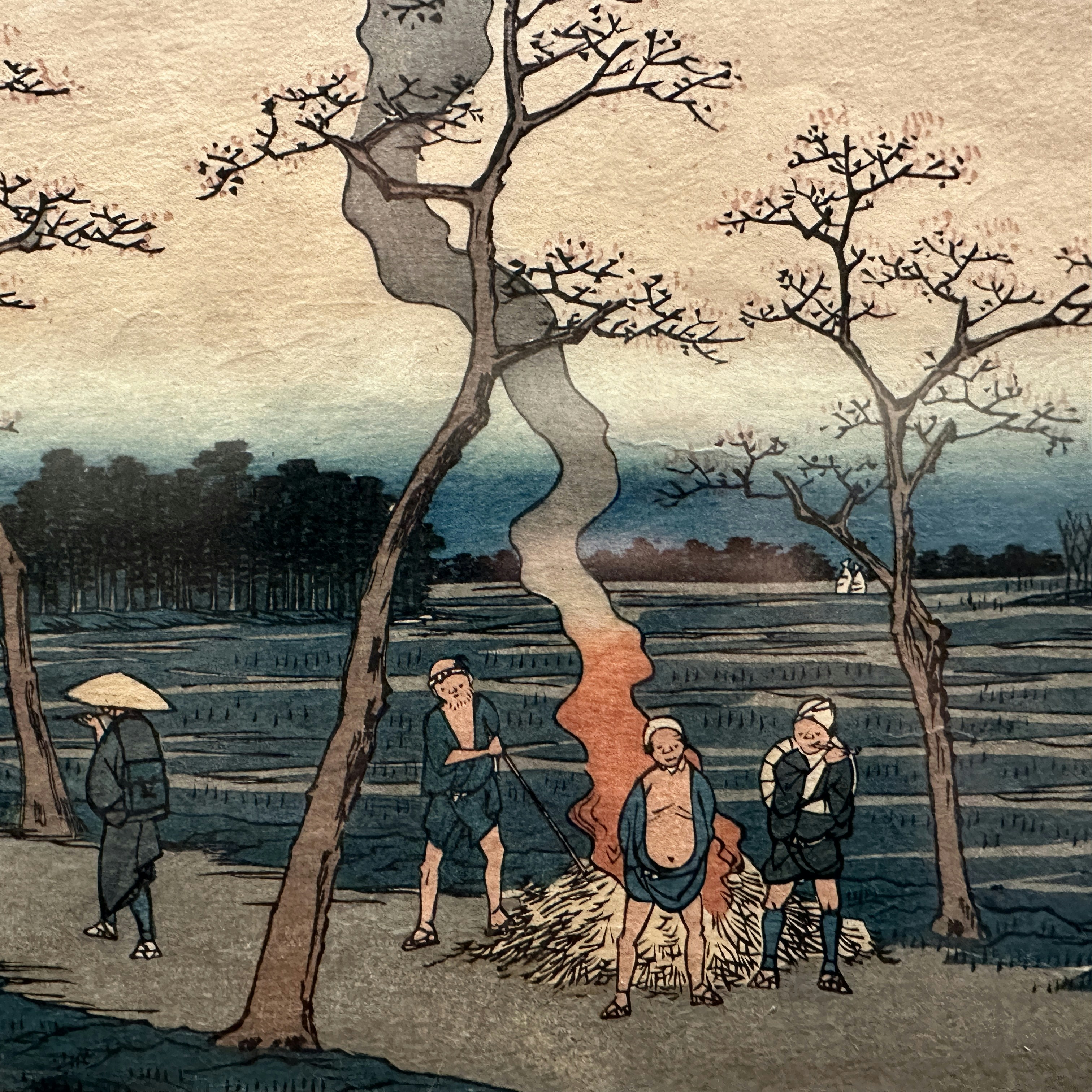 また渡邉は、広重の特徴として「風景に馴染んだ人物」が描かれている点を挙げる。広重は高い画力も持ち合わせていたが、風景画ではあえて登場人物たちをデフォルメさせている。そうすることで、風景と人物が絶妙なバランスでブレンドされのだ。またスナップ写真のような構成も、そうしたバランス感覚が優れていたからこそ成し得たものではないだろうか。
