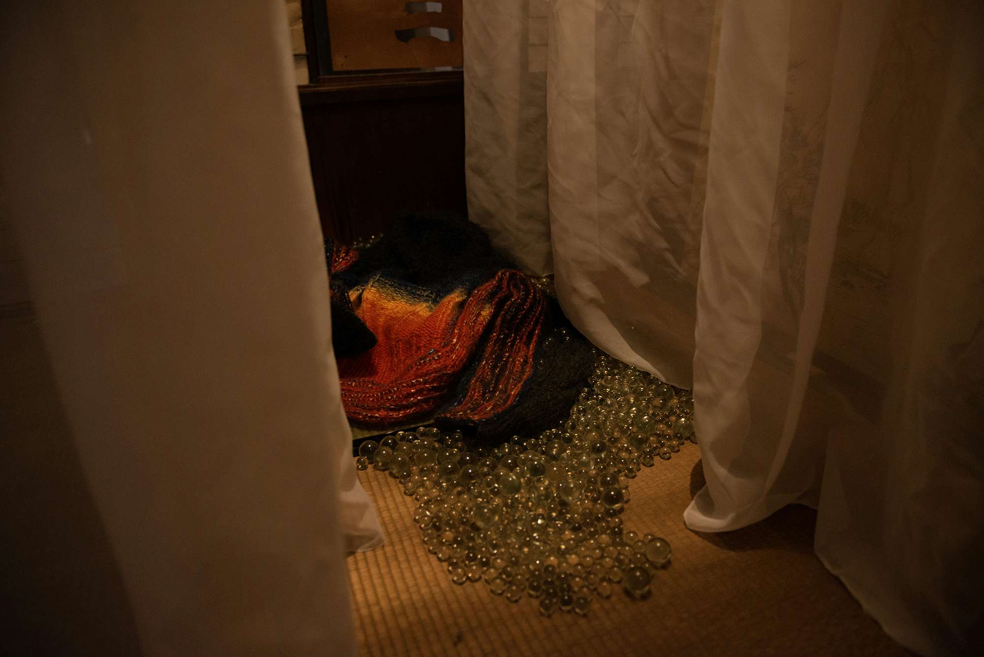 旧三松屋蔵屋敷(はかり資料館)展示風景より、《do frame tape》