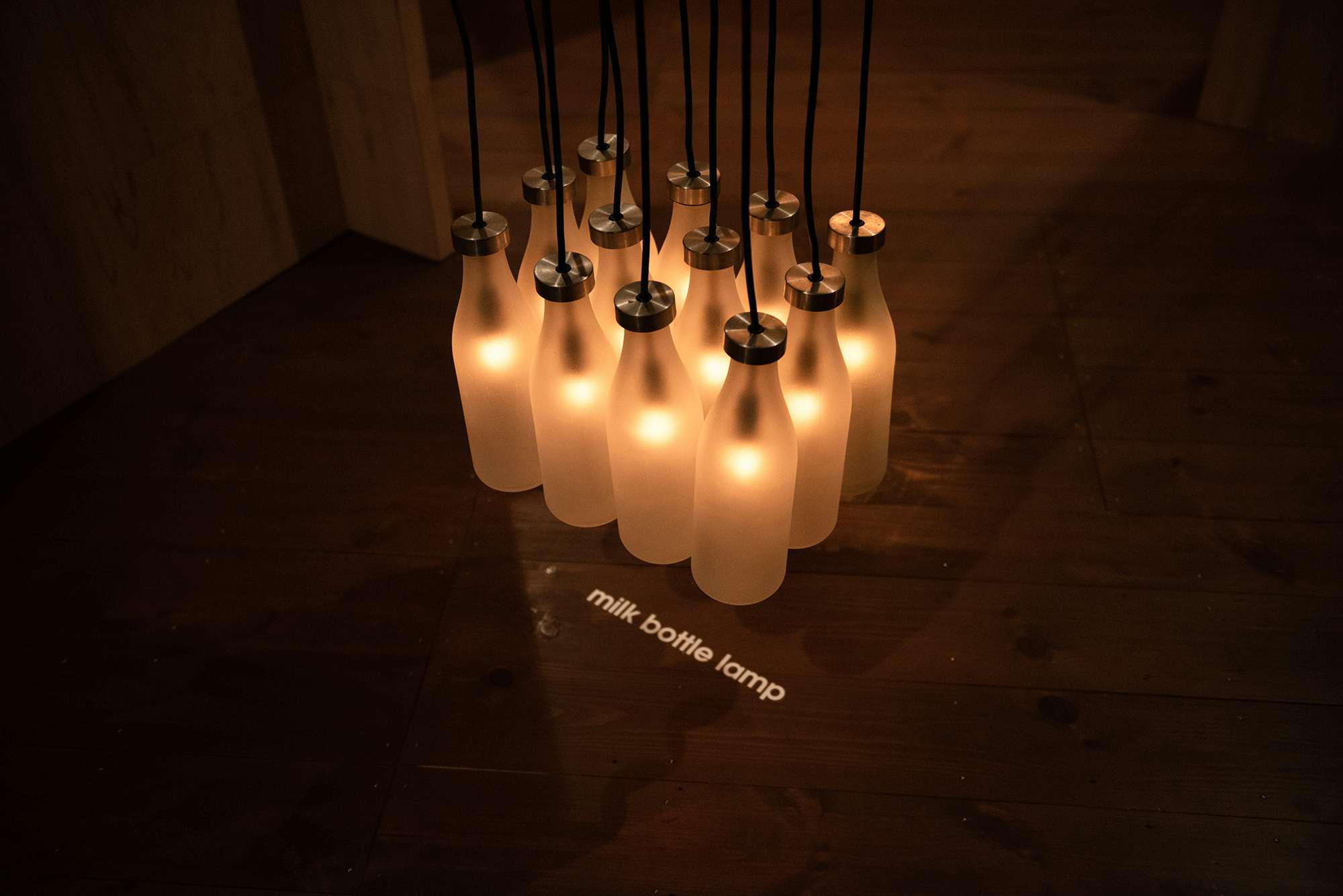 旧三松屋蔵屋敷(はかり資料館)展示風景より、《milk bottle lamp》