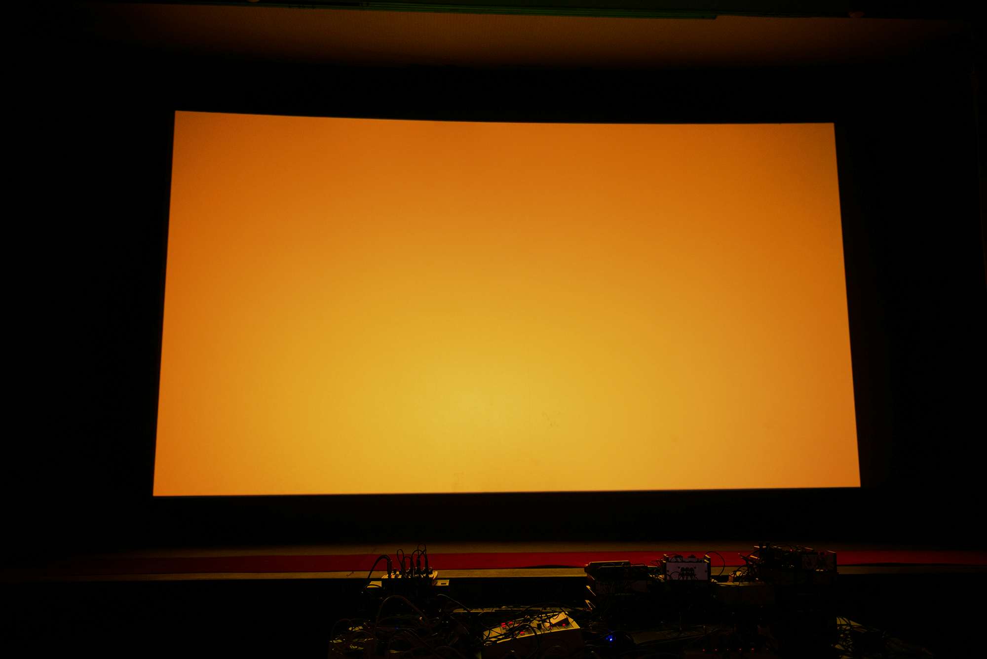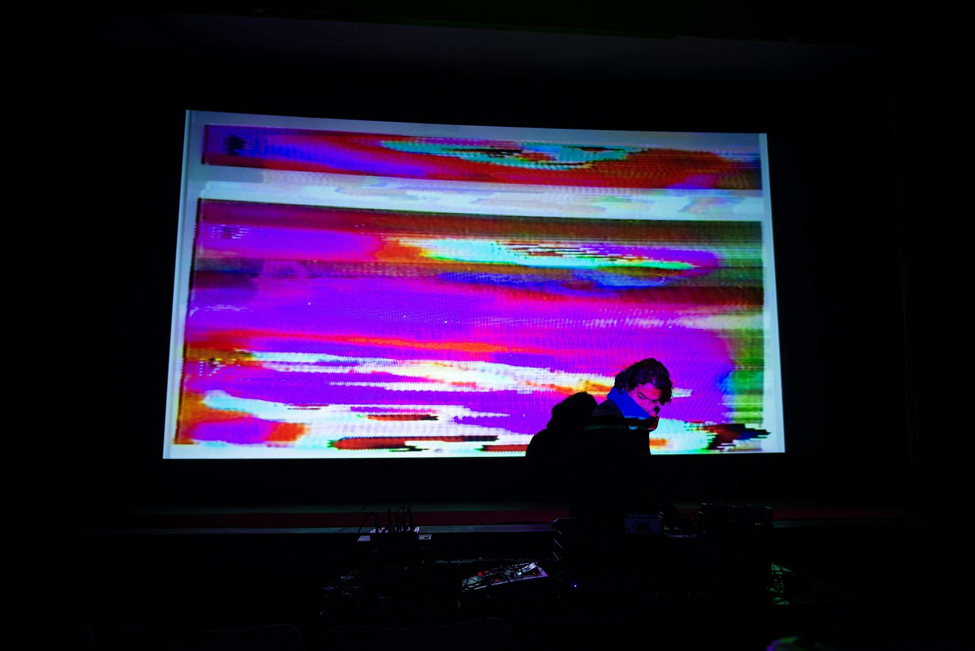 《ヴィデオ・フィードバック・ライブ・パフォーマンス》を見せる河合政之