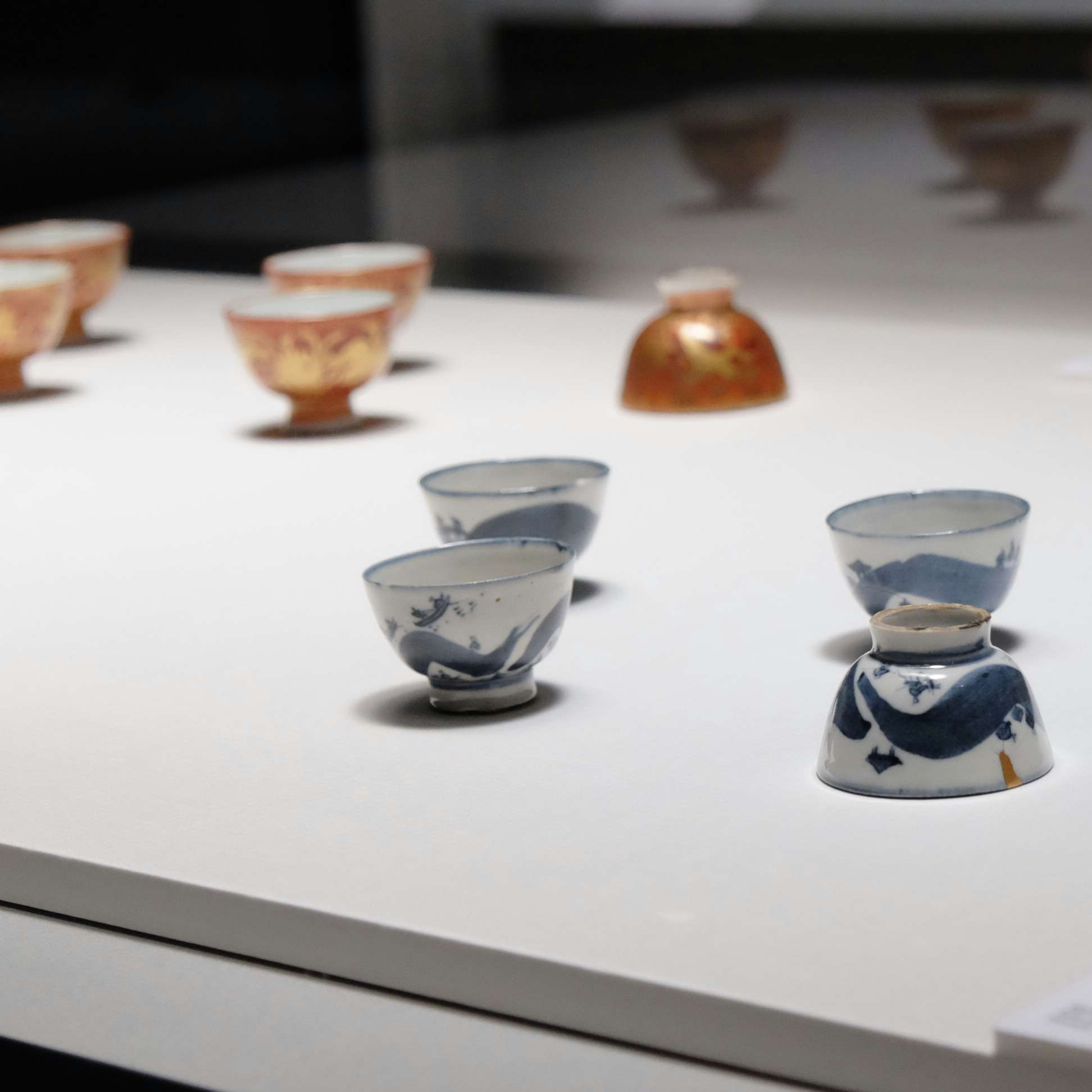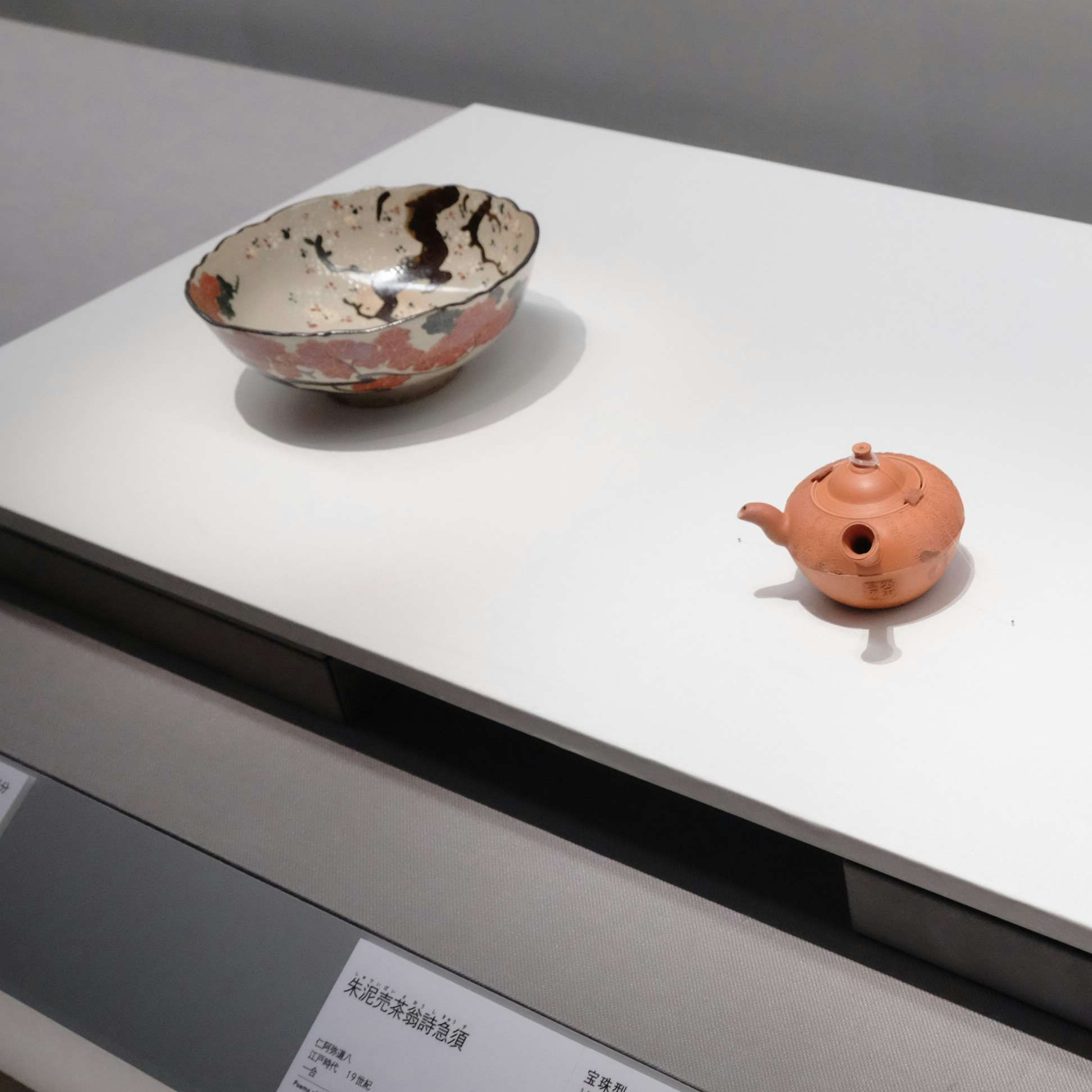また、木米と同じく頴川門下として活躍し、切磋琢磨した間柄であっただろう仁阿弥道八(1783〜1855)のほか、同時代に活躍した尾形周平(1788〜1839)といった、当時の文人の手がけた中国趣味の色濃い茶器も一堂に会する。