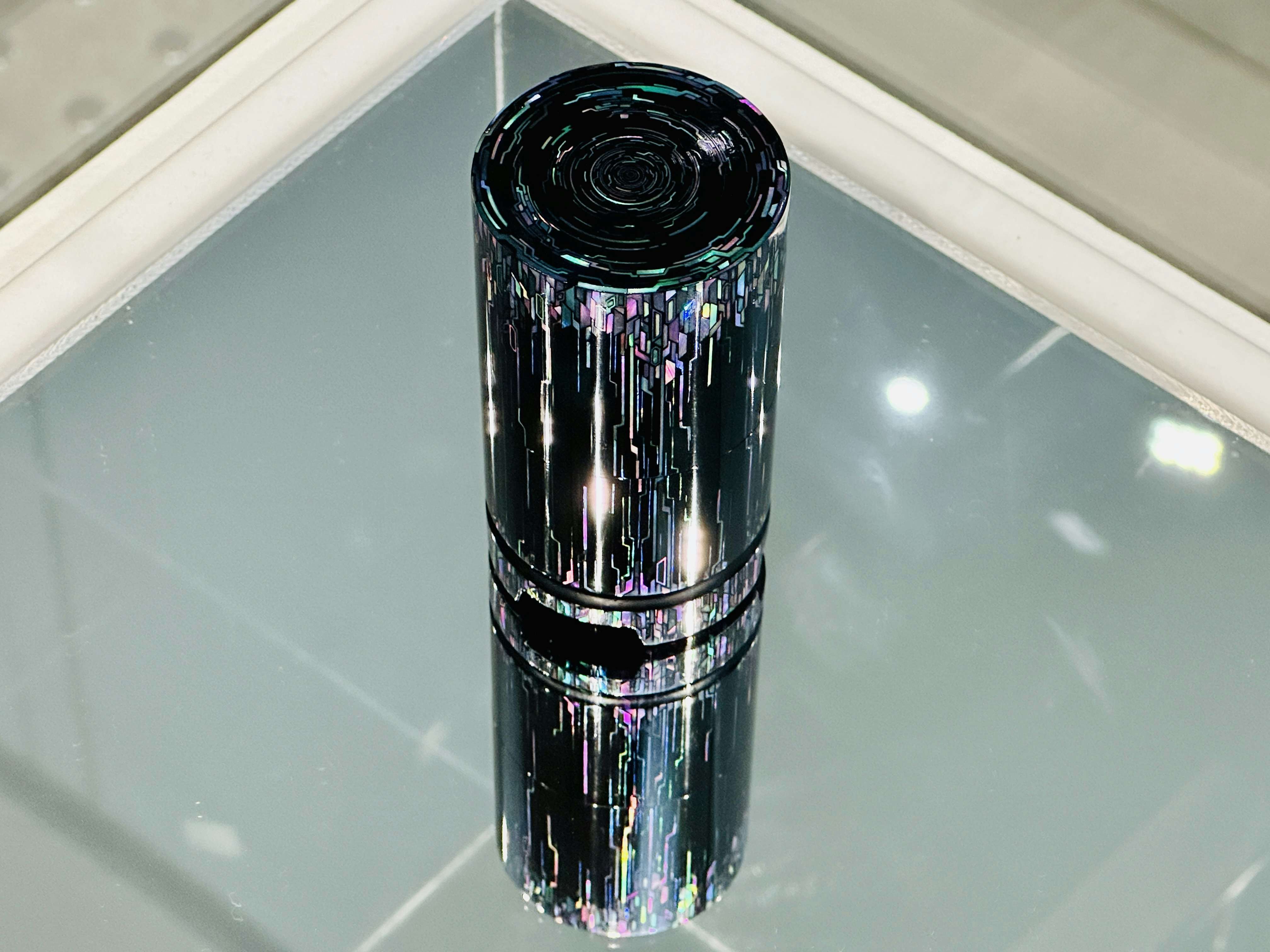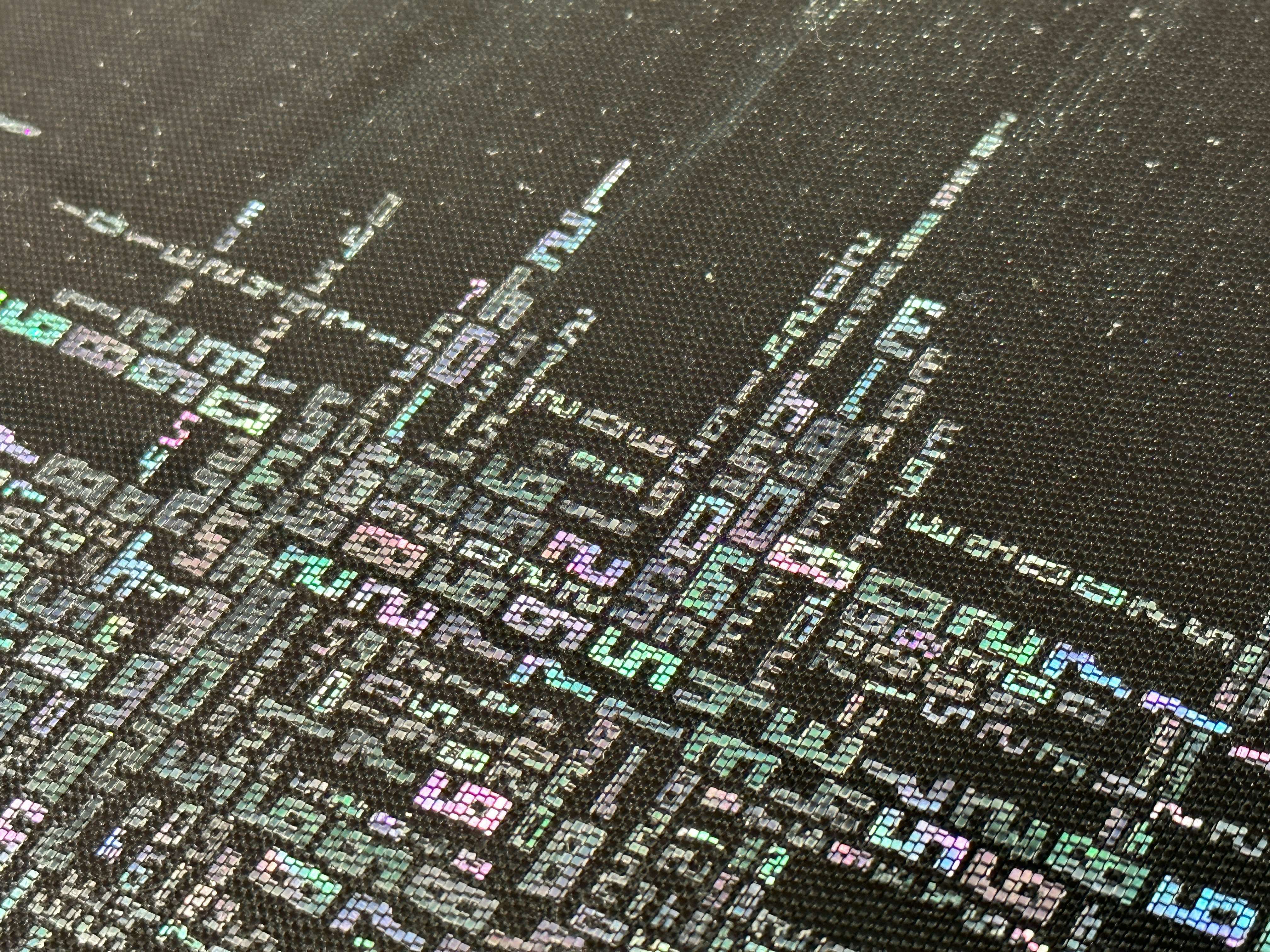 展示風景より、百千夜光螺鈿帯「八重霞」(2022)