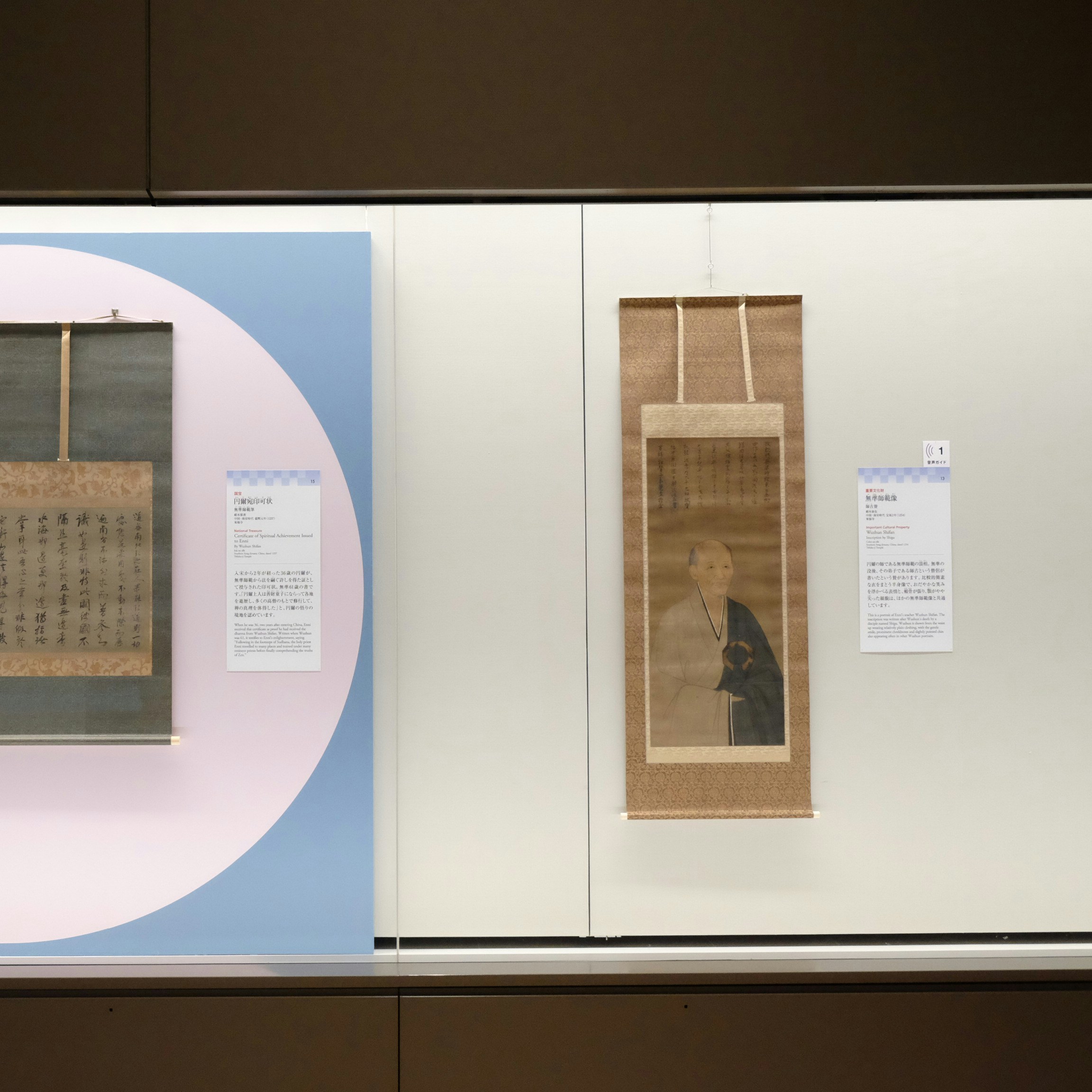 第1章の後期展示品のなかでも注目したいのが、無準師範筆の国宝《円爾宛印可状》(1237)だ。1235年に宋に渡り、6年間を諸山の高僧に歴参した円爾は、径山の高僧・無準(1177〜1249)の門に入り、修行を経て卒業証書にあたるこの《円爾宛印可状》を授かった。本作には「道は場所を問わず普遍であり、道を体得したものはどこにあってもその道を受用することができる」といった旨が書かれており、無準の法を継ぐものとして円爾が認められたことがわかる。