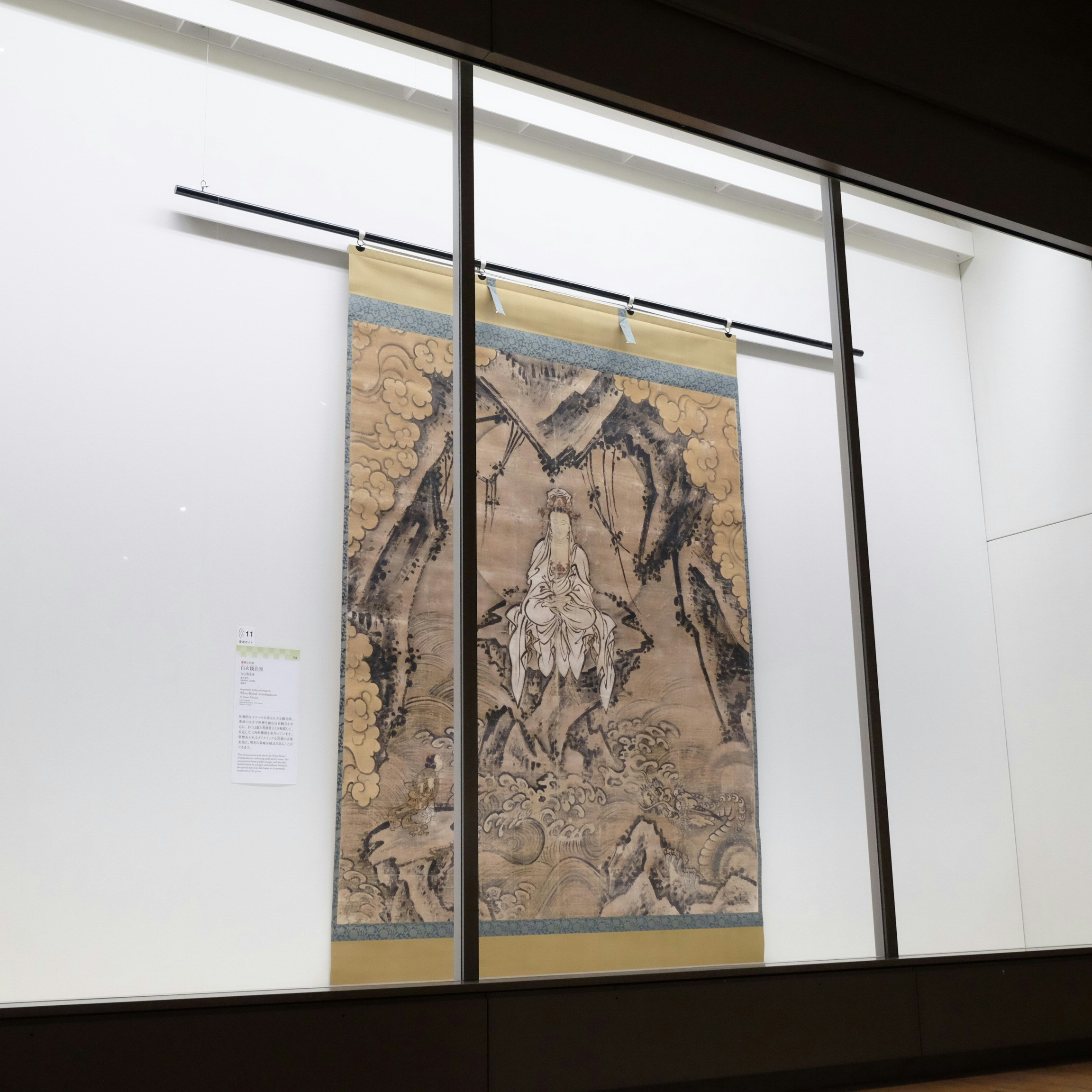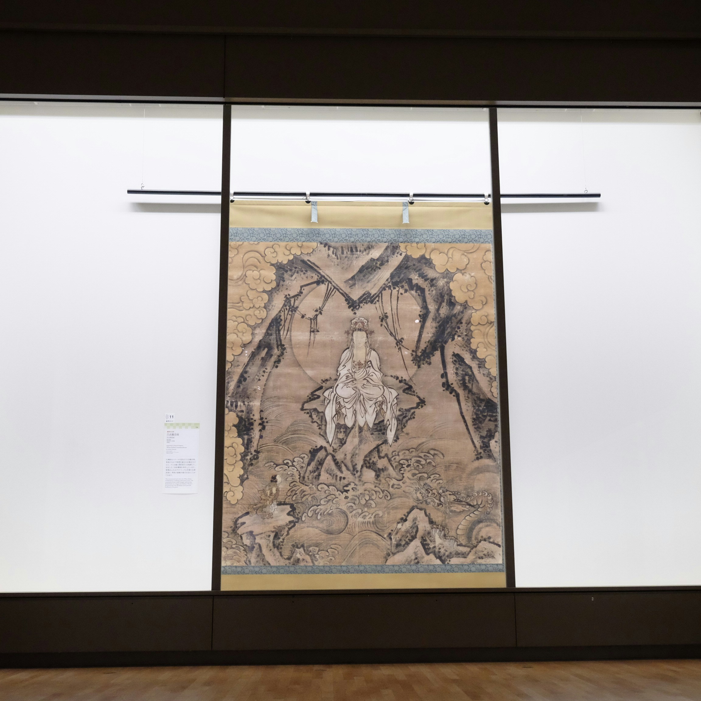 東福寺を拠点に活動した絵仏師・吉山明兆(1352〜1431)は、江戸時代までは雪舟(1420〜1505?)と並び称されるほどの高名な画人だった。この明兆の代表作を展示する第3章「伝説の絵仏師・明兆」では、重要文化財である巨大仏画の《白衣観音図》(15世紀、室町時代)が後期展示より登場した。