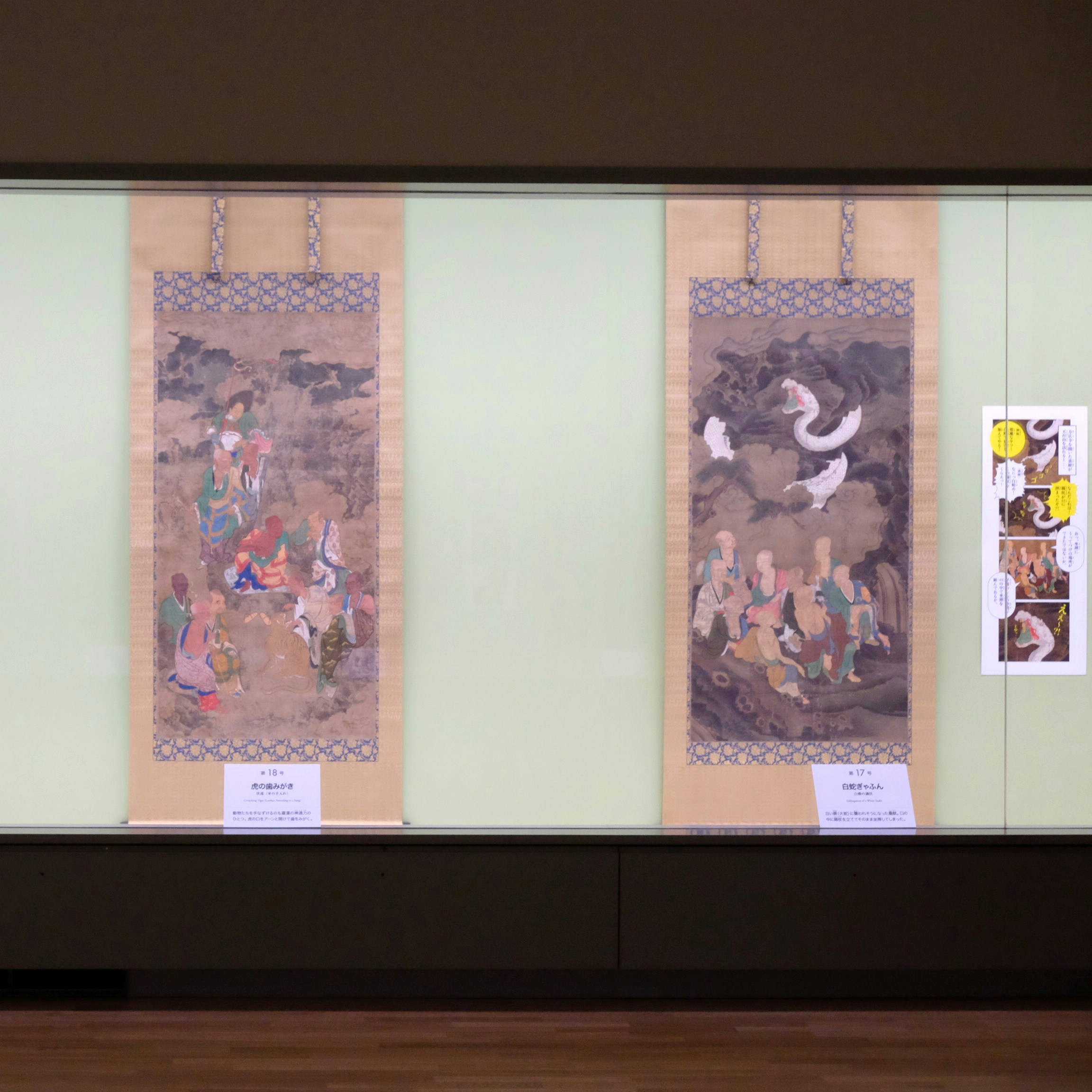 また、本展の注目作品のひとつである《五百羅漢図》は50幅で構成されるが、本展では明兆筆47幅、狩野孝信筆2幅、復元模写1幅を、会期中に入れ替えながらひとつの展示室で紹介している。