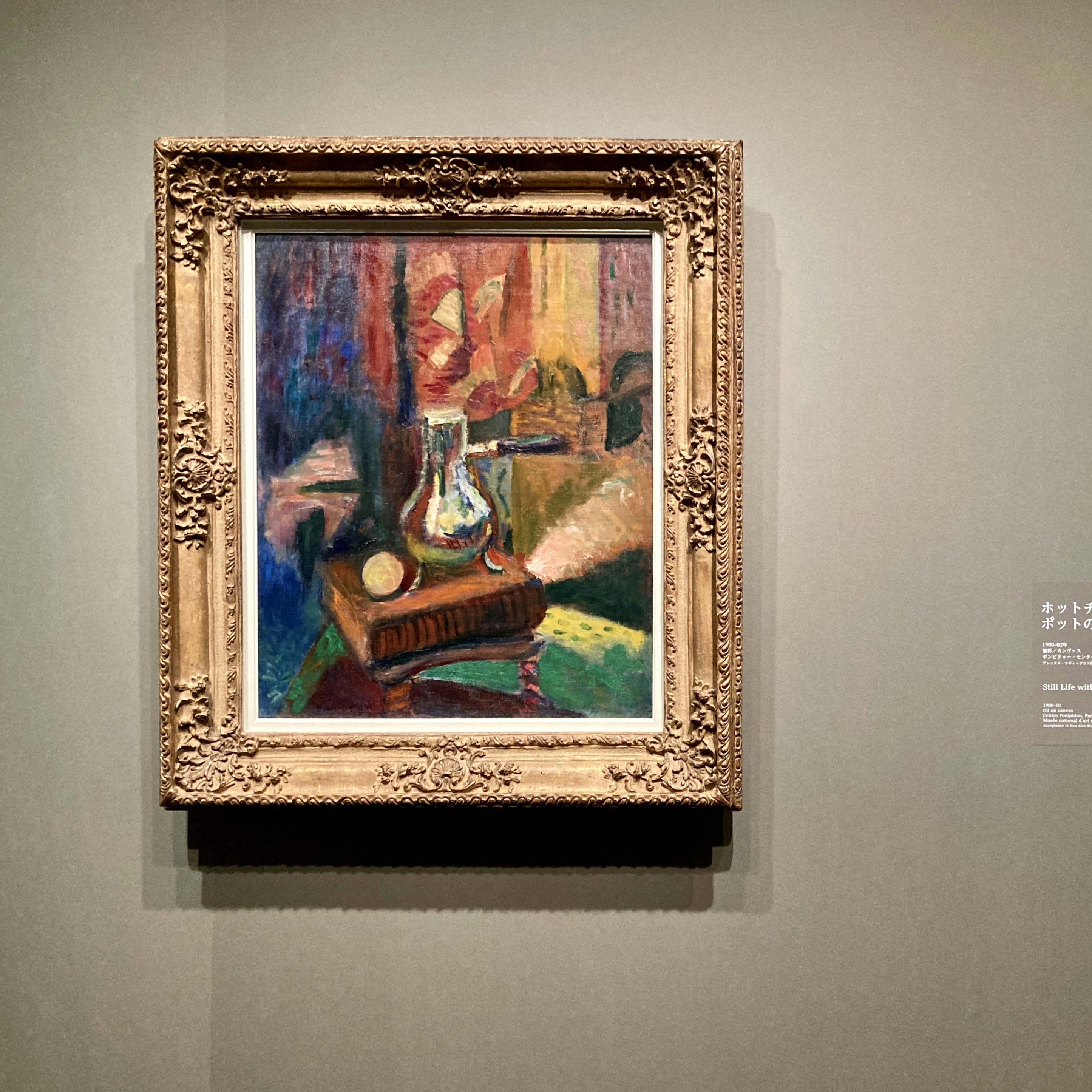 マティスが好んで用いたオレンジが登場する《緑色の食器棚と静物》は、画面を構成する要素が互いに切り離されることなく均衡を保って収まっており、構図への挑戦を看取しやすい一枚だ。
