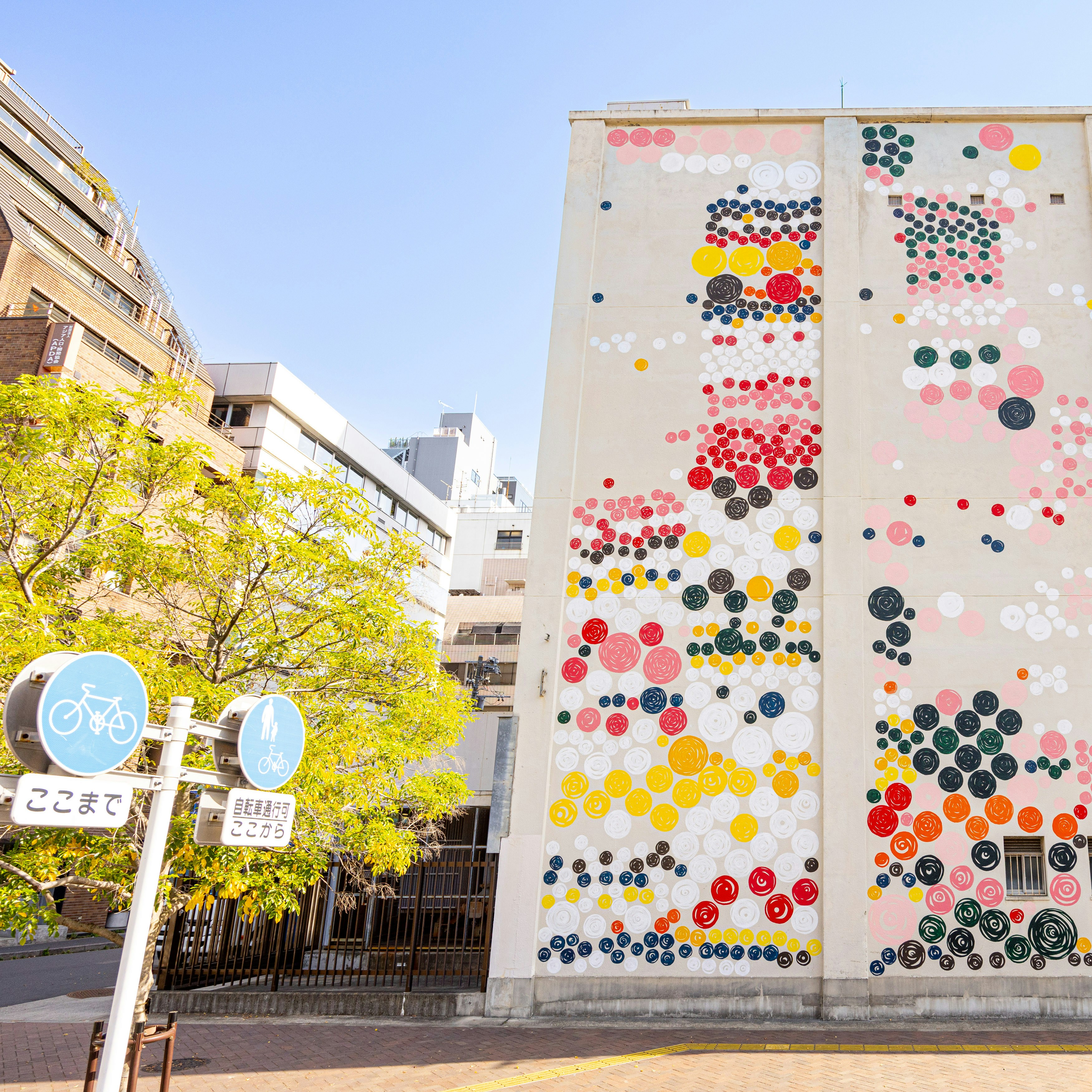 2014年の開通当初、沿道の多くの建物が道路に背面を向けて建っていた新虎通り。そこに賑わいを創出すべく計画されたのが「ミューラルアート(ウォールアート)」だ。2017年には、日本のミューラルアーティストであるSAL・JONJON GREENによって新虎通りに面したカザマビルに作品が制作されている。