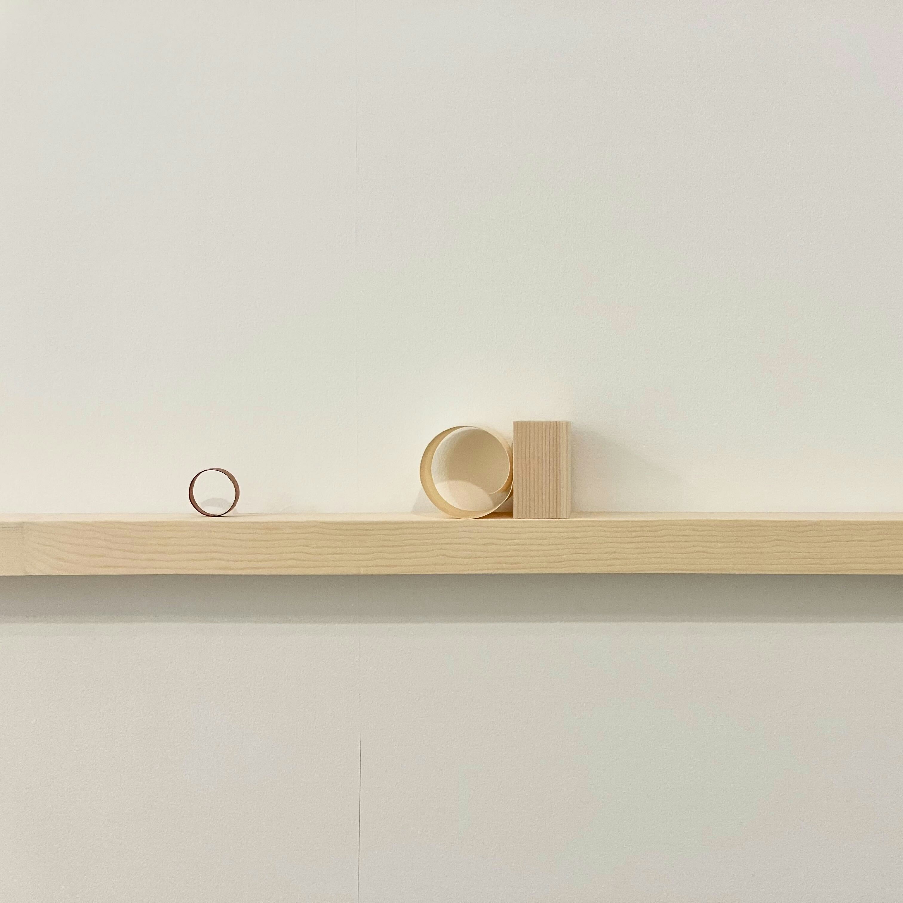 現在開催されているのは、その三澤の個展「Just by | だけ しか たった」だ。本展では「だけ しか たった」と表されるように、ささいな行為を加えただけでものの見方が変化するといった、完成された作品の手前にある「思考の立体エスキース」を会場内に点在させている。