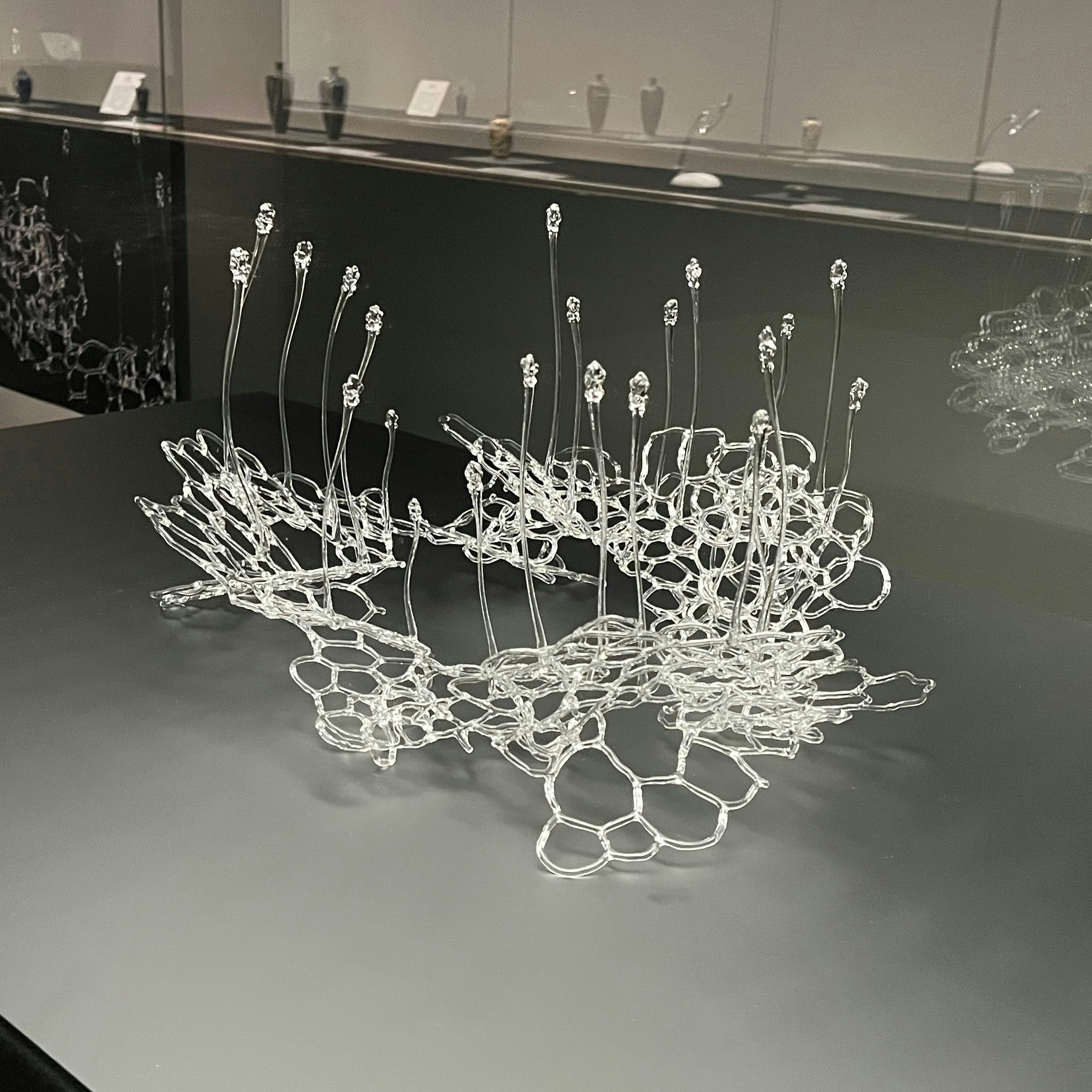 そして昨年、惜しまれながら世を去った青木美歌のガラス作品も展示されている。青木がガラスという素材を通してとらえようとした生命のあり方は、有機的でいまにも結合し増殖していきそうなガラスを通して見るものに訴えてくる。