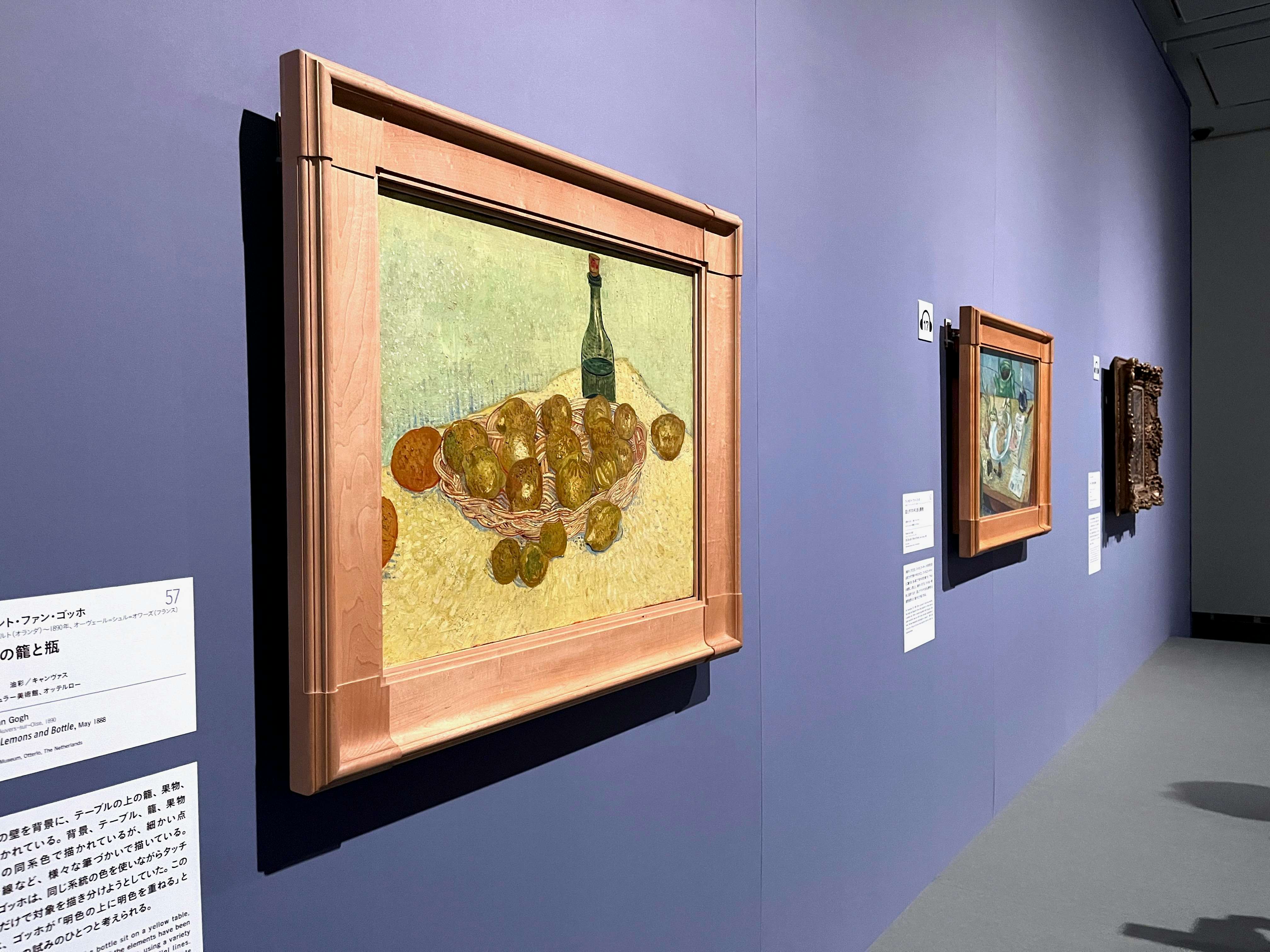 展示風景より、手前がフィンセント・ファン・ゴッホ《レモンの籠と瓶》(1888)