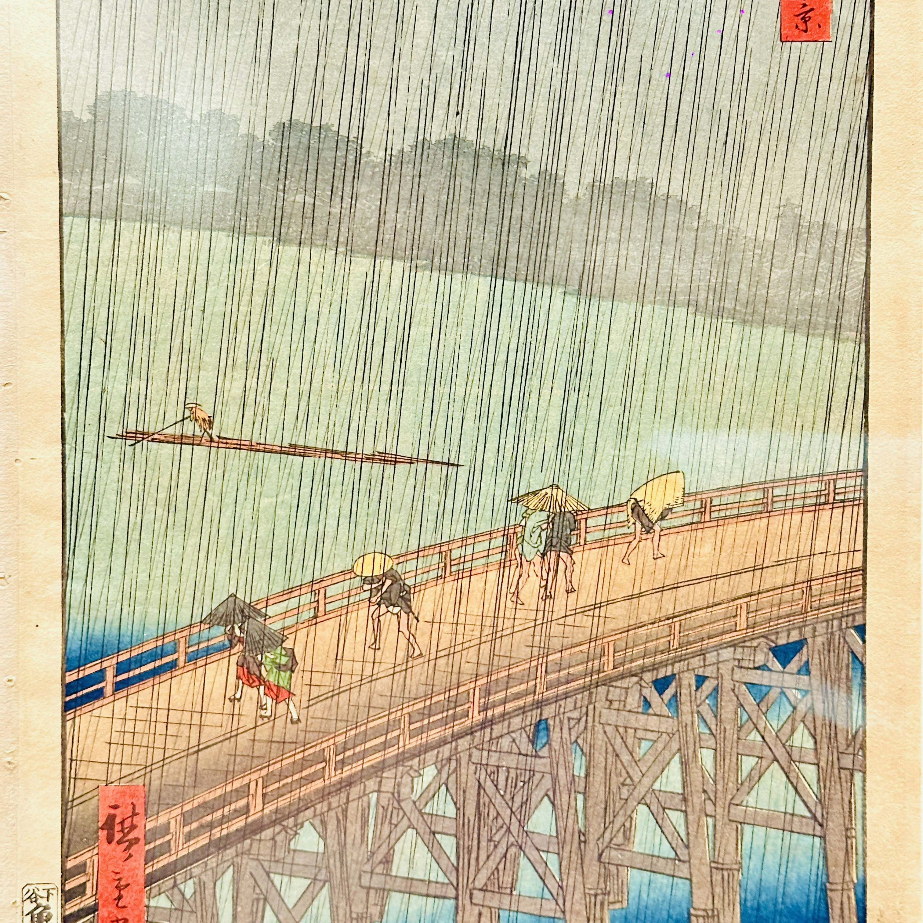浮世絵版画は最初に200枚程度を摺る。また多いときでは7000枚もの摺りが重ねられた記録もあるという。その摺りの早い遅いによって、雨の線、空の色、色の版のズレなど、表情が大きく変わるものもある。会場では、こうした摺りの違いを比較するという楽しみ方も提示されている。
