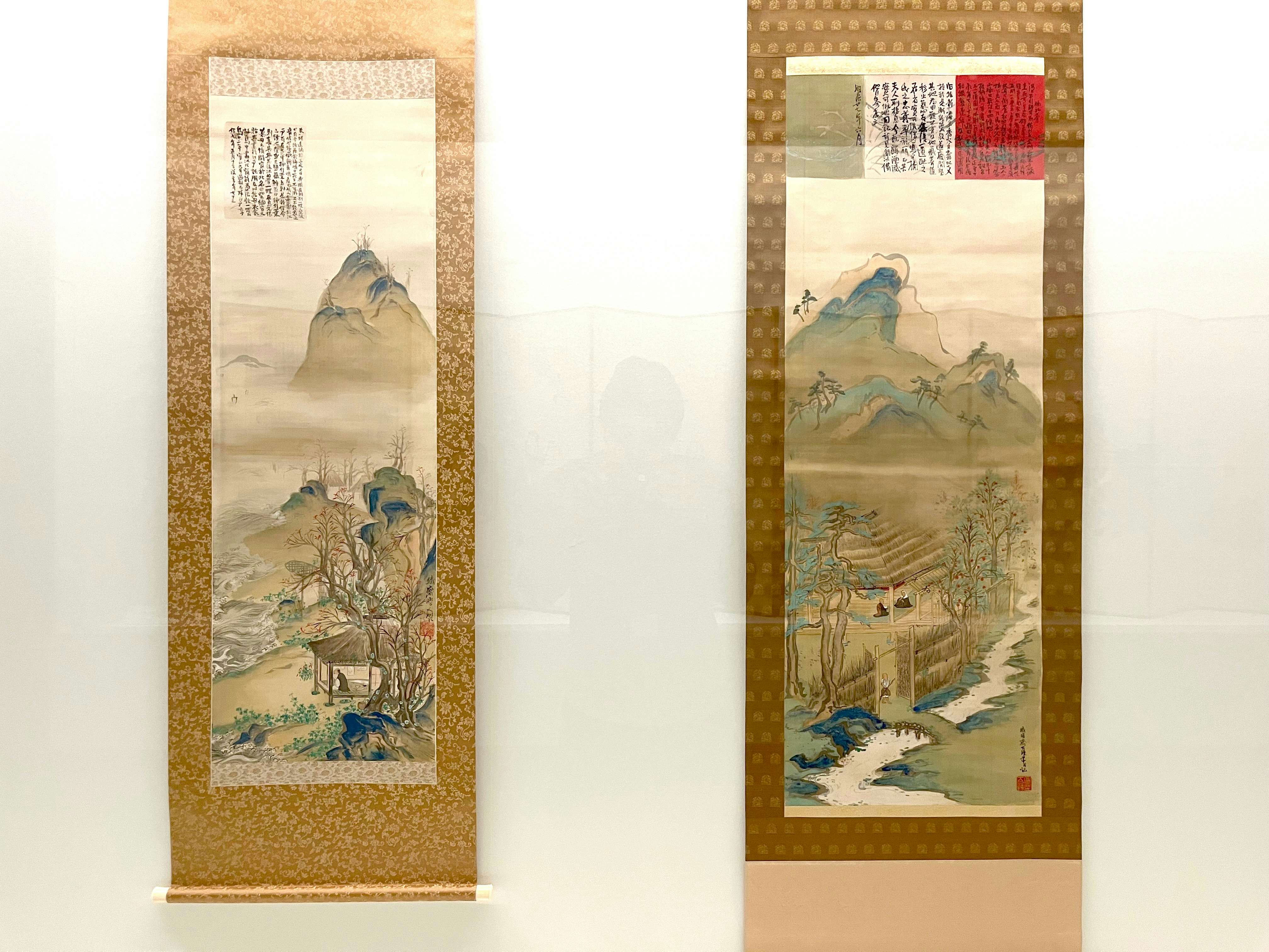 展示風景より、富岡鉄斎《阿倍仲麻呂明州望月図・円通大師呉門院栖図》(1914)