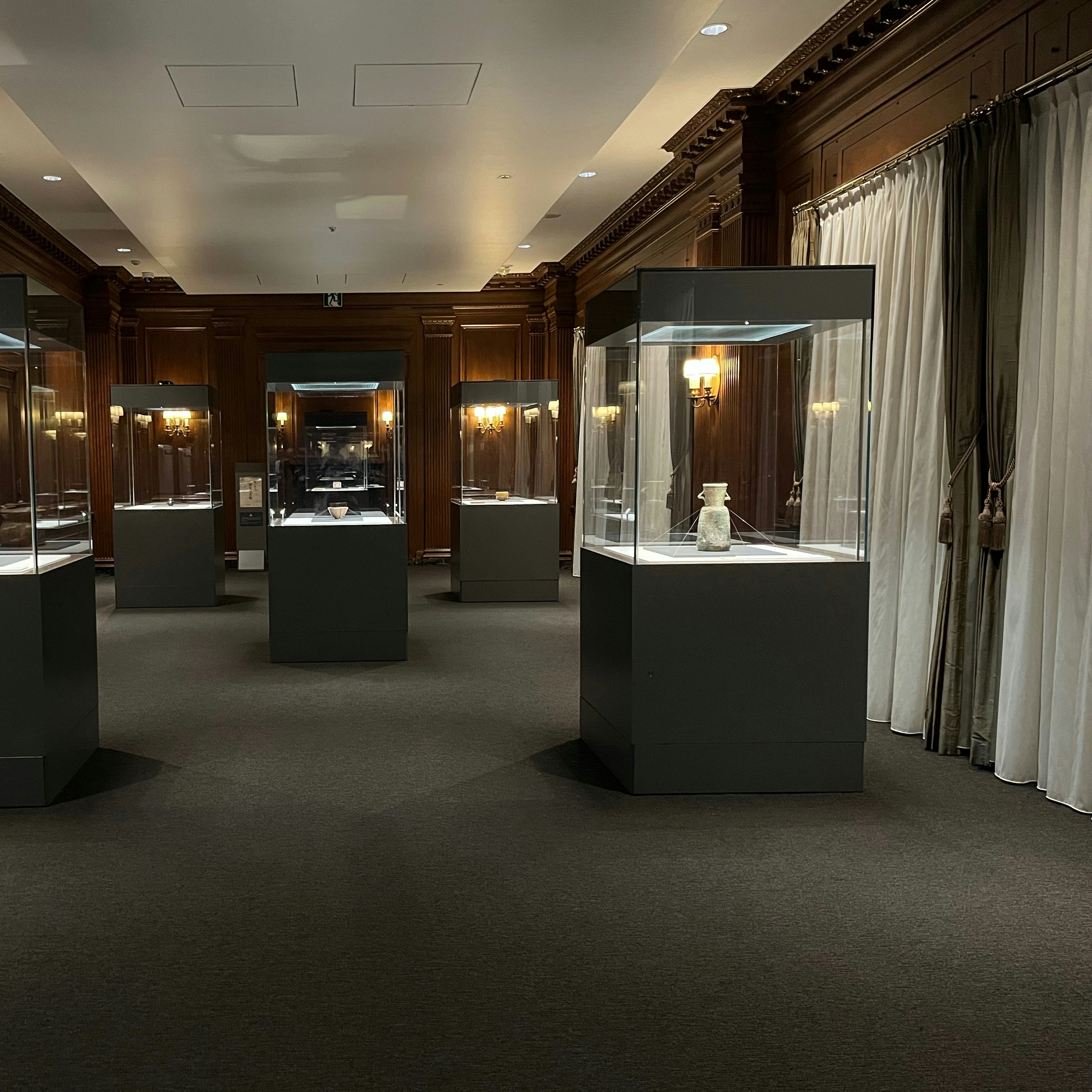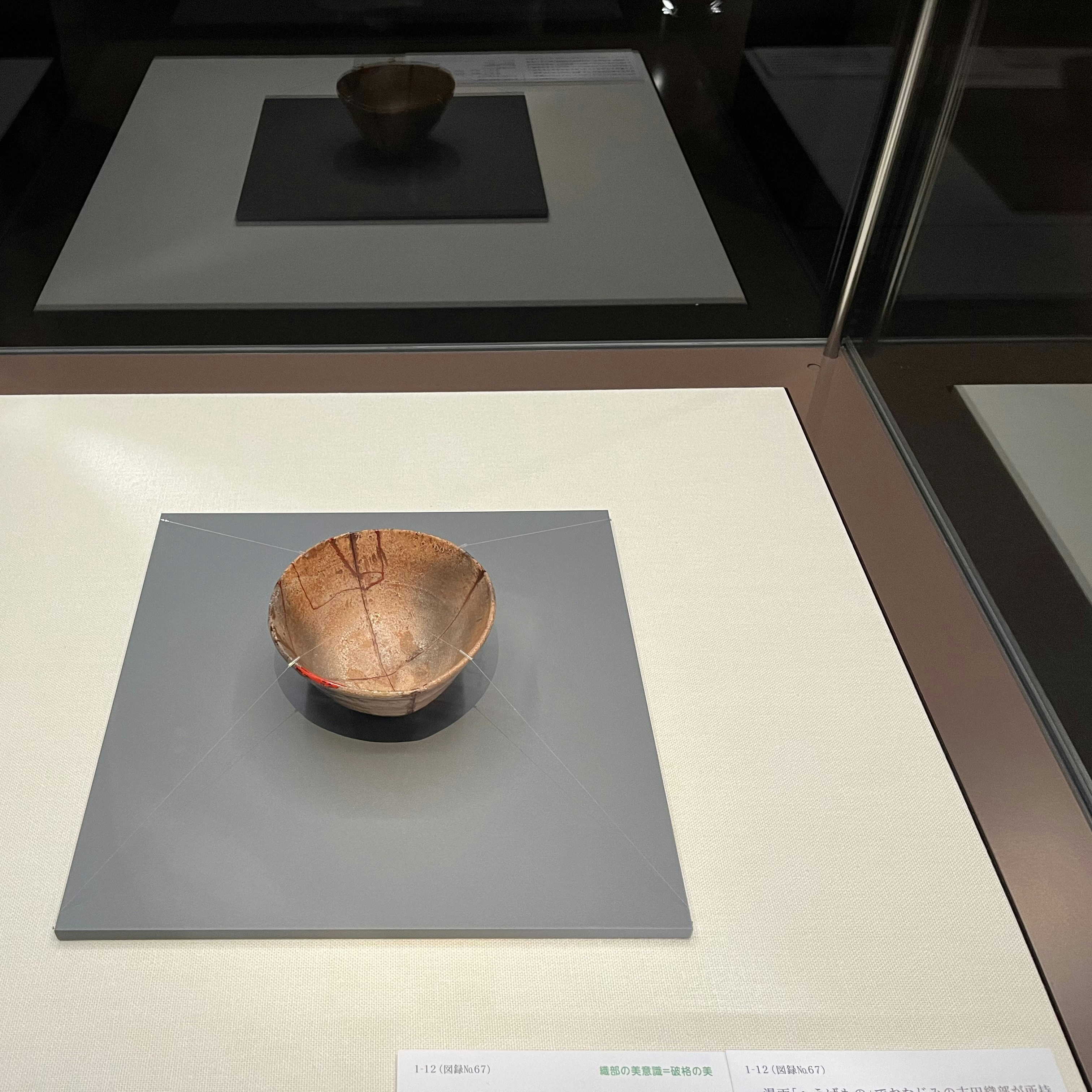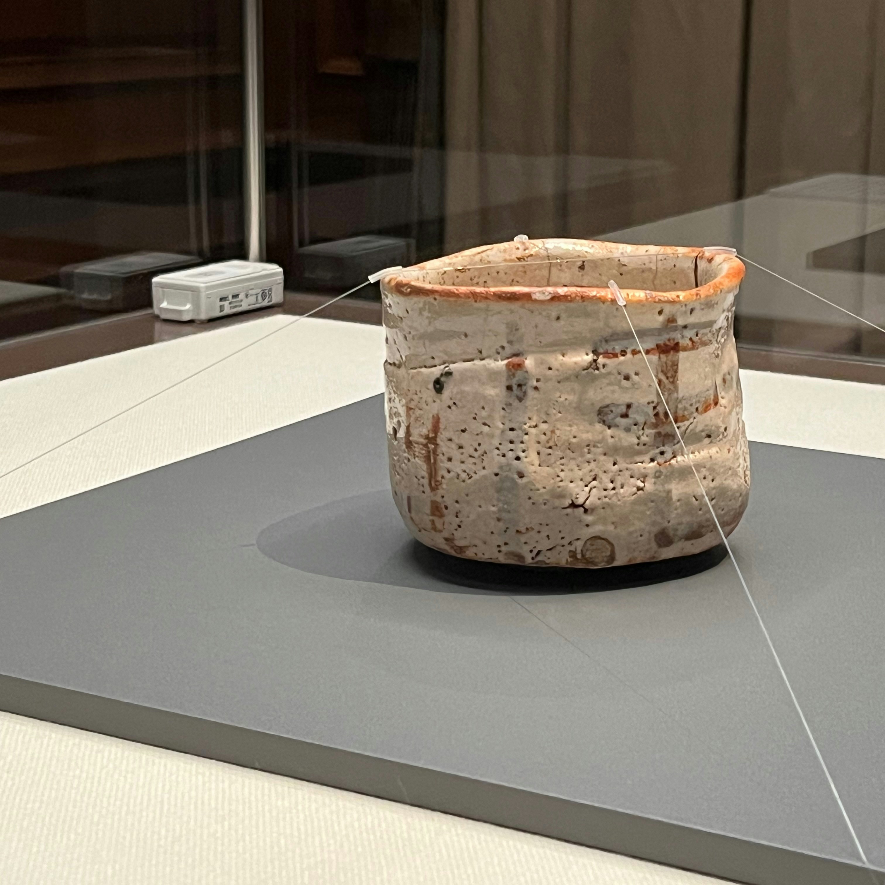 また、三者の美意識の紹介とともに、三井記念美術館を象徴するコレクションのひとつである《志野茶碗(銘 卯花墻)》(桃山時代・16〜17世紀)も、国宝の名碗として紹介されている。本品がいつごろ焼かれたのかはわかっていないが、現在にいたるまでの茶の湯の歴史のなかで、大きな存在であり続けている。