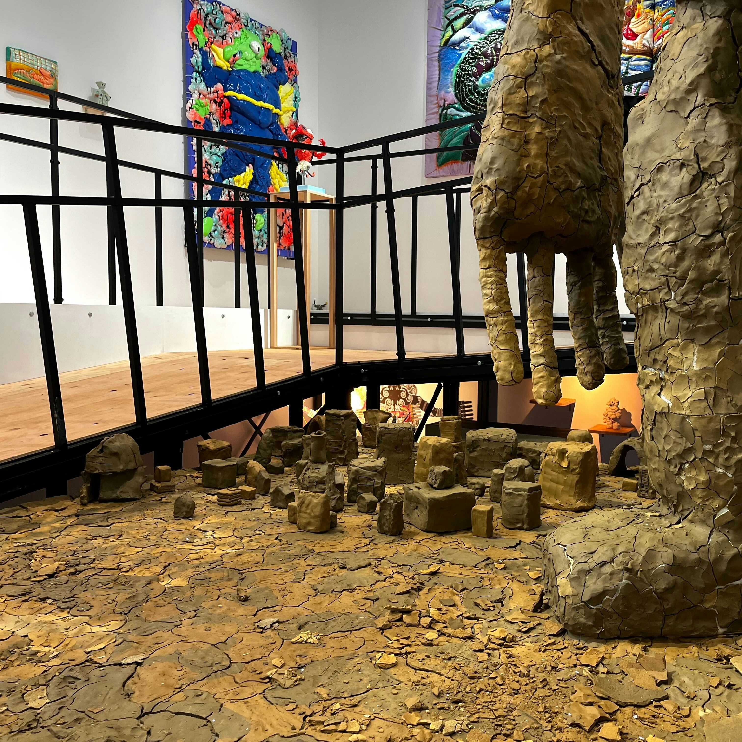 また、大量生産されるソフビ人形に用いられる素材や着色を施した一点ものもフィギュアを制作。おもちゃとアートの境界を探るといった試みも見受けられる。
