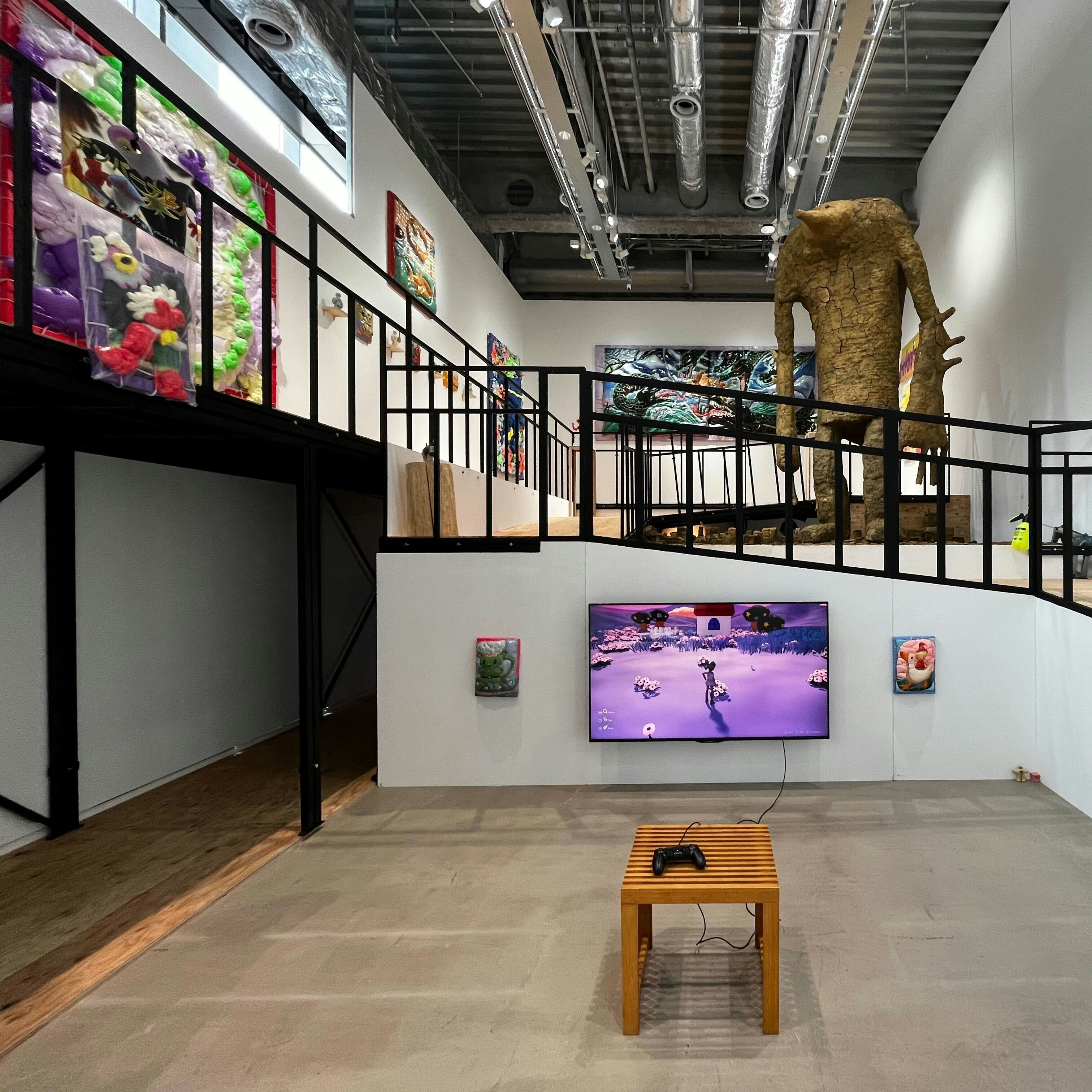 影山紗和子は、メタバースワールドを散歩する《Mimi's Slightly Sleeping Forest》、そして独自のタッチで描かれたアニメーションシリーズが展示されている。《Mimi's Slightly Sleeping Forest》の特徴は、まさに散歩をすること。鑑賞者は主人公ミミワンプーを操作できるものの、ゲームで用意されているような「クエスト」があるわけではない。たかくらのキャラクター・マトリクス論から考えるならば、「物語からの解放」ともとらえることができるだろうか。