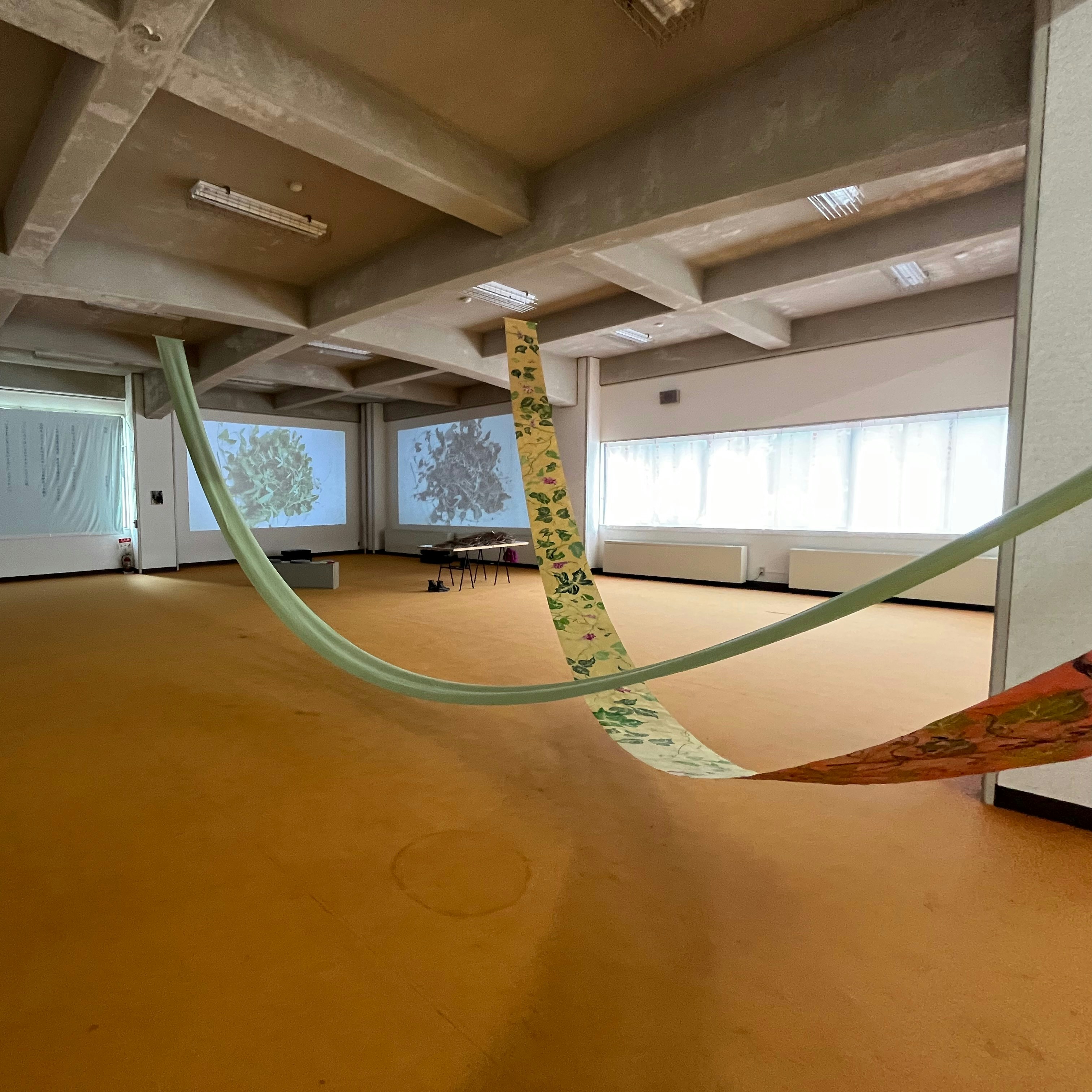 浅野は細長い染色と絵画を通して蔵王の人々の生活を写し取り、春原は「肌」をテーマに土地の重層を写し取る絵画を制作。そこに管の16行詩や、大和による蔵王の植物に着目した映像インスタレーションが合わさり、多彩な感情を喚起する空間が生まれている。
