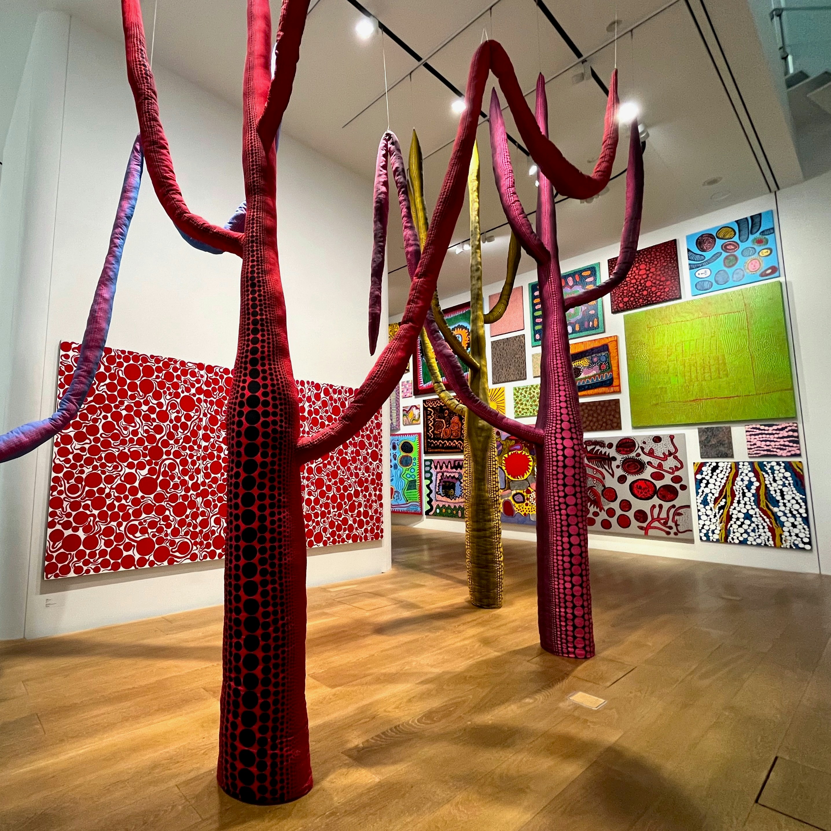 東京・弁天町の草間彌生美術館で、草間彌生の死生観の表出と変遷を取り上げる展覧会「私は死を乗り越えて生きてゆきたい」が開幕した。会期は2025年3月9日まで。