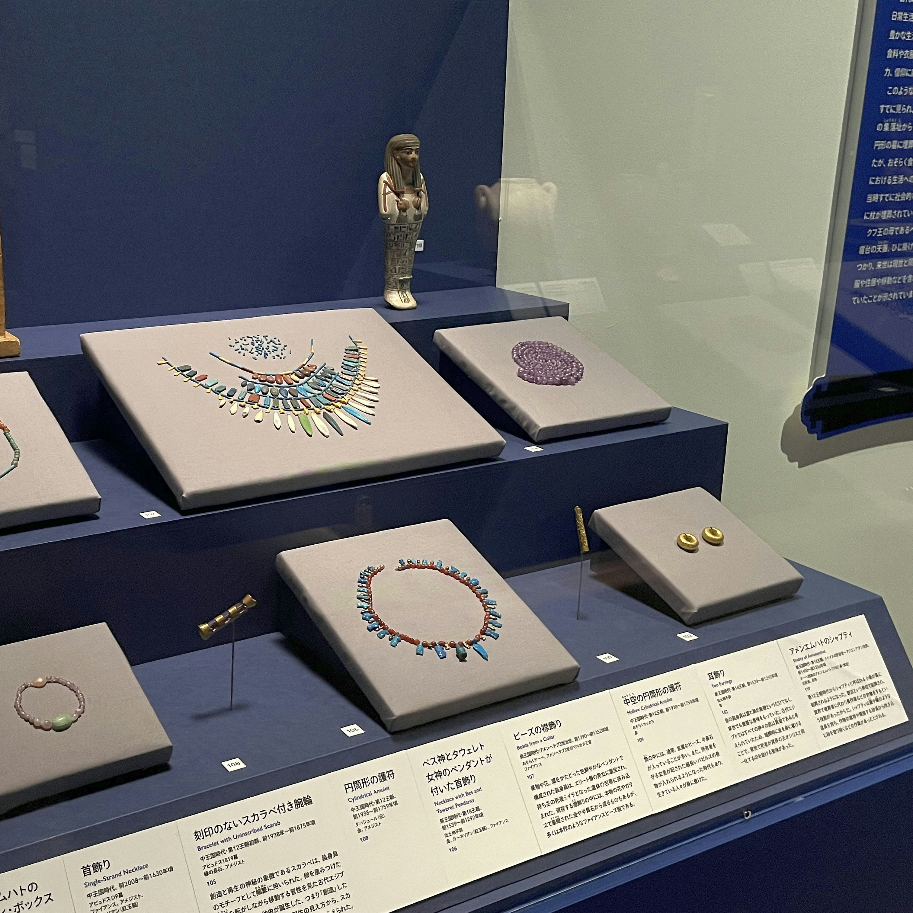 会場は「生活」「ファラオ」「死生観」で大きく3つのステージに分けられ、それぞれ細かなテーマ設定が、遺物をたどるキーワードとなる。解説のほか装飾パネルも多用されており、家族やグループで楽しみながら回れる空間になっている。