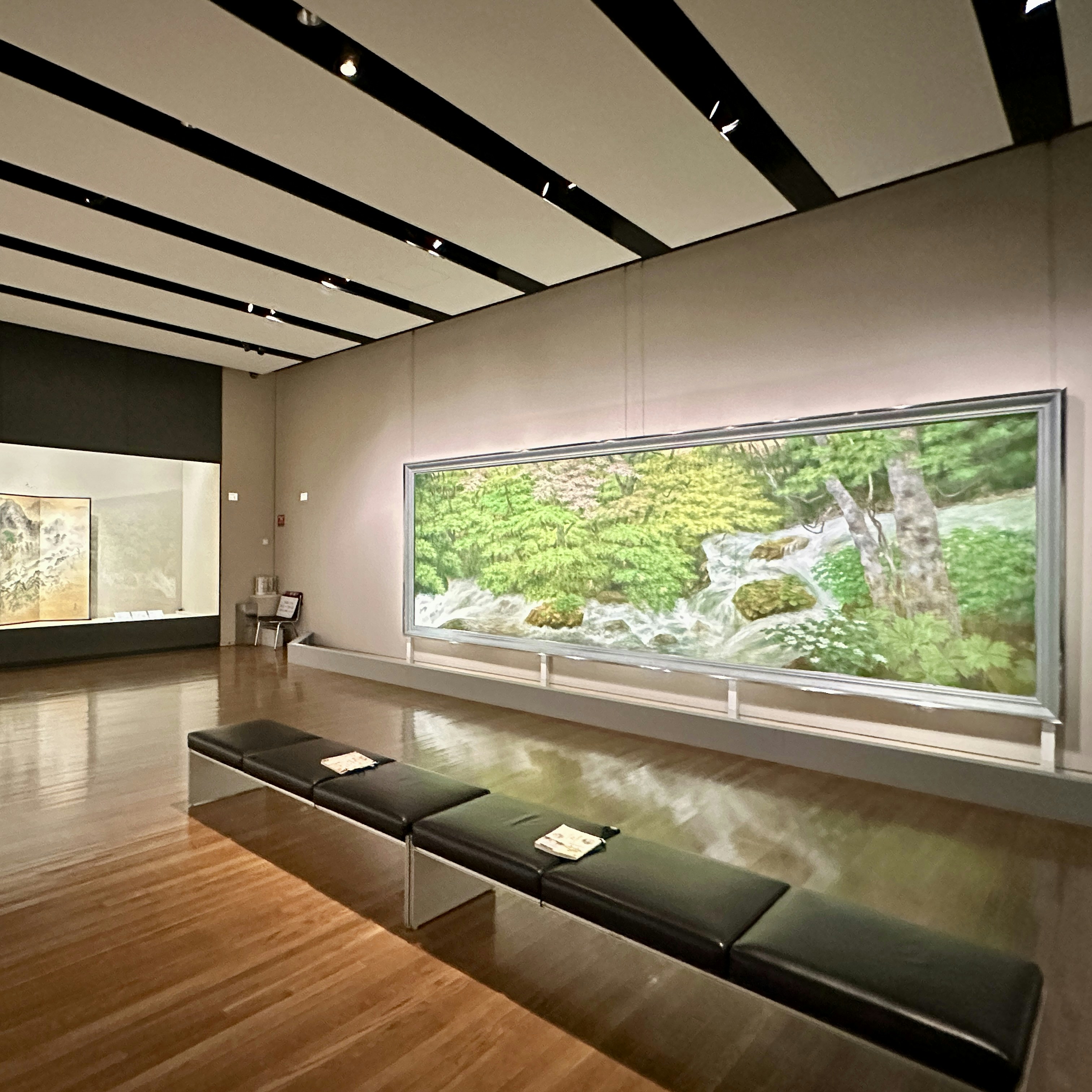 また1章では、清らかな水が流れる渓谷に咲く山桜を表した川合玉堂の《春風春水》(1940)にも注目したい。渡し船は、玉堂が好んだモチーフであり、本作にも春の山間部を舞台に、農婦を乗せた渡し船がゆったりと川を渡る様子が描かれている。