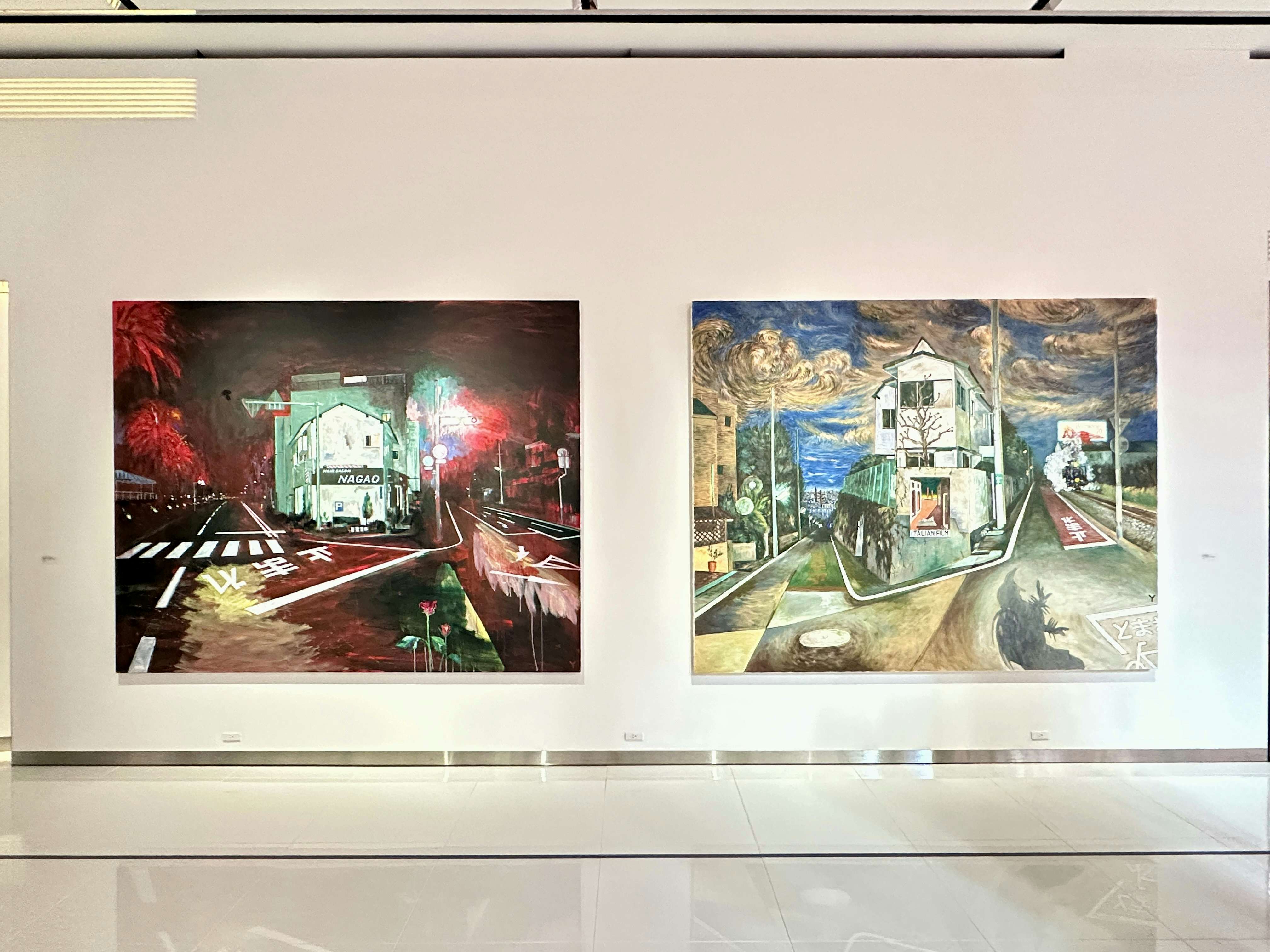 展示風景より、左から《寄り路》《出発》《椅子だらけの自画像》(すべて2025)