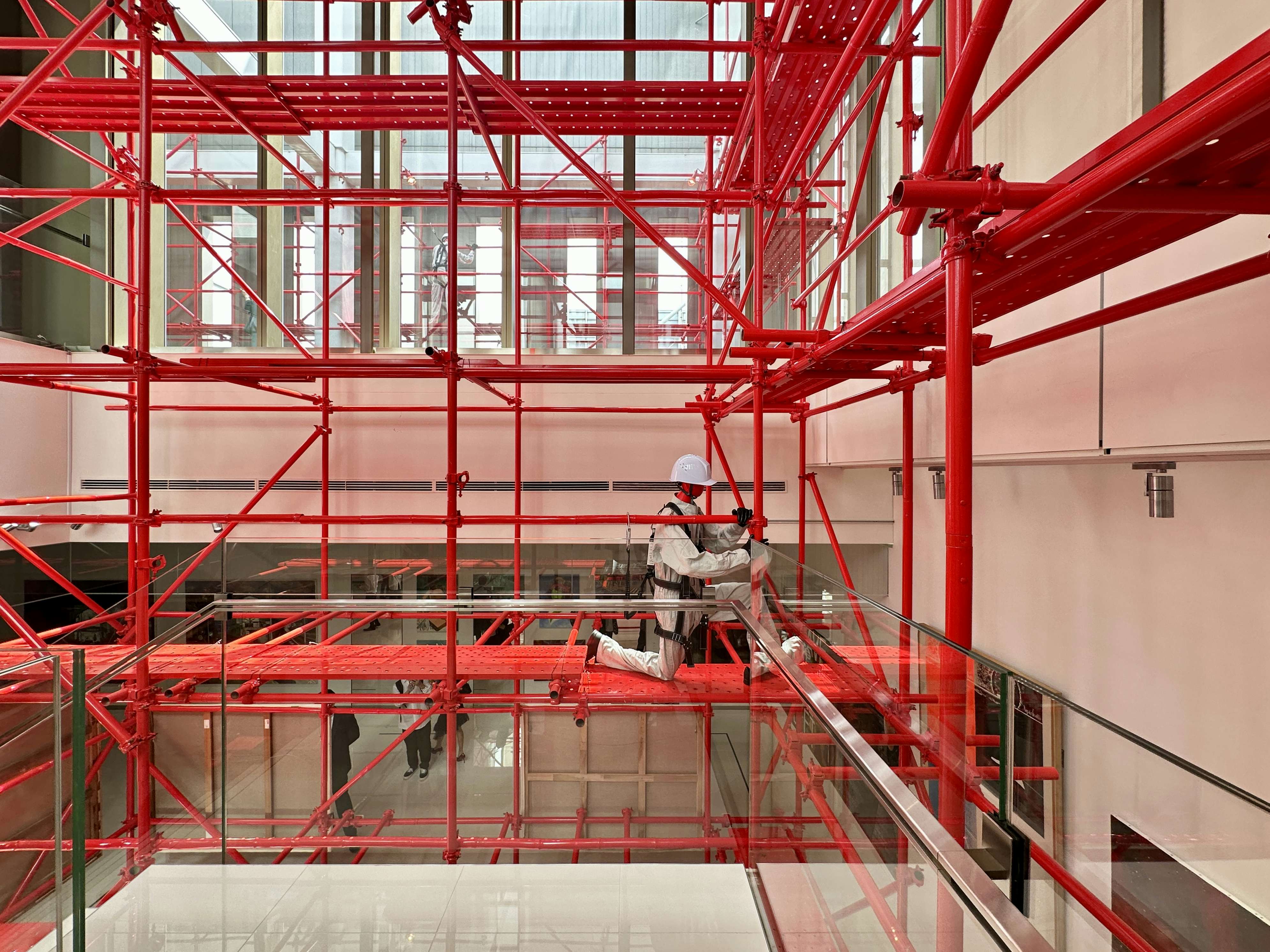 展示風景より、中央が《原始宇宙》(2000)の原寸大レプリカ