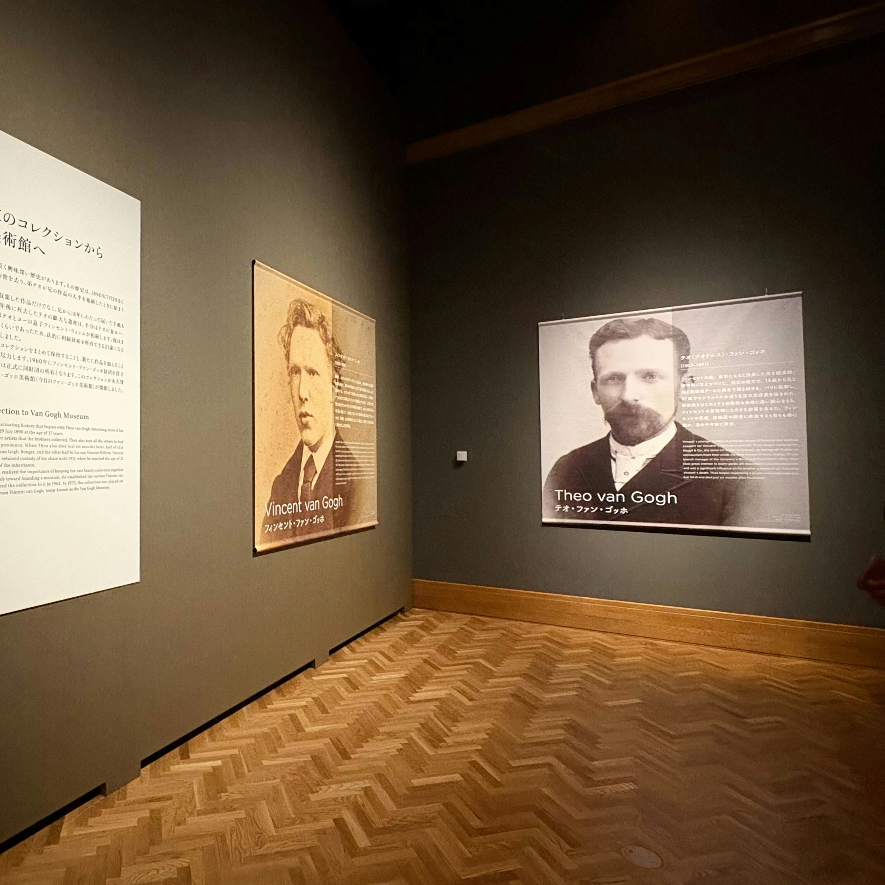 第1章「ファン・ゴッホ家の コレクションからファン・ゴッホ美術館へ」では、フィンセントのコレクションを継承し、その作品を世界へ広めることに貢献した3人の家族、テオ、ヨー、フィンセント・ウィレムが、フィンセントと並列するかたちで紹介されている。今まで数多くのゴッホ展が開催されてきたが、展覧会の冒頭で、作家であるフィンセントと同等に家族を並べ紹介するという展示方法は大変珍しく、本展がいかに「家族」に着目しようとしているかを感じることができるだろう。