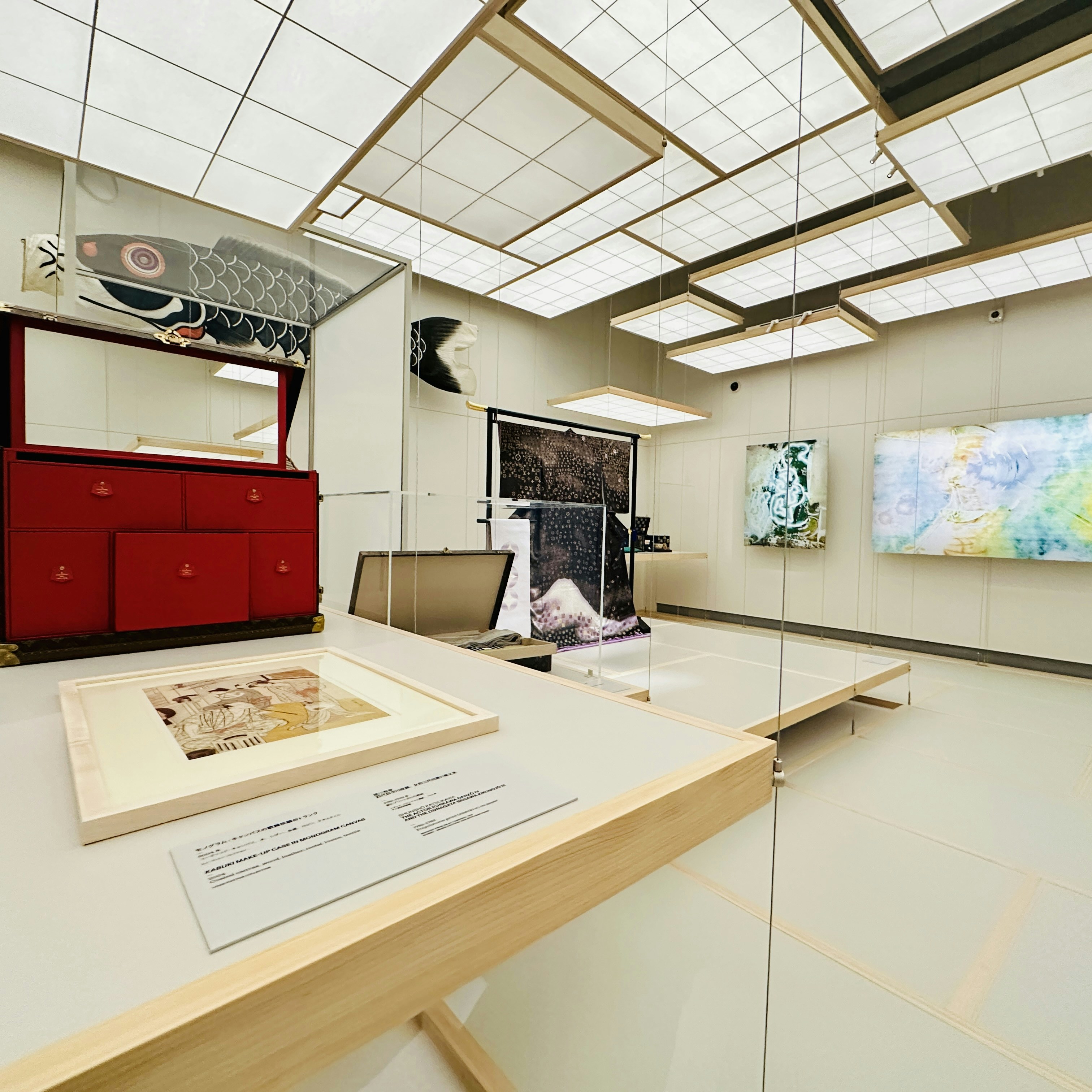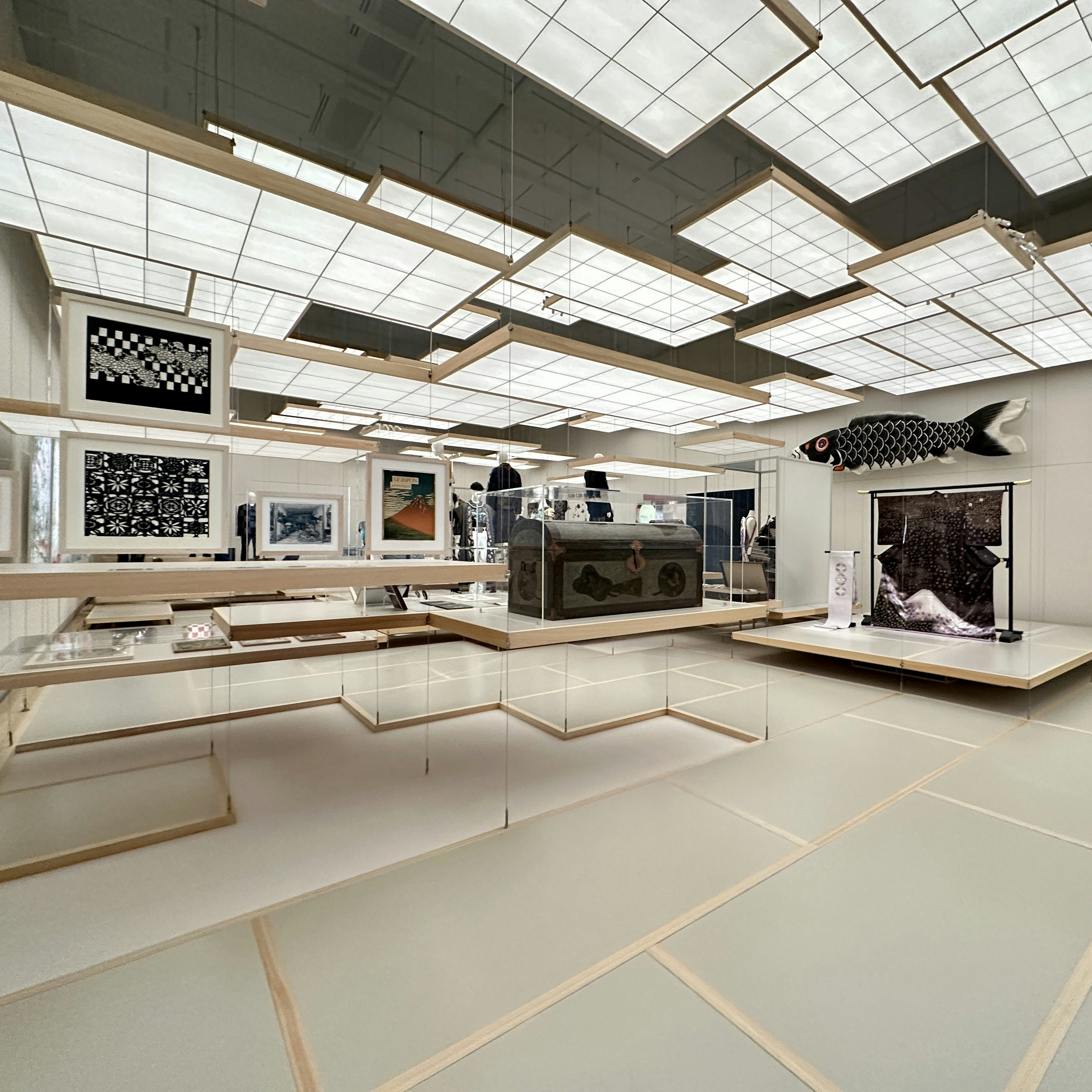 続く「ルイ・ヴィトンと日本」は、畳と障子を思わせる床と天井が特徴的な、日本展のためにつくられたオリジナルのセクションだ。
