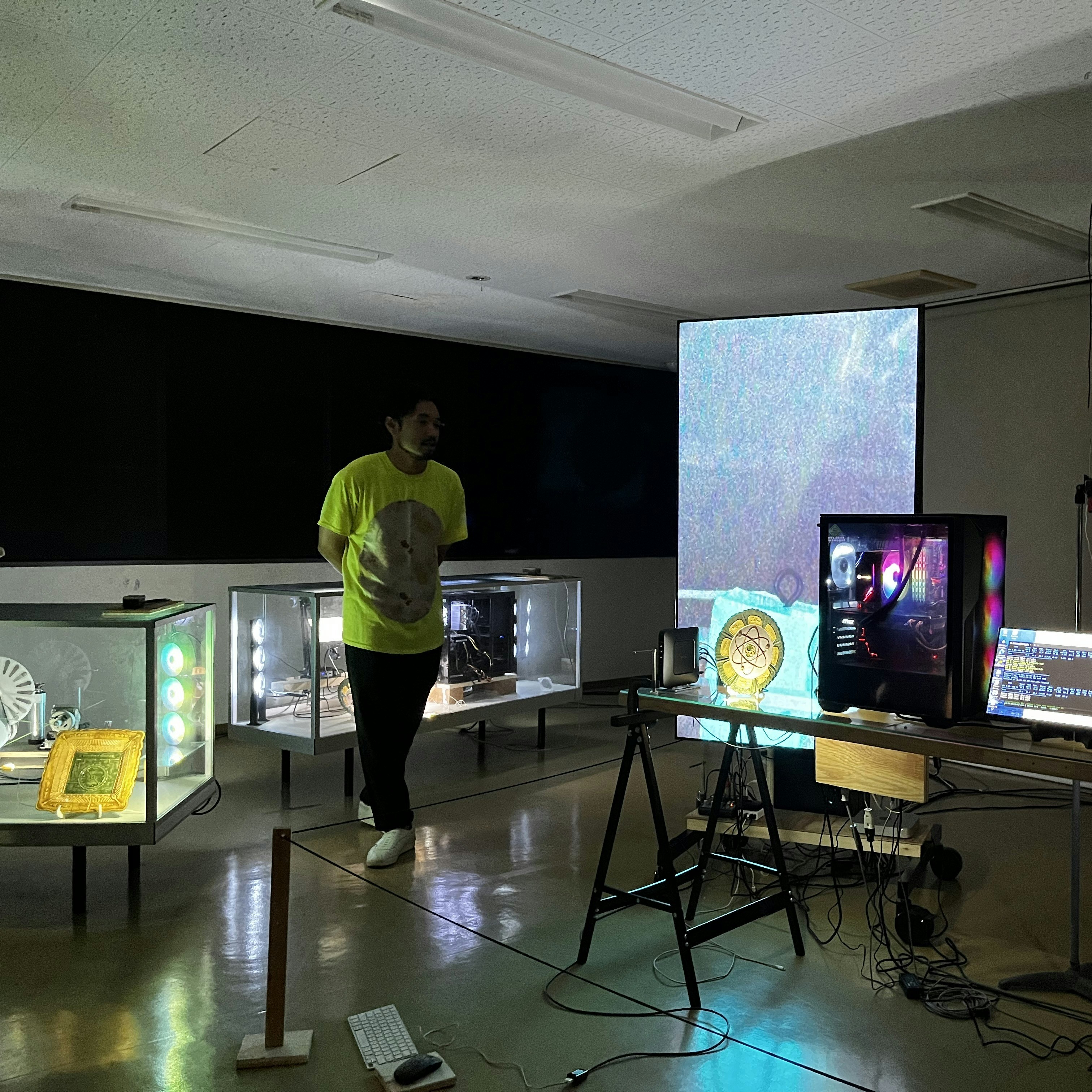 インドのラックス・メディア・コレクティブ(ジーベシュ・バグチ、モニカ・ナルラ、シュッダブラタ・セーングプタ)は、酒蔵であった笠原邸をインスタレーション/パフォーマンス空間として生まれ変わらせた。色鮮やかな光とグラフィックが印象的なインスタレーションは、酒をつくる際の麹菌からインスピレーションを受けたとメンバーのナルラは語る。目に見えない発酵の様子と時間の流れを可視化したその様子は、非常に有機的な動きを見せている。