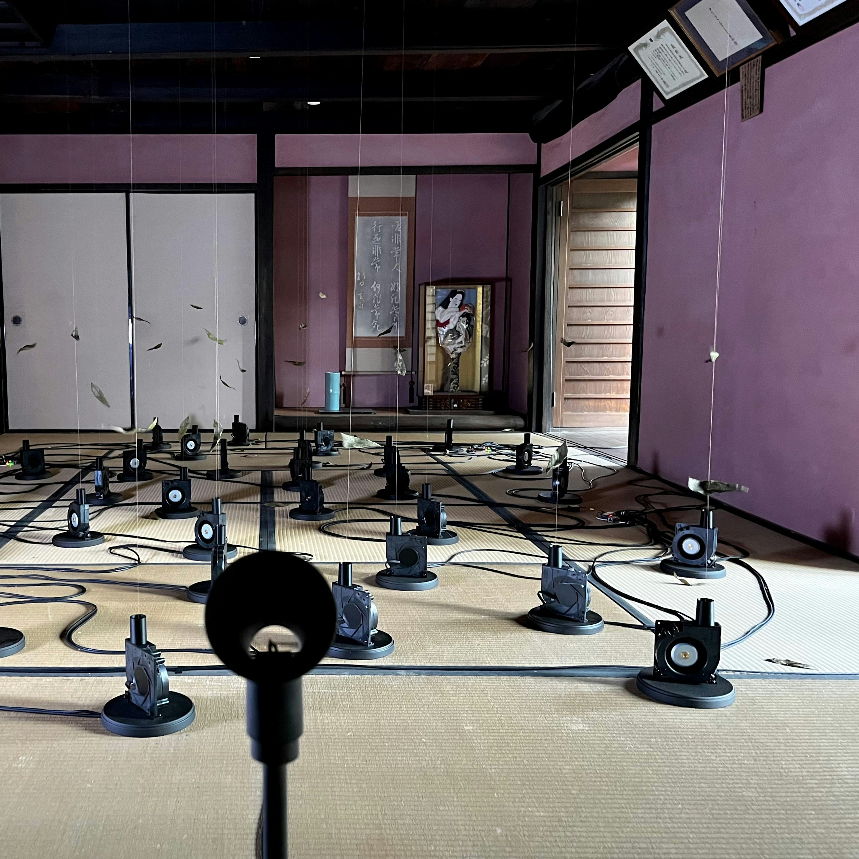 平賀源内旧邸では、筧康明によるインタラクティブ作品《Echoes as Air Flows》《Air on Air》が展示されている。作品の手前に設置されているセンサーに息を吹き込むことで、作品に変化をもたらすことができるほか、遠隔地とリンクして作品が起動するような仕組みだ。こちらも平賀源内そして瀬戸内という場所ならではの仕様となっているためぜひ体験いただきたい。