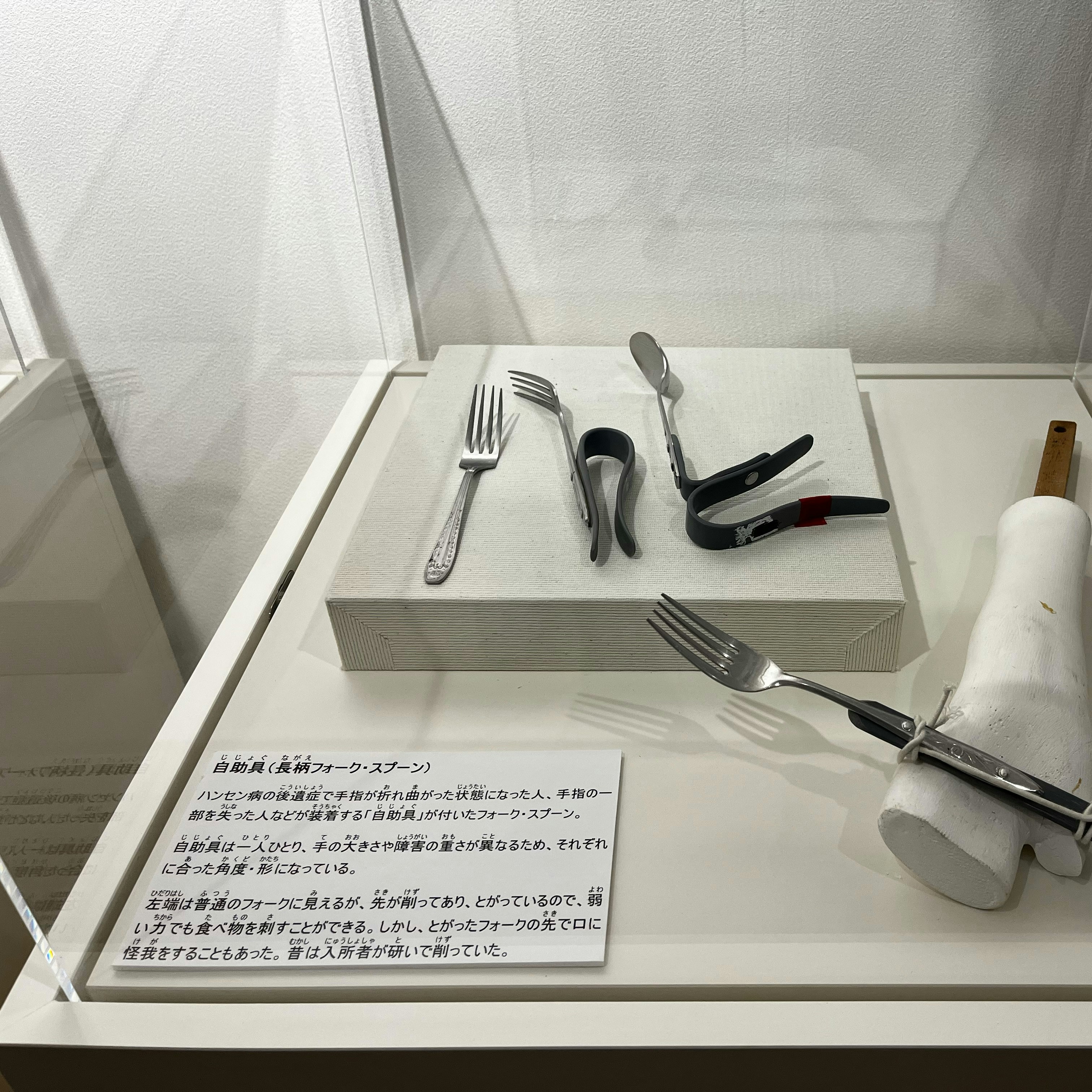 ウクライナ・キーウ出身のアーティスト、ニキータ・カダンは、ハンセン病患者が使用していた自助具をモチーフに彫刻作品《枝と杖(支えあうことのモニュメント)》を制作した。カダンは同地にあるハンセン病資料館を見たのち、ここで起きた事象とその痛みについて考えを巡らせ、作品の制作について地域住民に説明を行ったという。