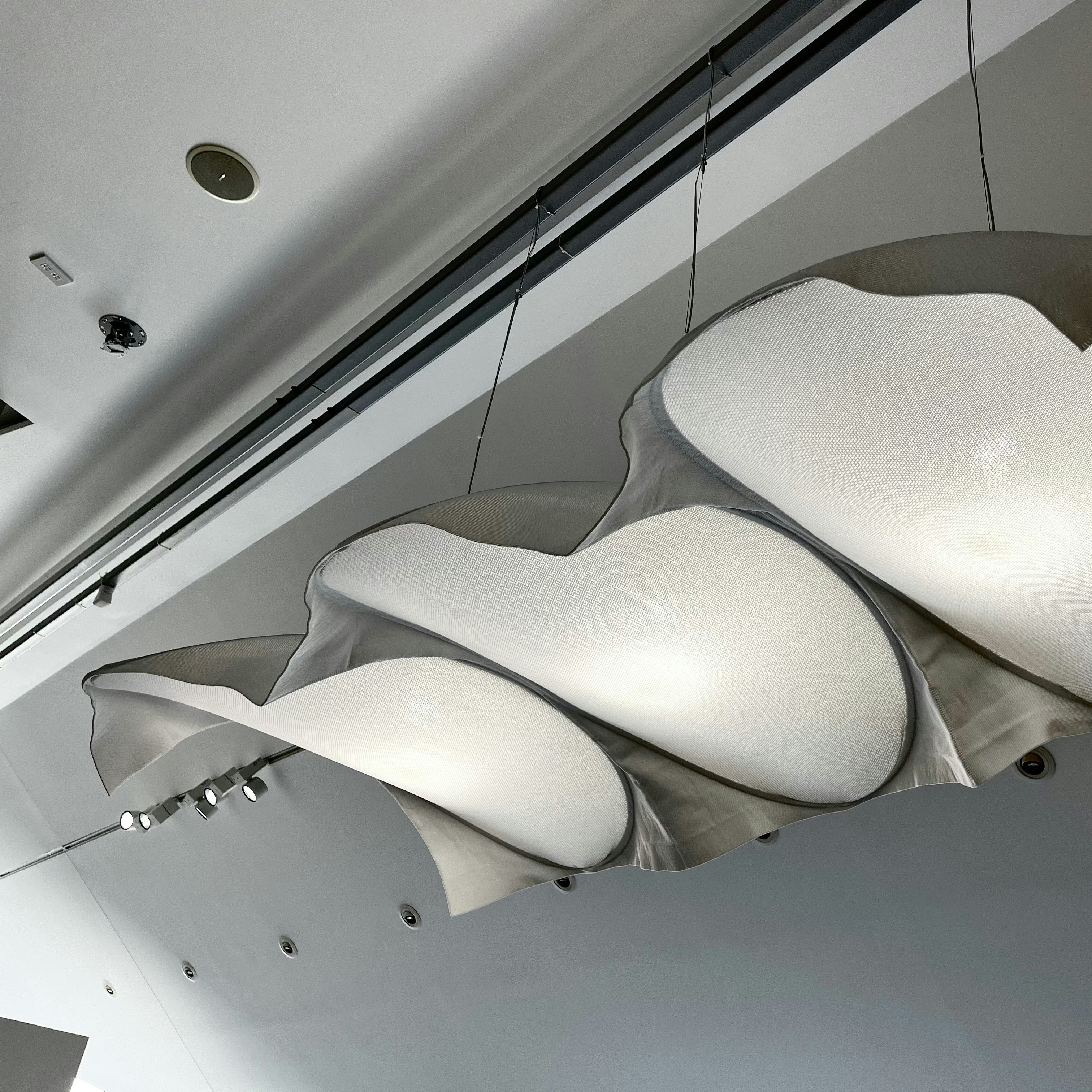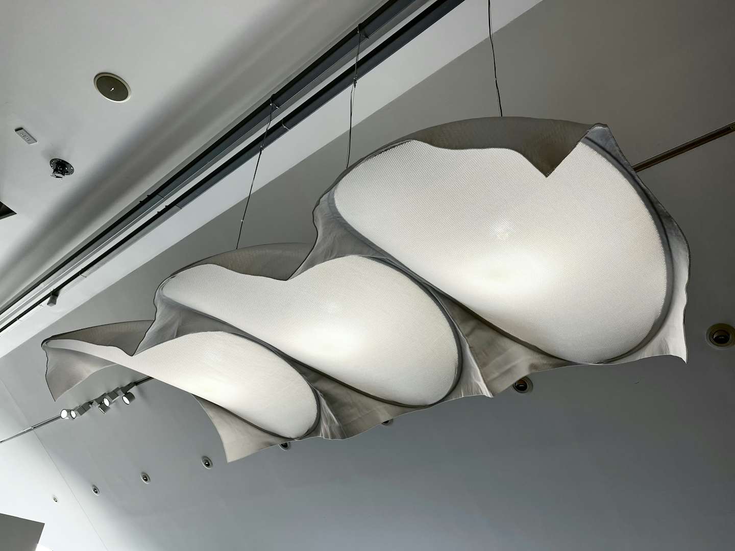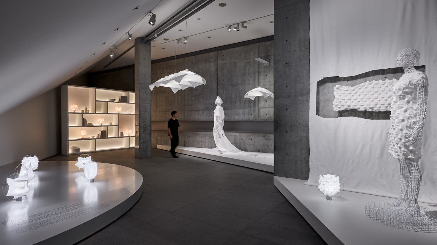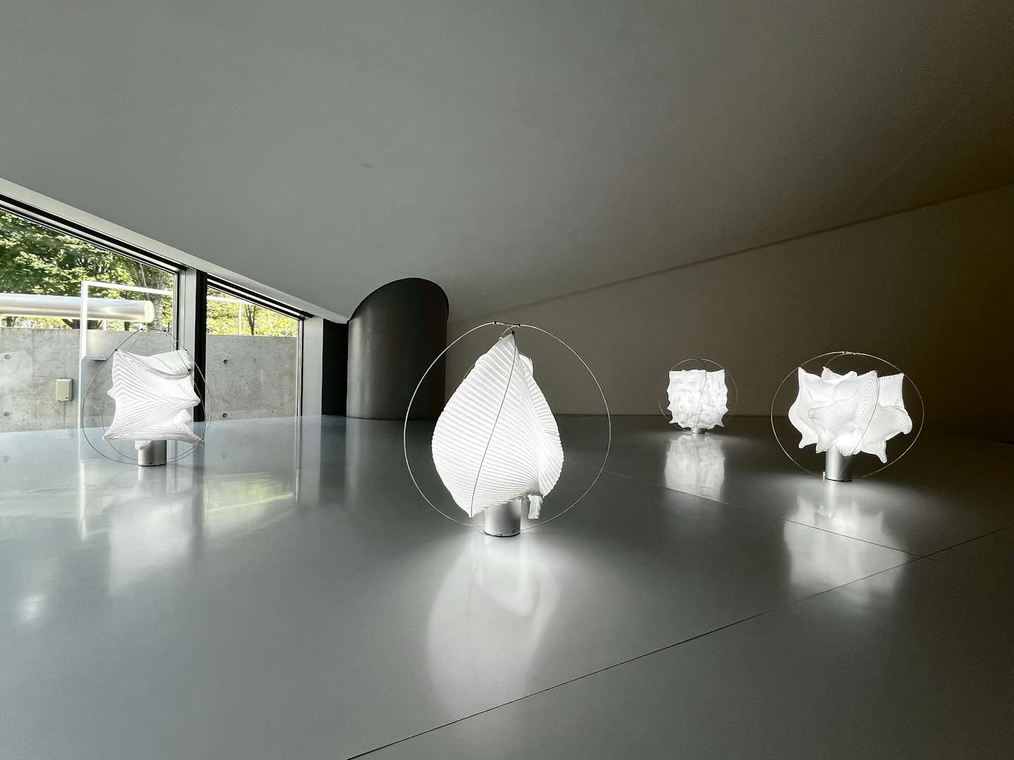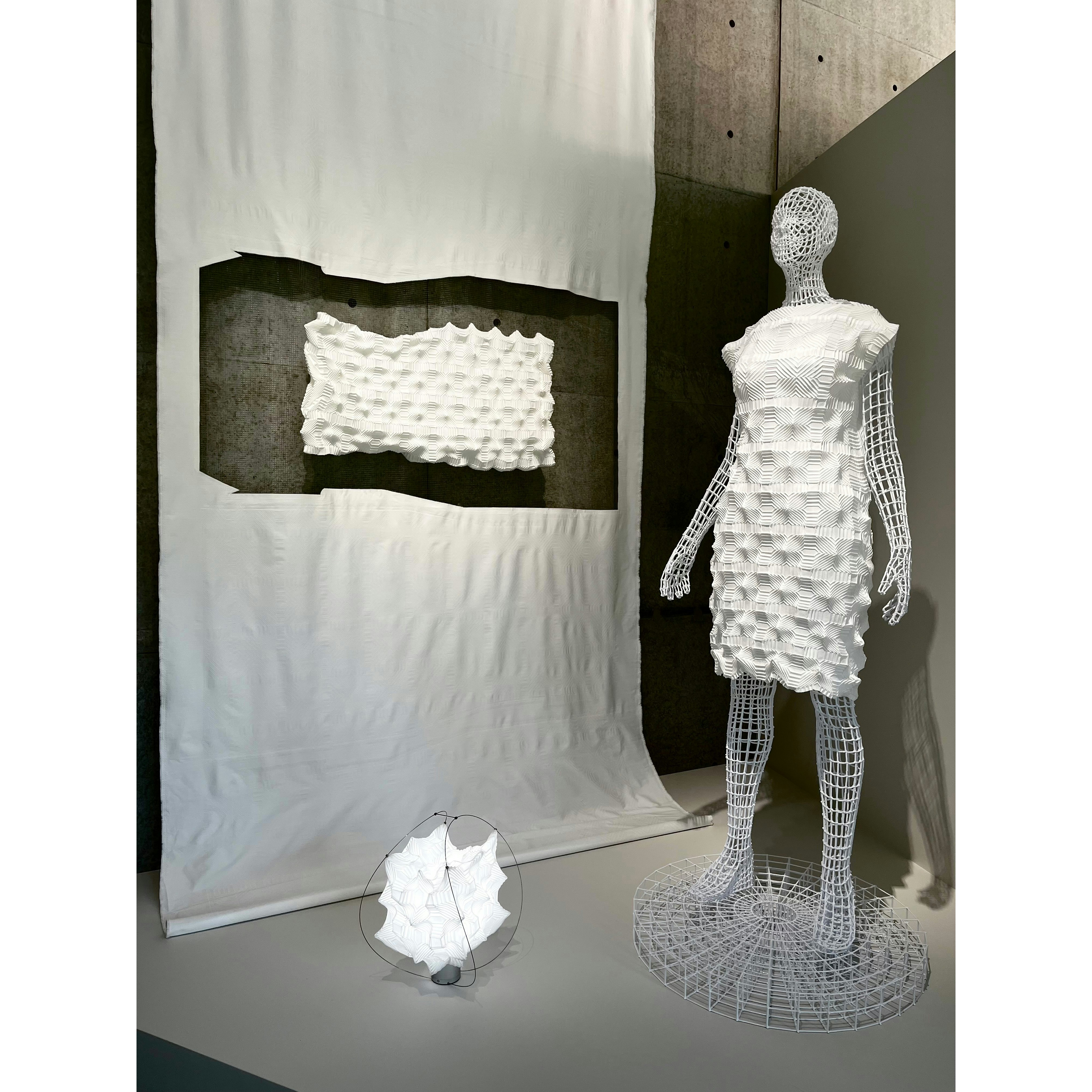 同プロジェクトでは、「一本のワイヤー」と「一枚の布」を融合させた新たなコンセプトの照明器具を開発。会場では、発表時のプロトタイプを中心に再構成した展示が日本初披露されている。
