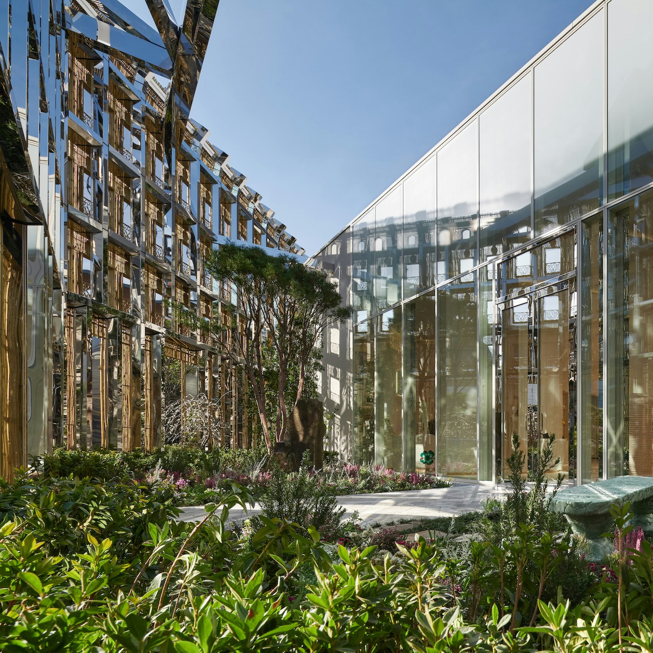 建築の象徴となるのは、パリ本店「30モンテーニュ」のファサードをゴールドに染め上げた竹で再解釈した外観だ。日本の竹林に着想を得たセノグラフィーは、昼と夜でまったく異なる表情を見せてくれる。