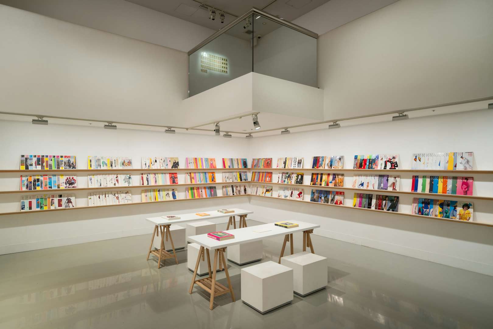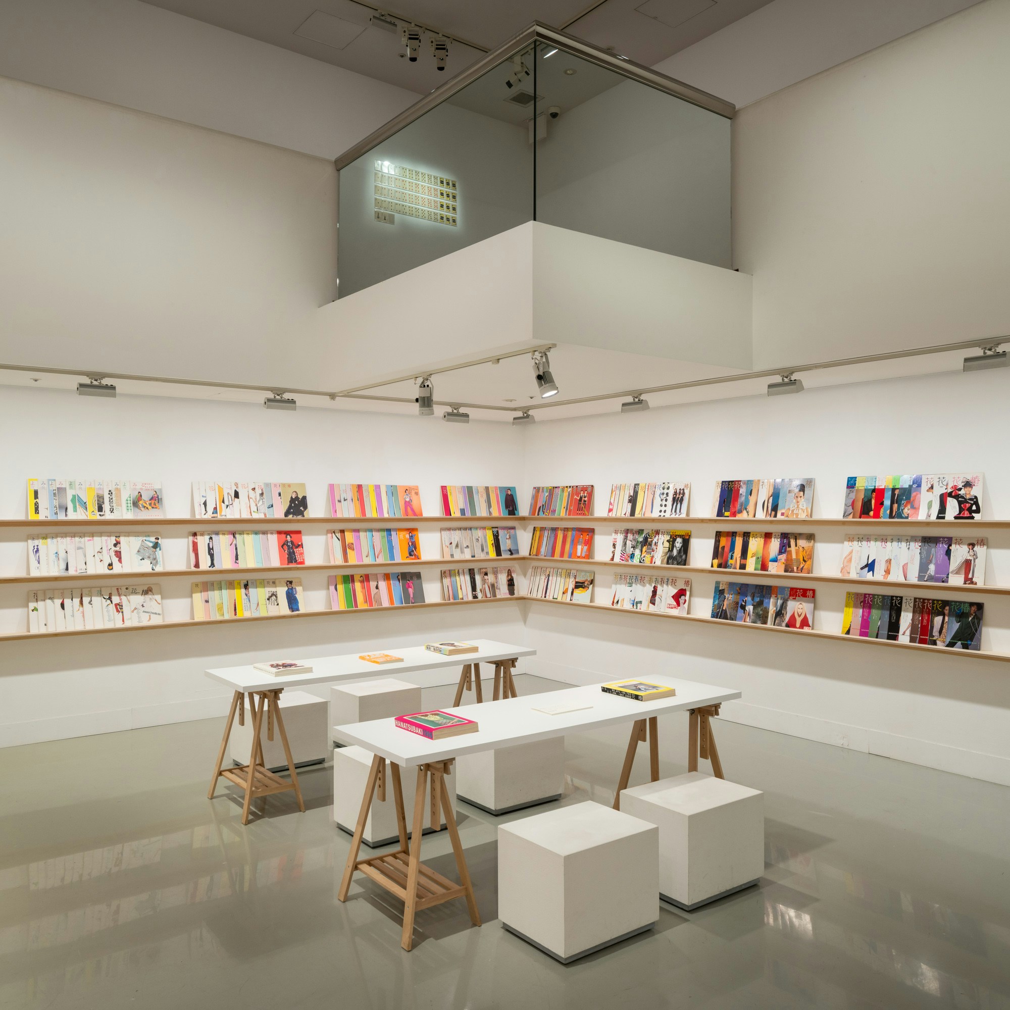 さらに奥の展示スペースには「花椿ライブラリー」が設けられ、1982年から2025年までの『花椿』のアーカイブを公開。時代の潮流を敏感にくみ取りながら、資生堂ならではの価値観を発信し続けてきた軌跡を、仲條のディレクションとともにたどることができるだろう。