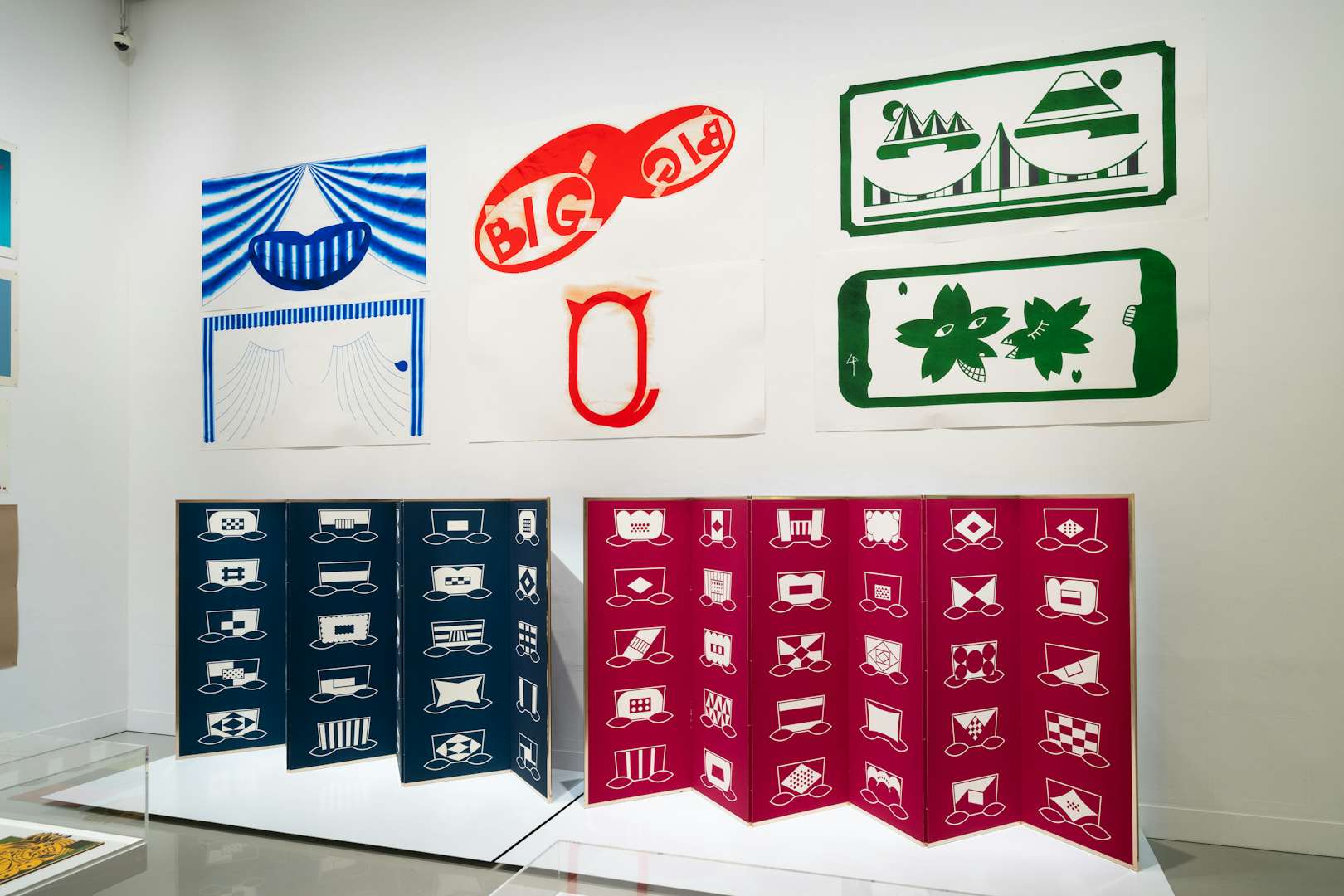また壁面には、仲條と資生堂の関係性を示すものとして「仲條正義展 忘れちゃってEASY思い出してCRAZY」(資生堂ギャラリー、2012)や「春ノ椿」展(HOUSE OF SHISEIDO、2005)に出展された作品も展示。かつて画家を目指していたという仲條の、絵画的なアプローチを見ることができる。
