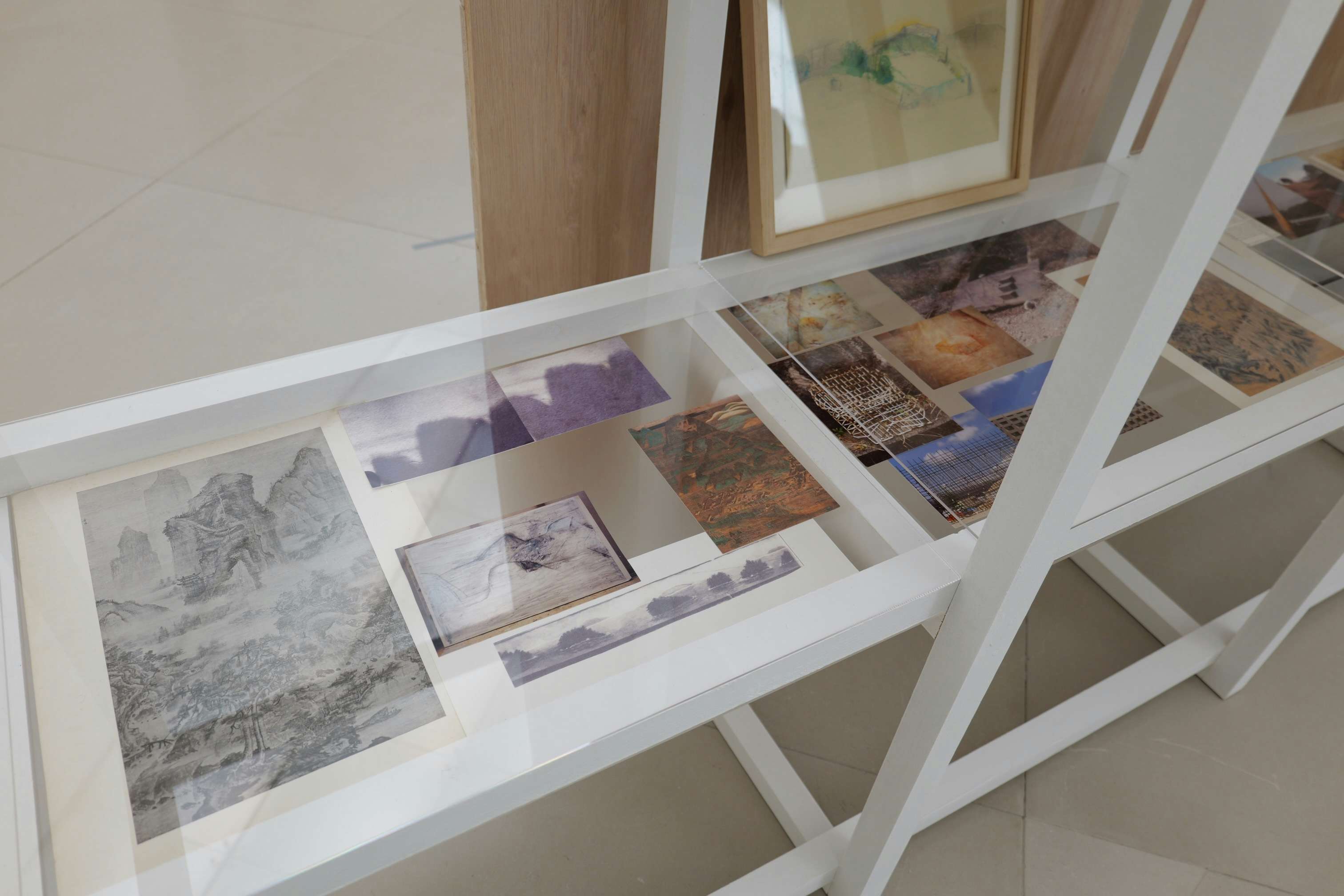 左が《2026-2-23》、右が《池・周辺》(ともに2026)。描かれた線は山のような稜線が見て取れ、たしかに風景画あるいは山水画であるような印象を与える