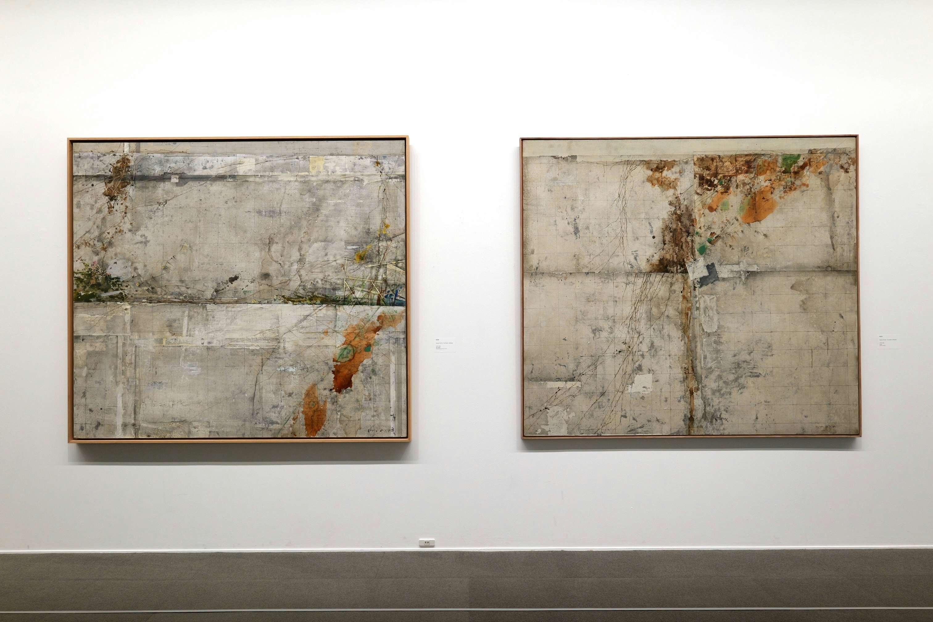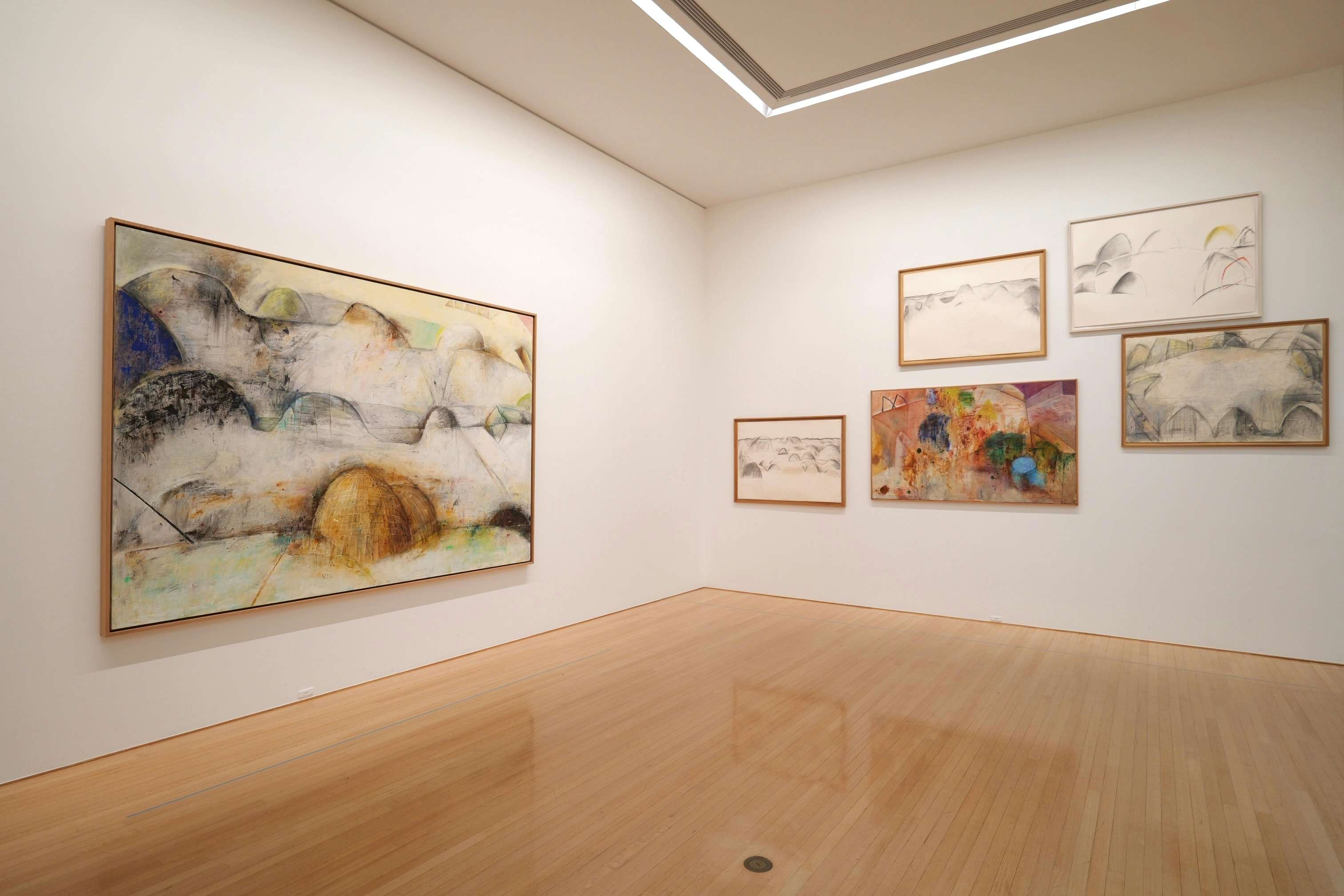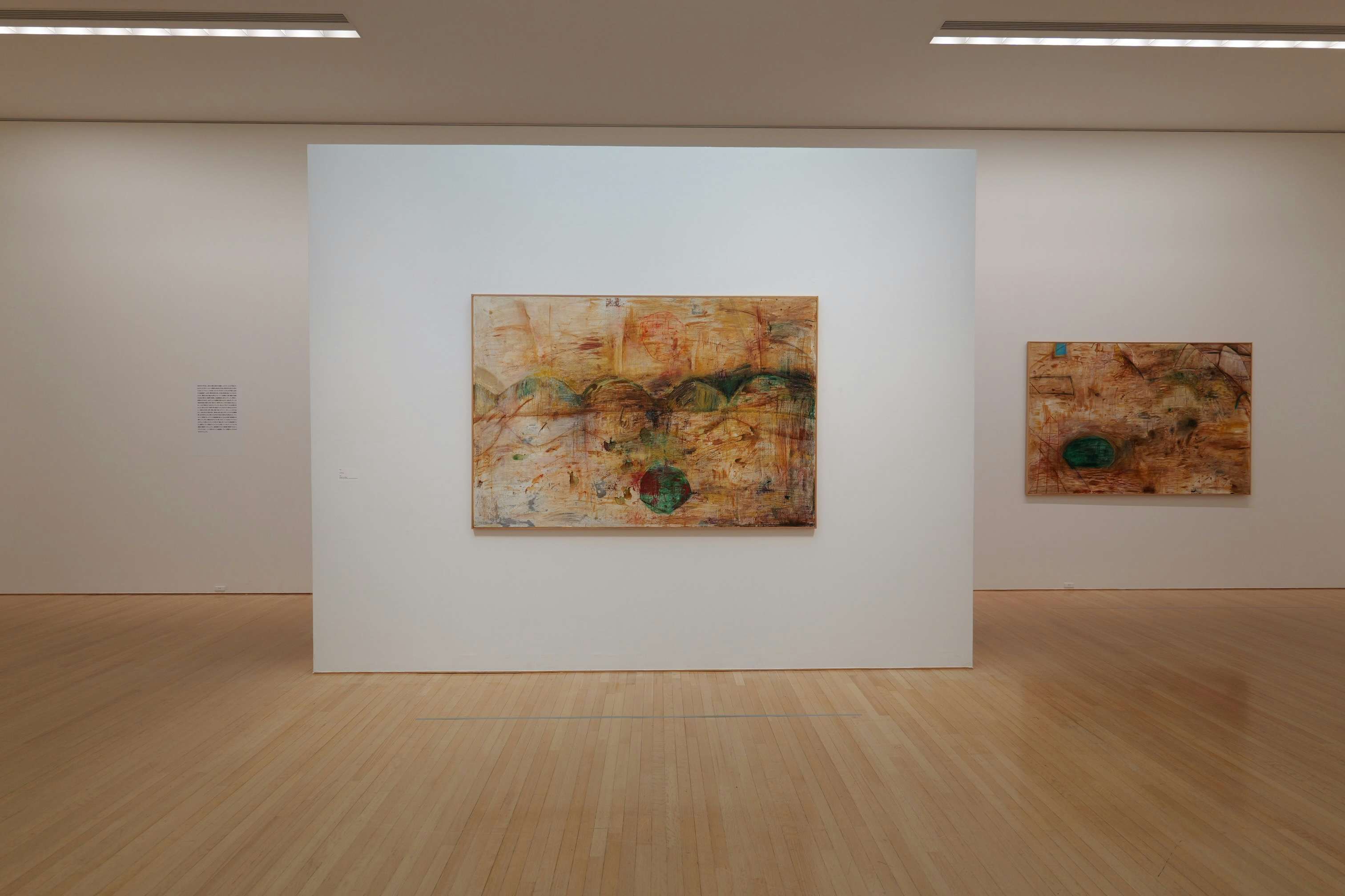中央が《山水》(2007)。右が《荒野》(1996)。この時期は乾いた土を思わせる色彩が目立つようになる