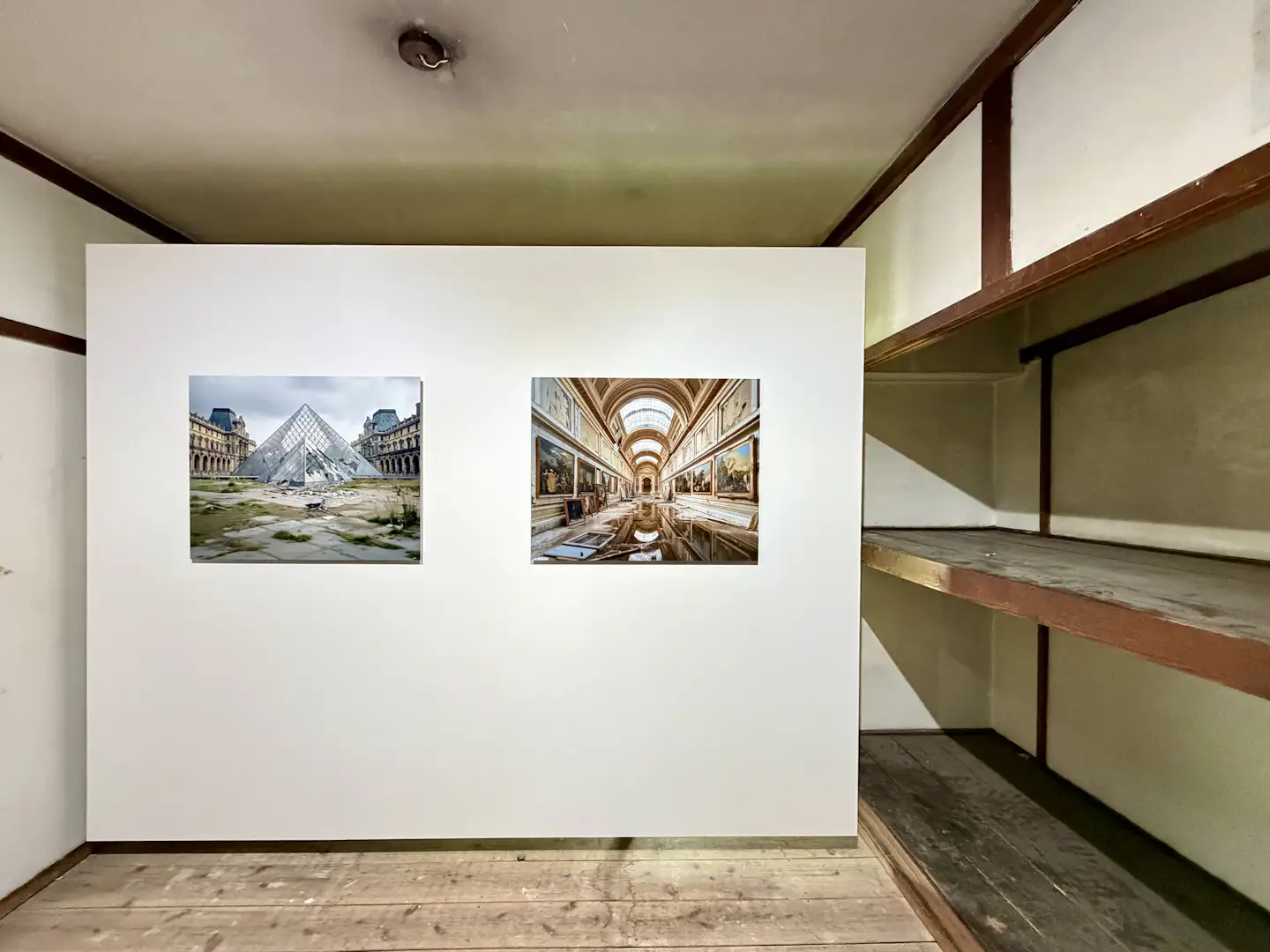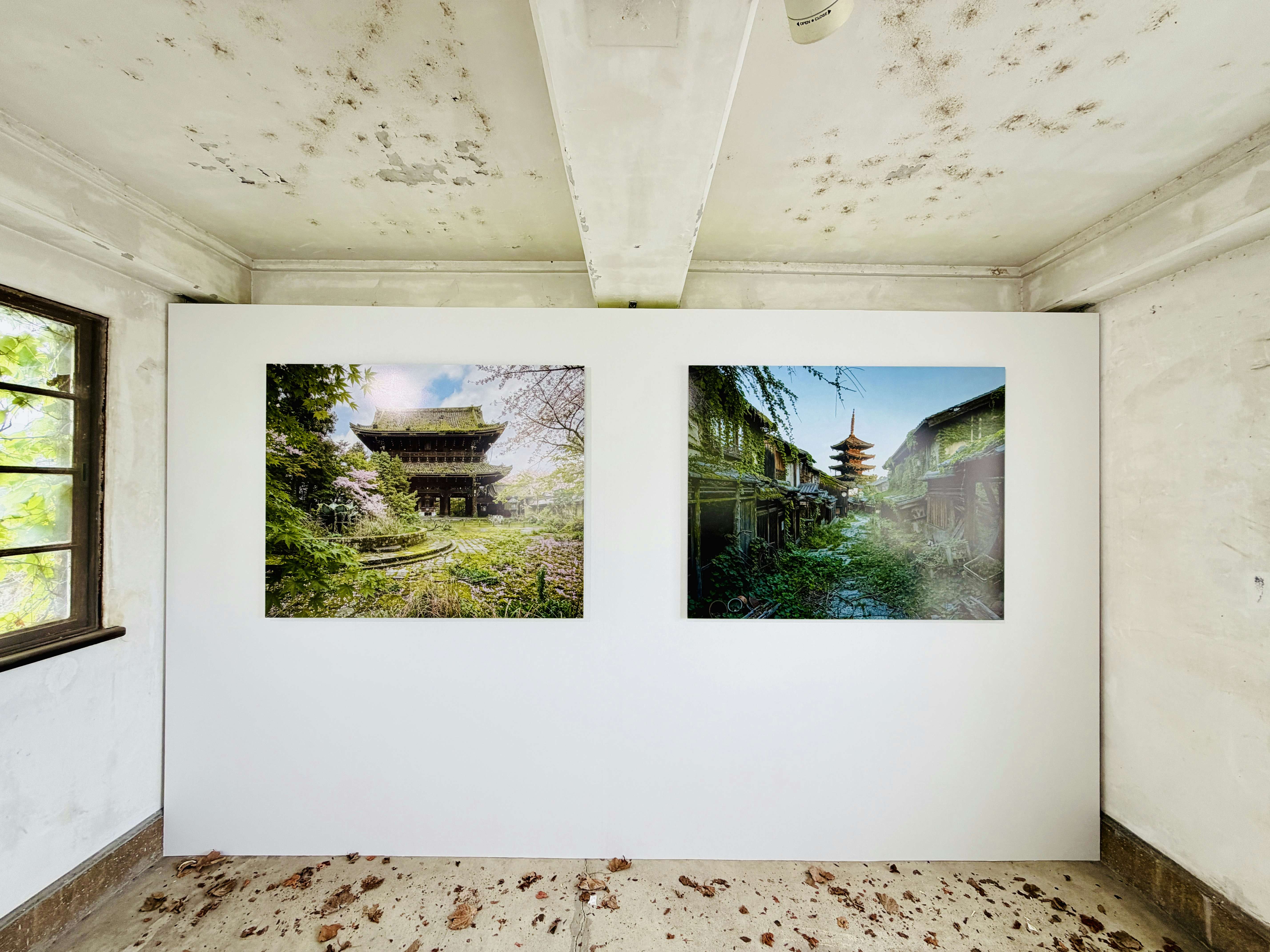 なおここでは京都で新たに制作したシリーズ「Les Ruines de Kyoto」も展示。AIによって古都を荒廃した廃墟へと変貌させた新作からは、写真が持つ真正性、AIのテクノロジーによって振り回される現代人、建築の儚さ、現実と虚構の境界のあわいが問いかけられる。