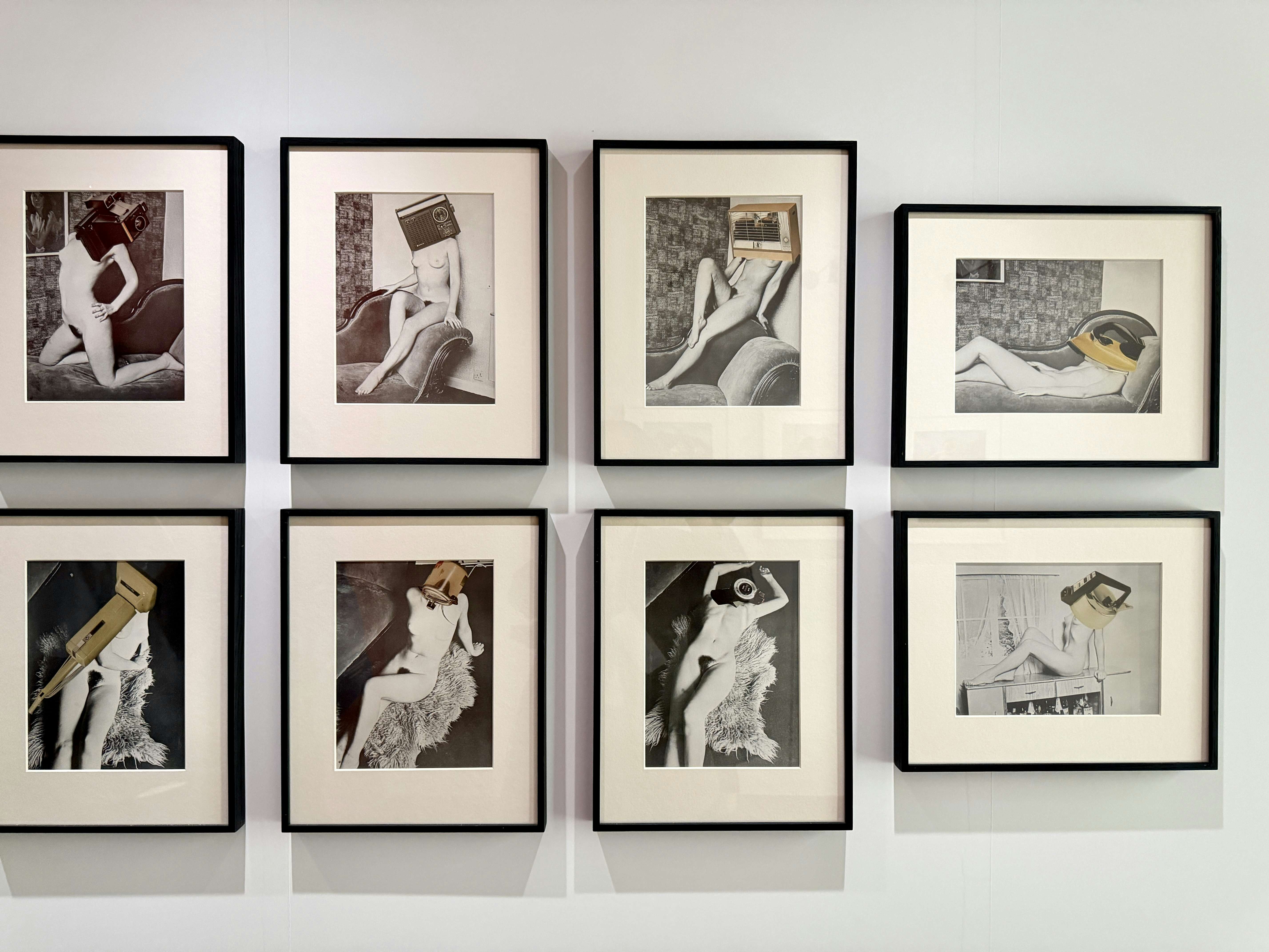 例えば「Pretty Girls」シリーズ(1977)は、印刷物をコラージュして新たなイメージを生み出す彼女の手法を象徴する作品。タイトルは素材となった成人向けグラビア誌に由来するもの。ポルノグラフィーのモデルたちの目をありふれた家電製品で覆い隠すことで、男性のものとされていた領域を破壊するだけでなく、女性に課されてきた家庭的役割も転覆させた。